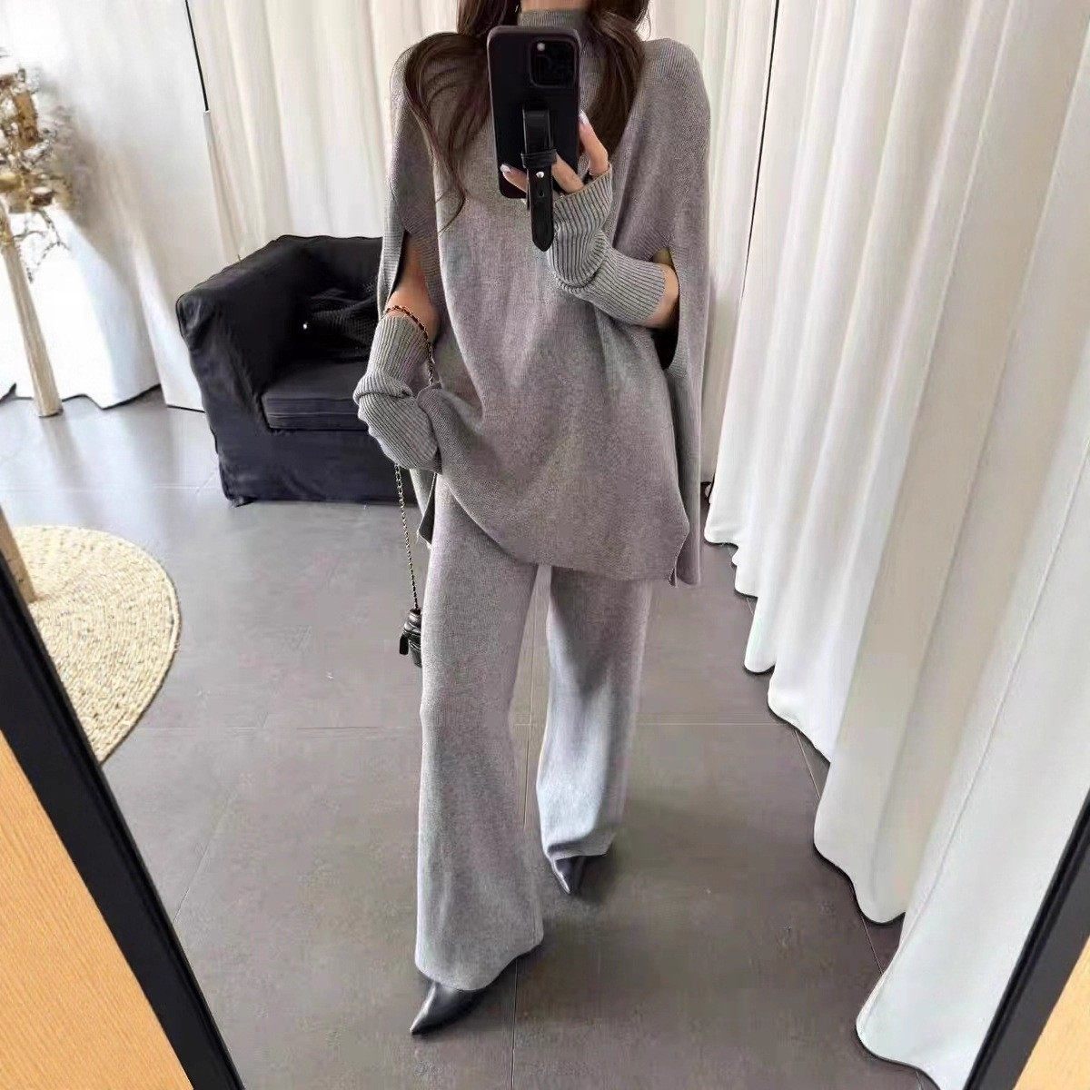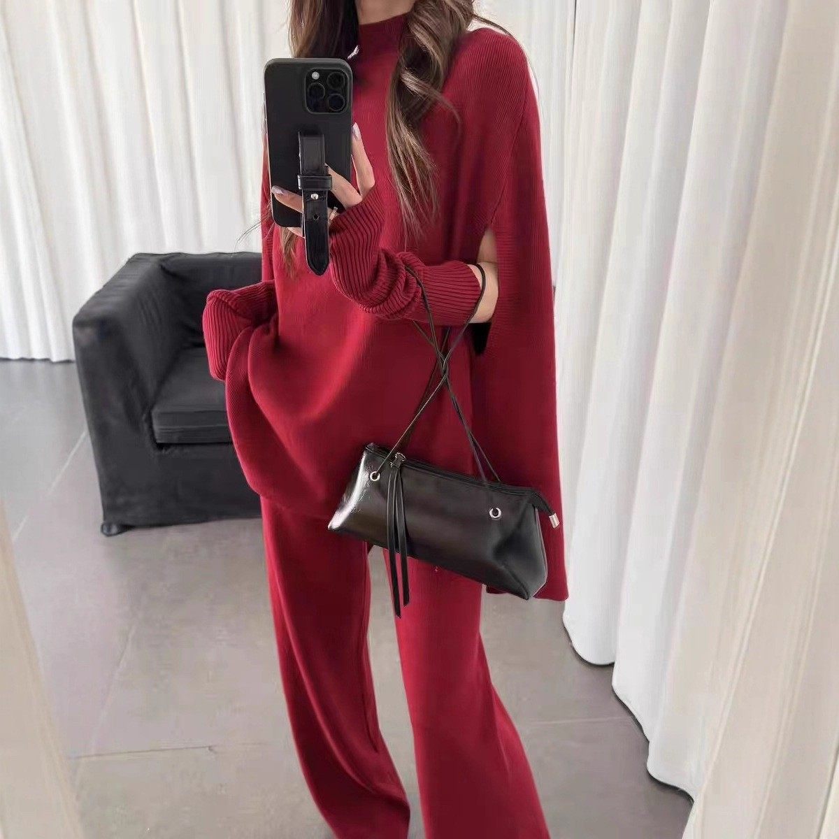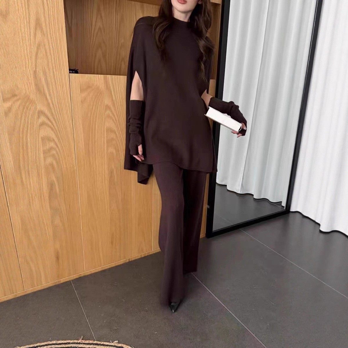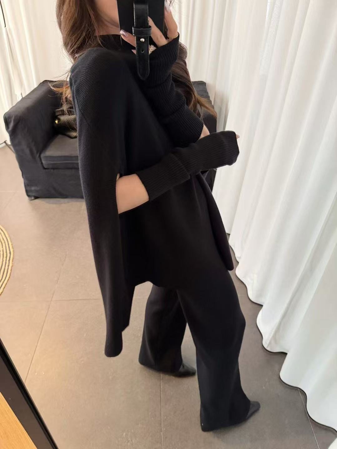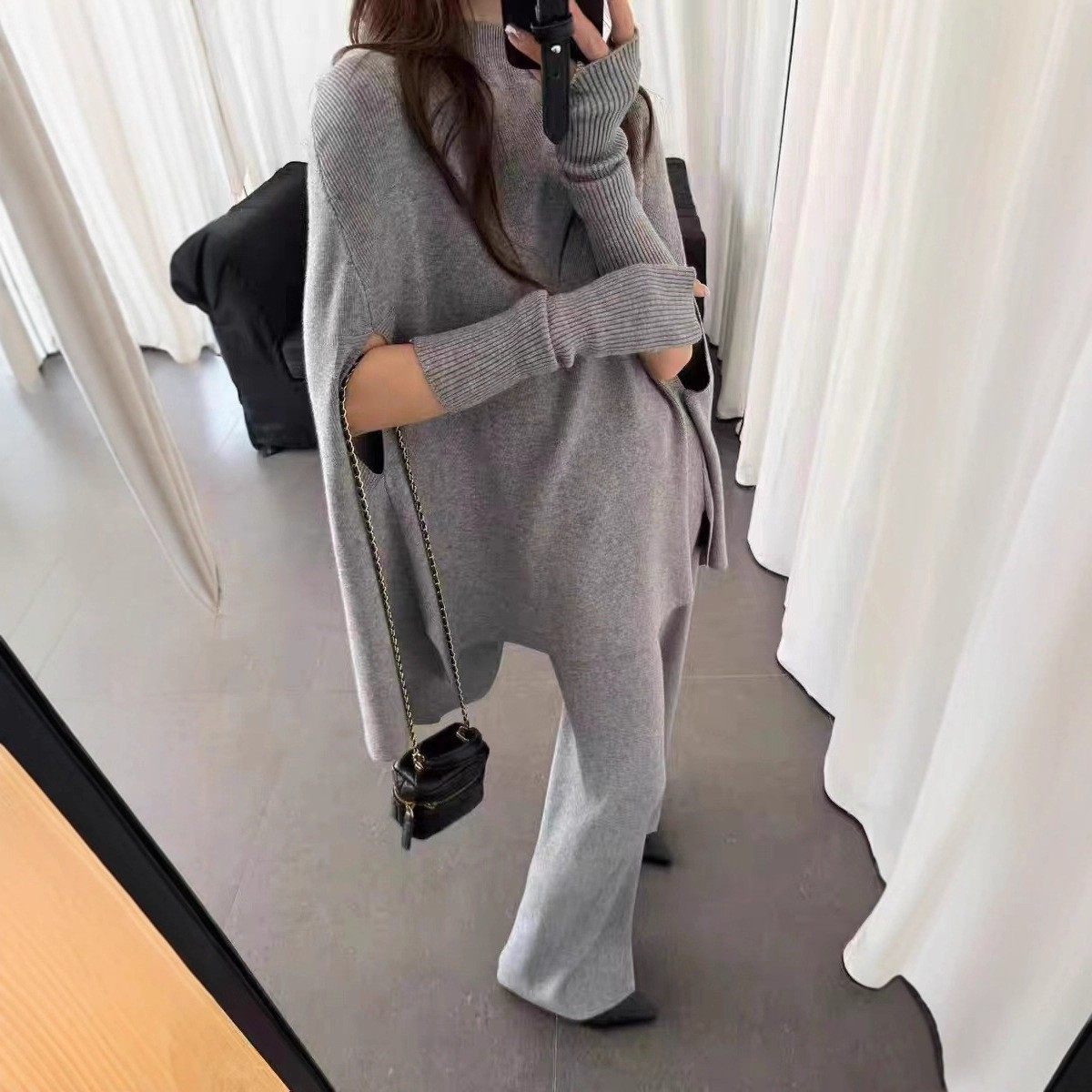 Fashionable Sweater Suit Korean Style Autumn and Winter New Knitted Wide-Leg Pants + Half Turtleneck Top + Vest Three-Piece Set
