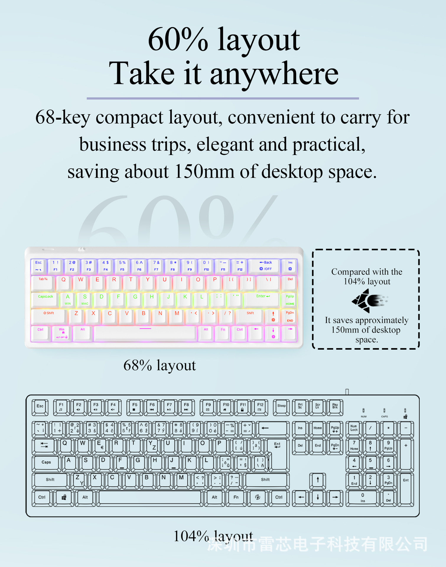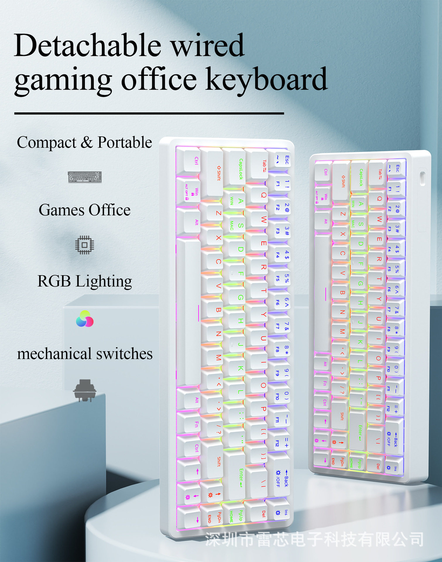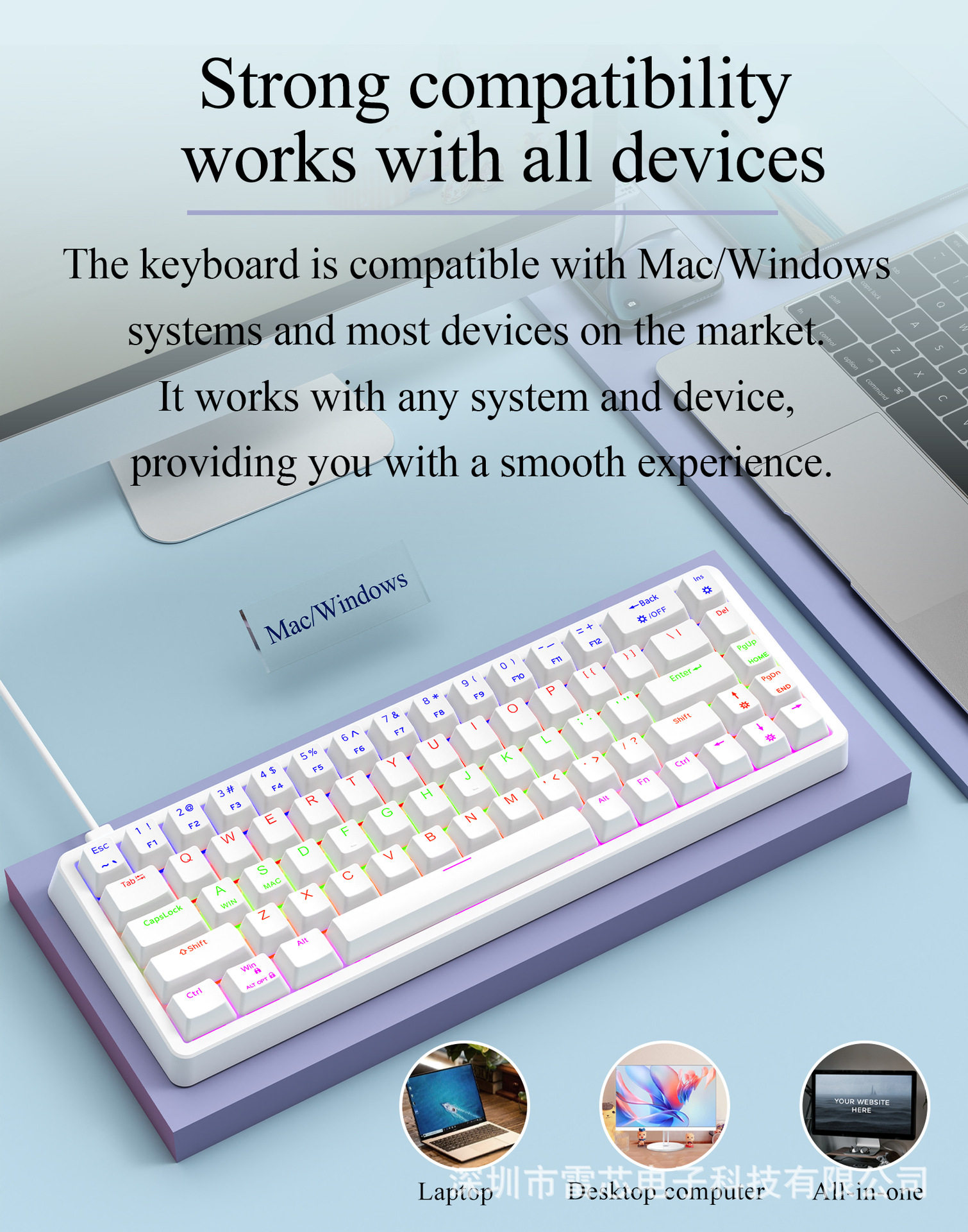 F68 Key Wired Mechanical Keyboard Rgb Backlight Mixed Light Red Axis Game Home Office Export Cross-Border E-Sports Keyboard