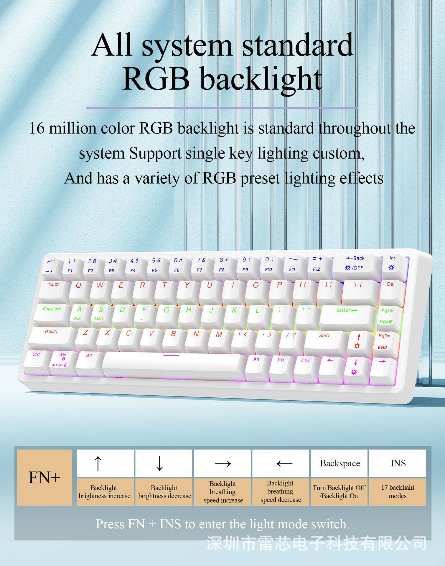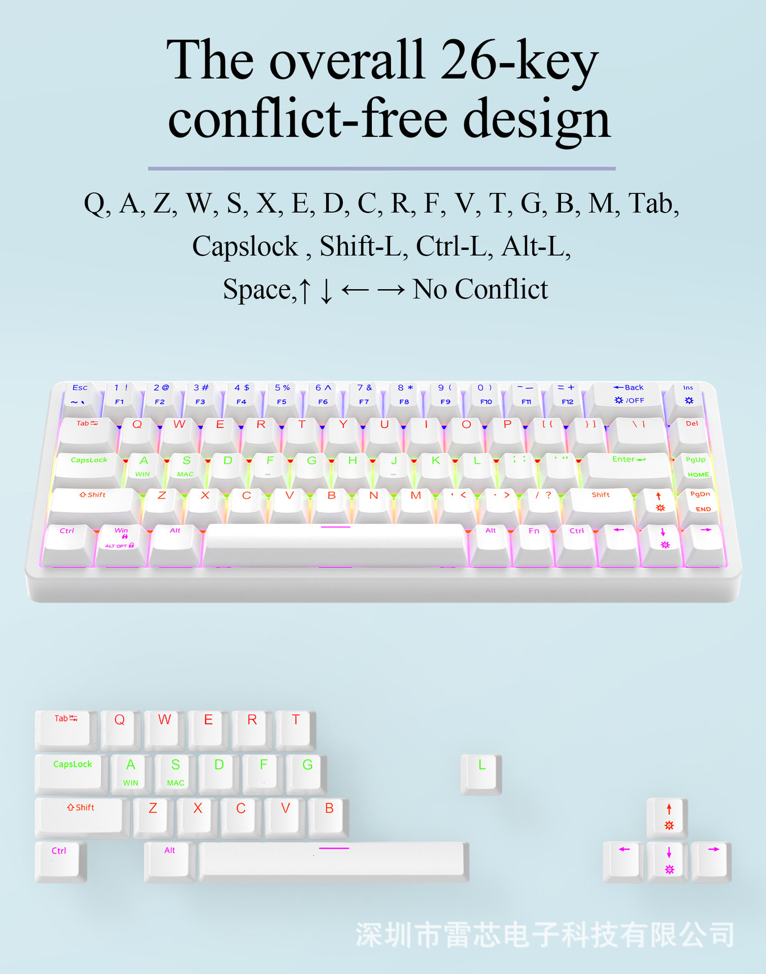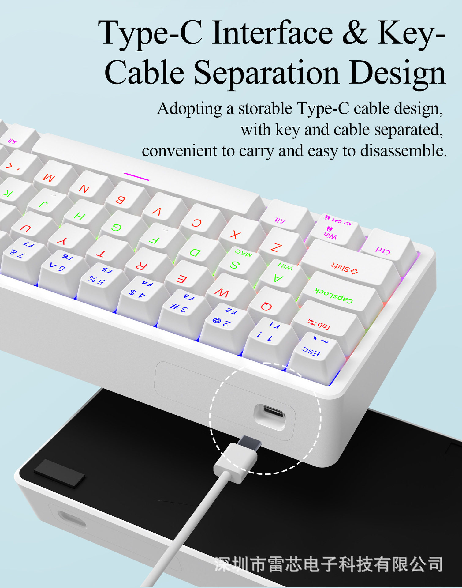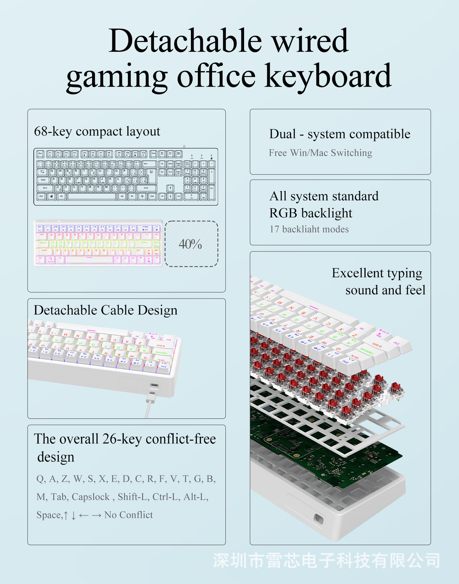 F68 Key Wired Mechanical Keyboard Rgb Backlight Mixed Light Red Axis Game Home Office Export Cross-Border E-Sports Keyboard
