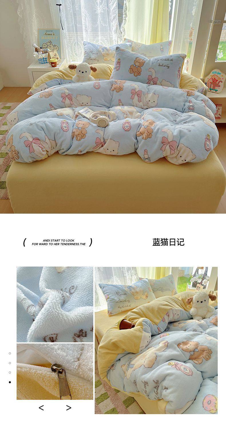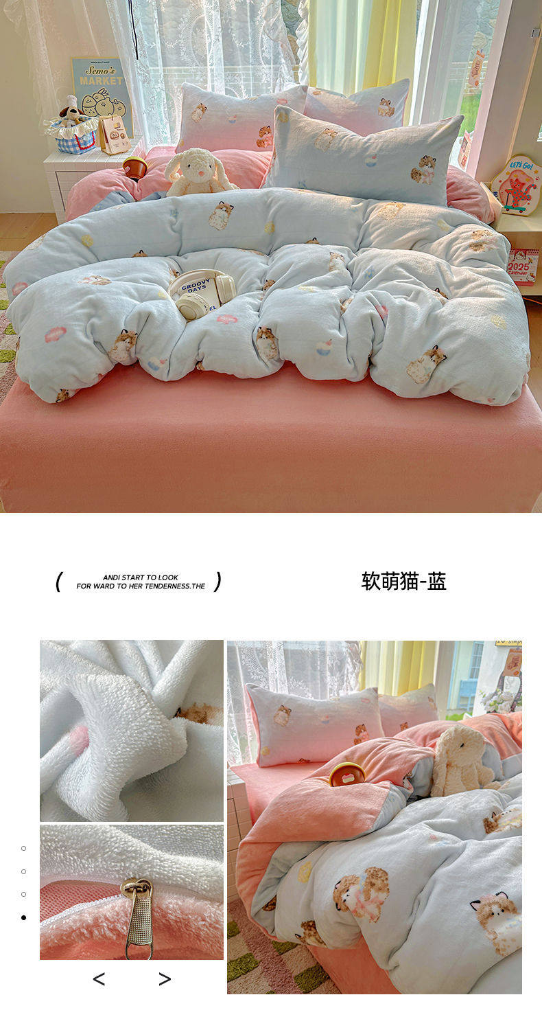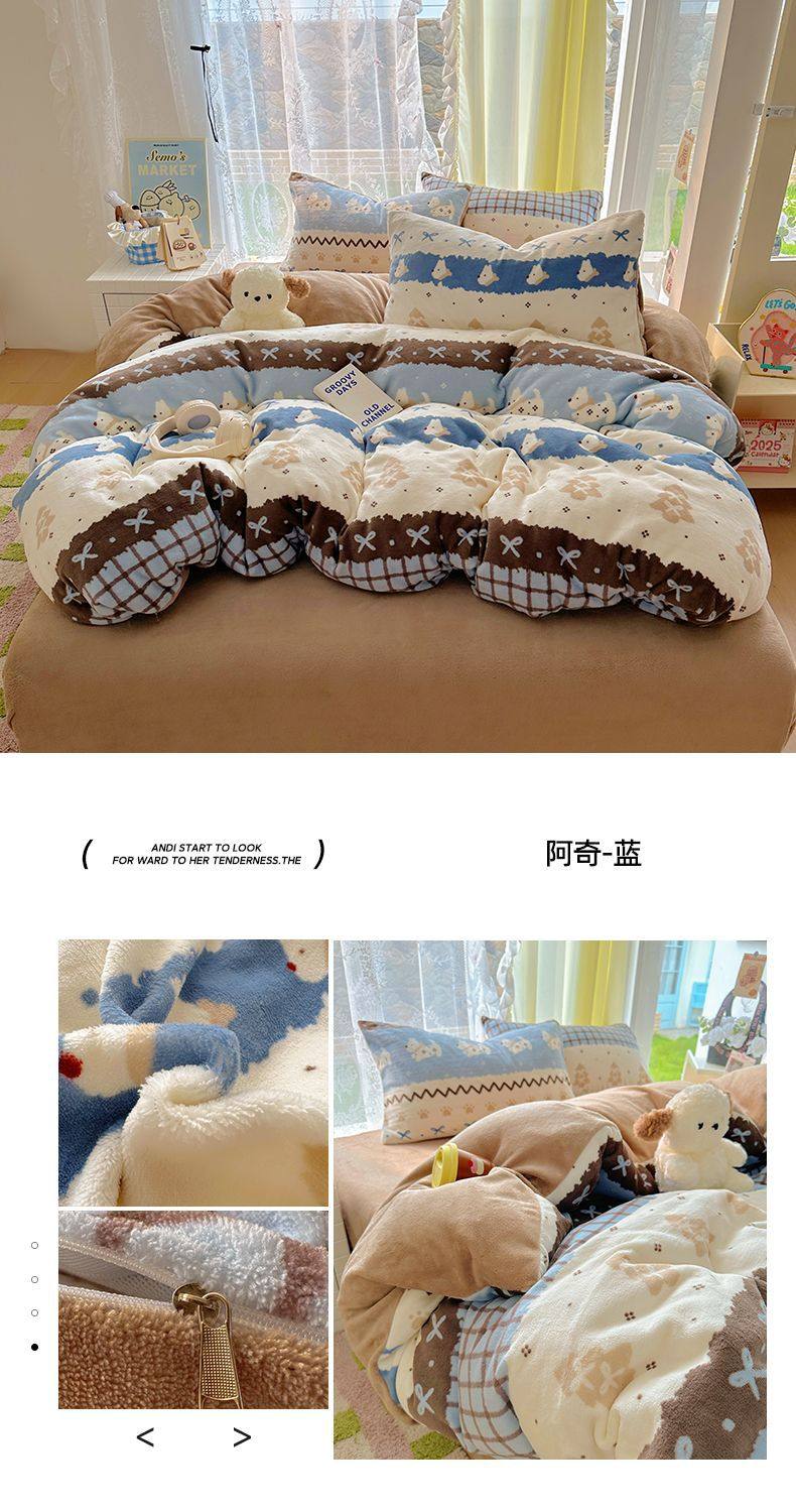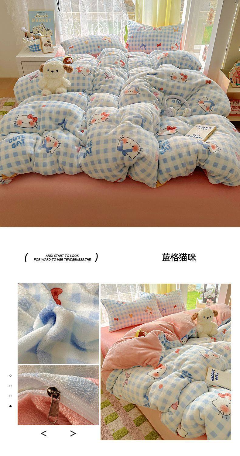 2025 New Autumn and Winter Type a Milk Velvet Four-Piece Set Thickeneded and Warm Cartoon 0.9m Bed Three-Piece Set Must Be Selected in Winter