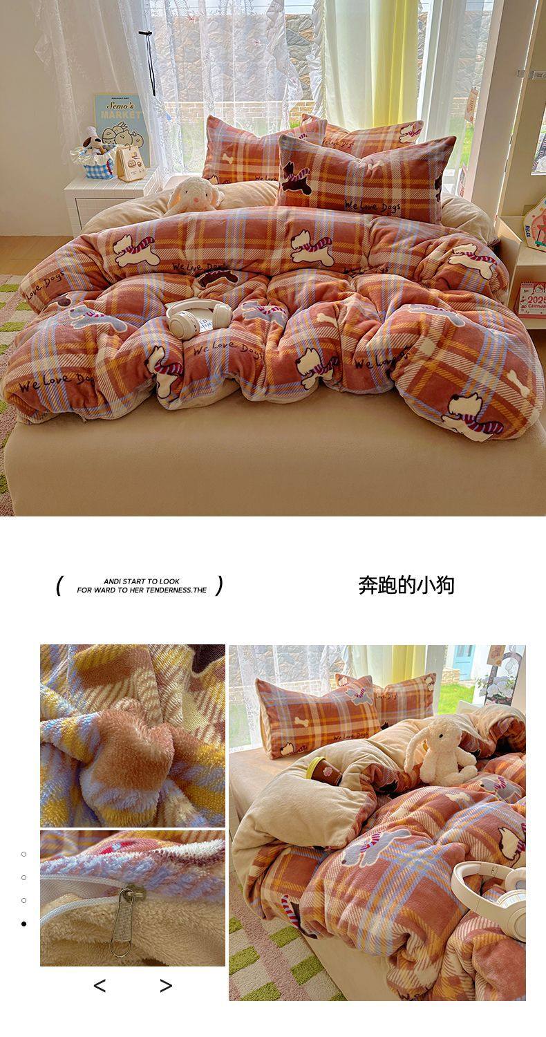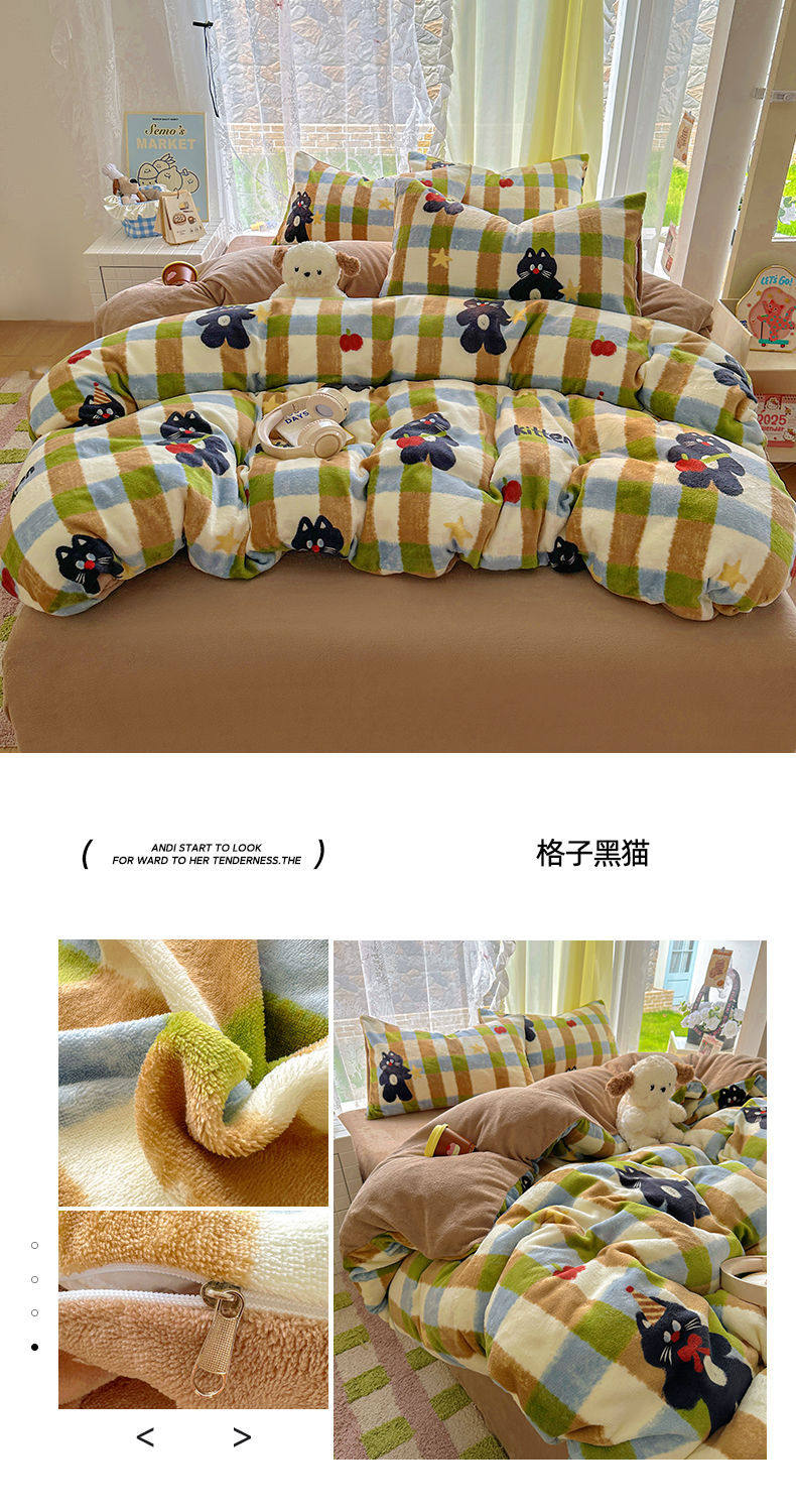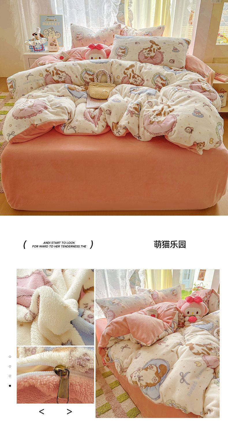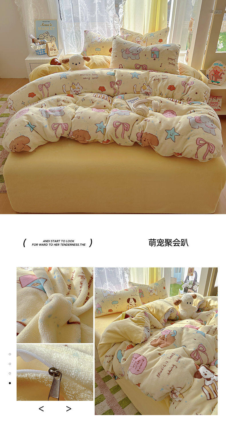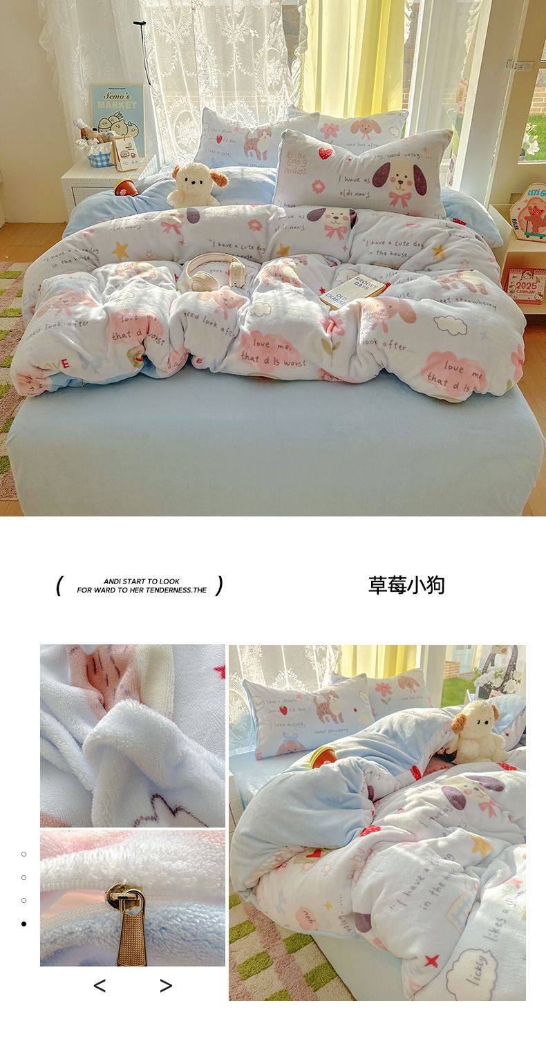 2025 New Autumn and Winter Type a Milk Velvet Four-Piece Set Thickeneded and Warm Cartoon 0.9m Bed Three-Piece Set Must Be Selected in Winter