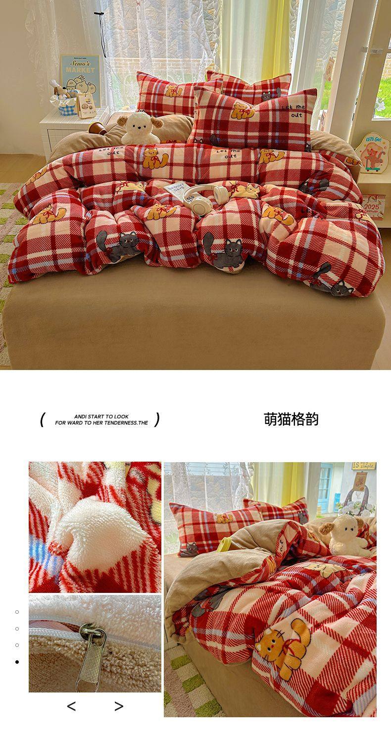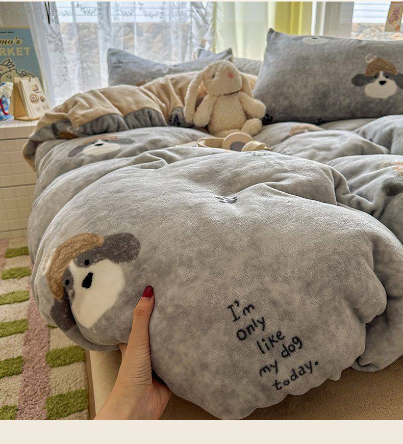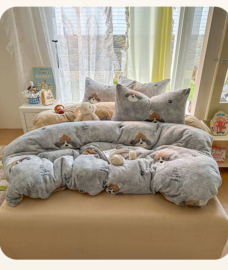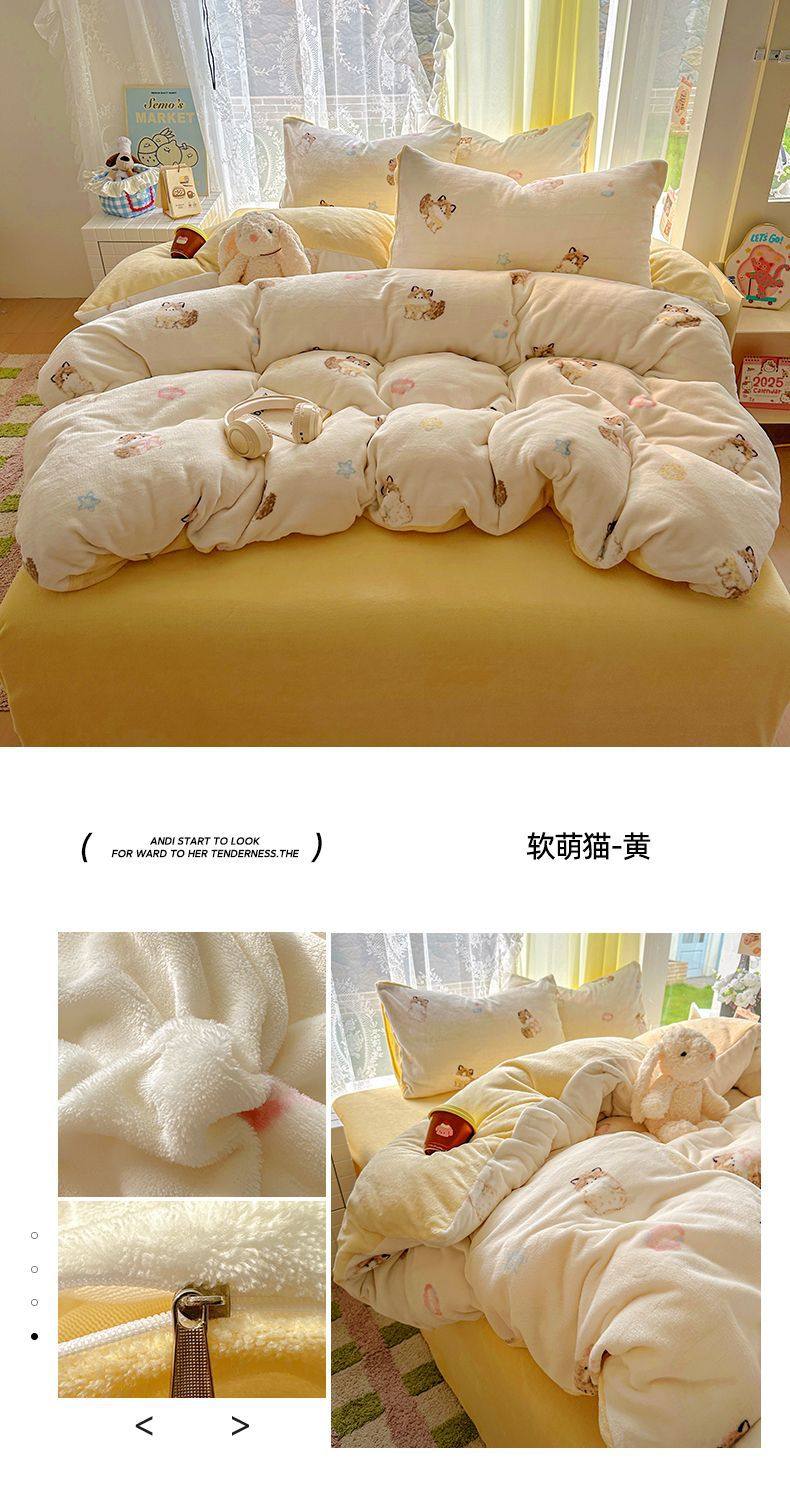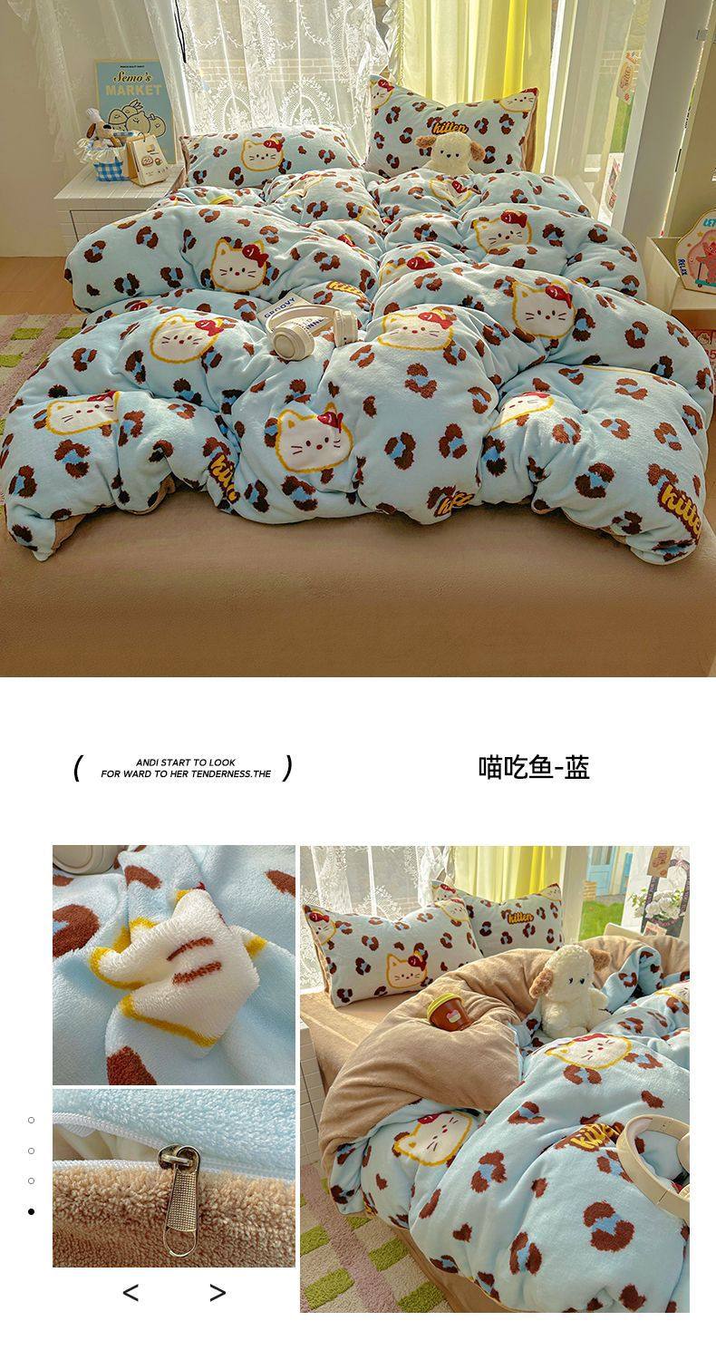 2025 New Autumn and Winter Type a Milk Velvet Four-Piece Set Thickeneded and Warm Cartoon 0.9m Bed Three-Piece Set Must Be Selected in Winter