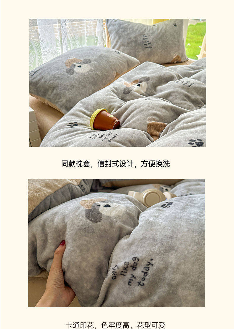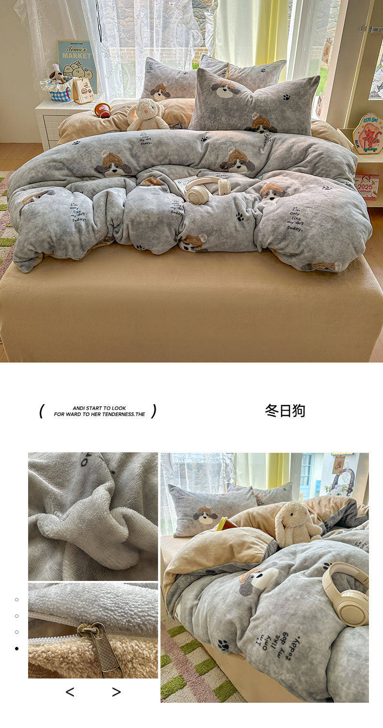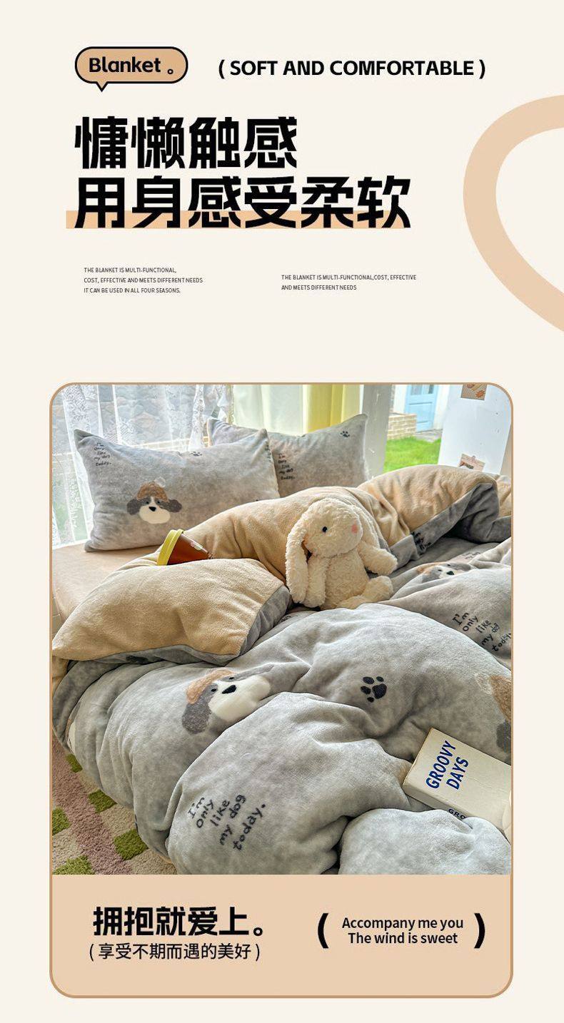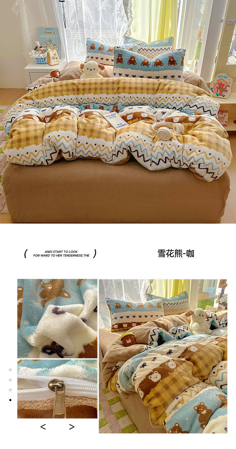 2025 New Autumn and Winter Type a Milk Velvet Four-Piece Set Thickeneded and Warm Cartoon 0.9m Bed Three-Piece Set Must Be Selected in Winter