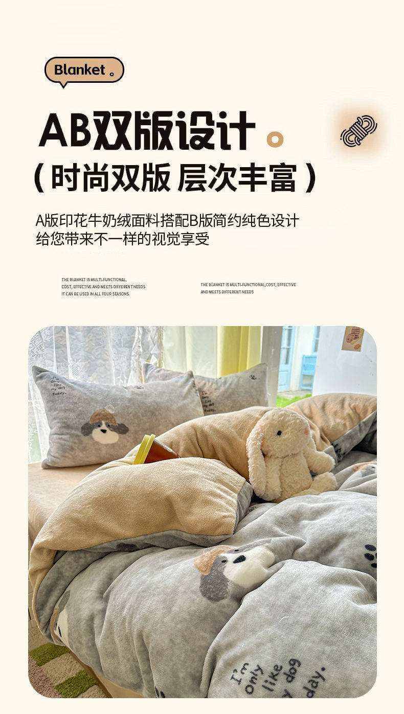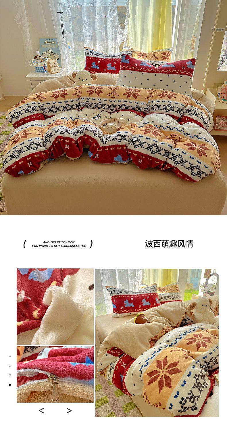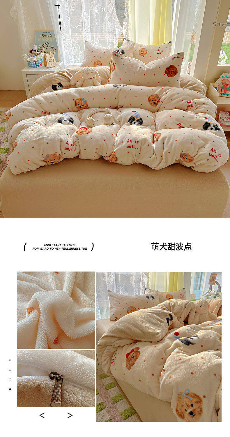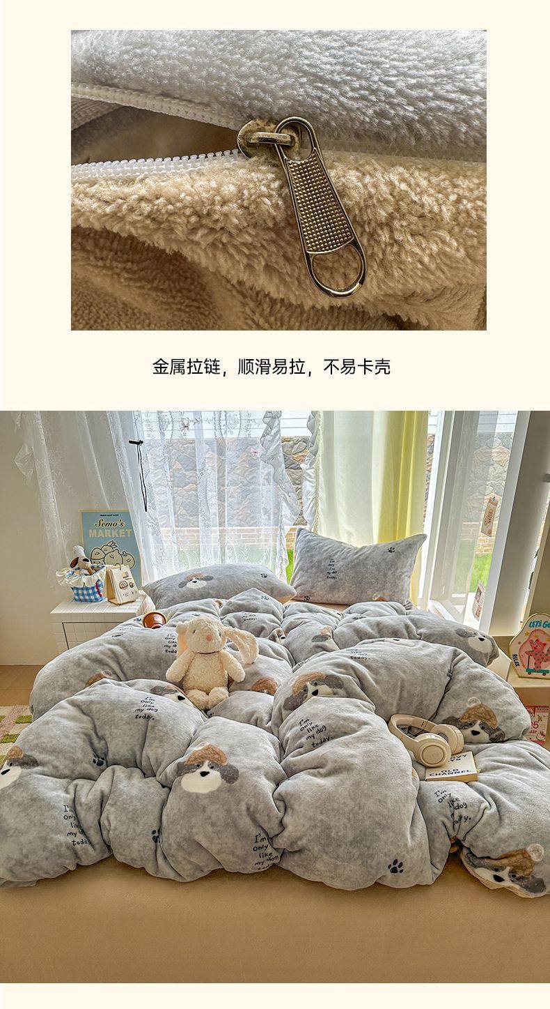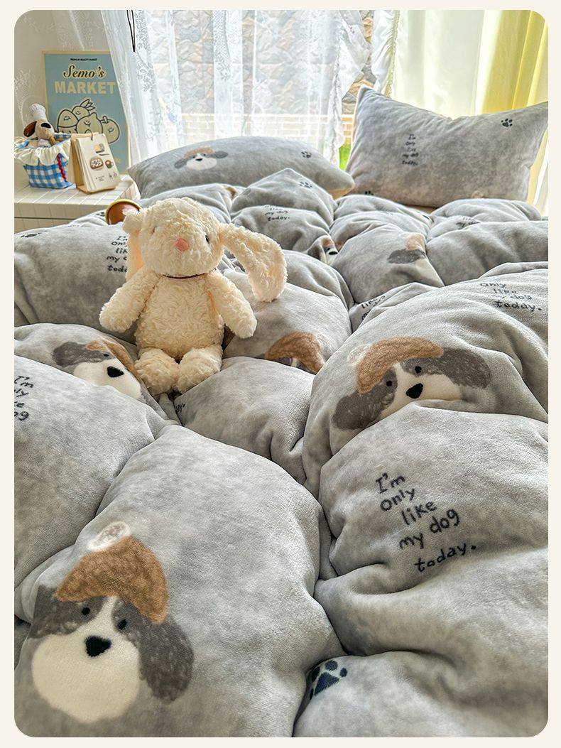 2025 New Autumn and Winter Type a Milk Velvet Four-Piece Set Thickeneded and Warm Cartoon 0.9m Bed Three-Piece Set Must Be Selected in Winter