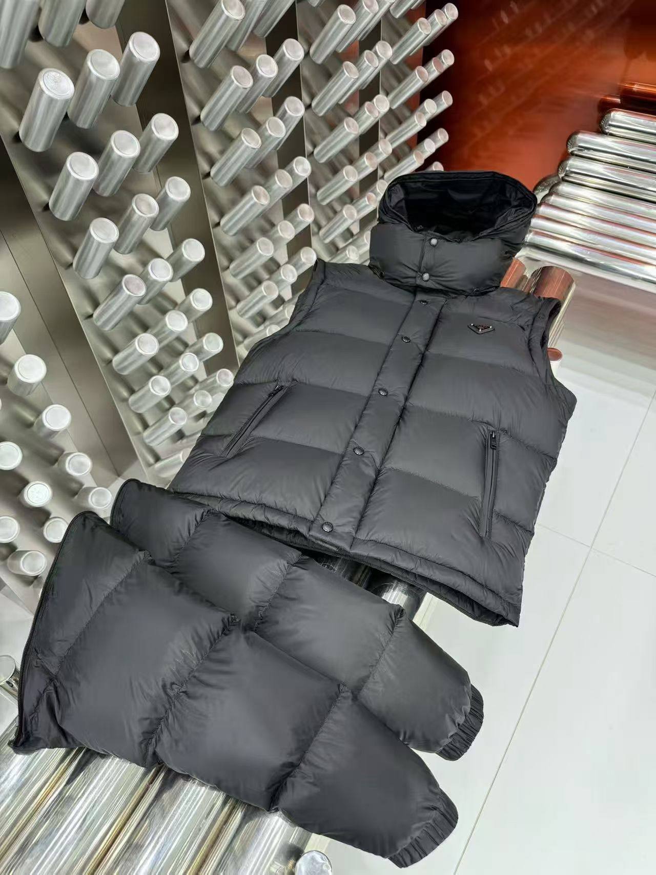 P Home Detachable Sleeve Two-Way down Jacket Unisex Hooded down Jacket High Version in Stock