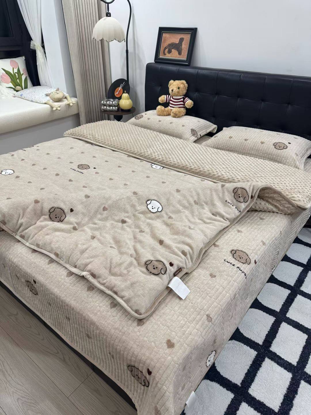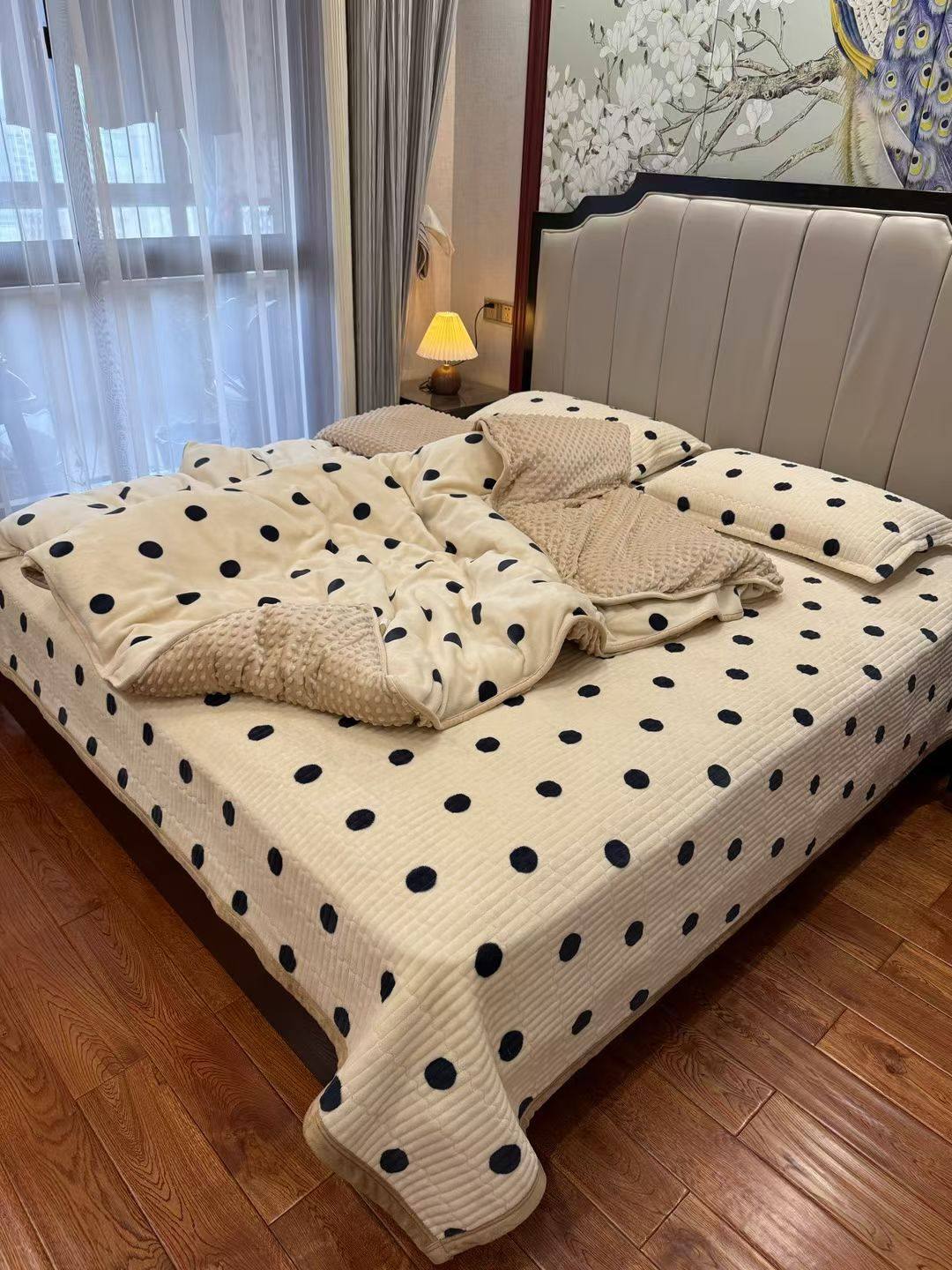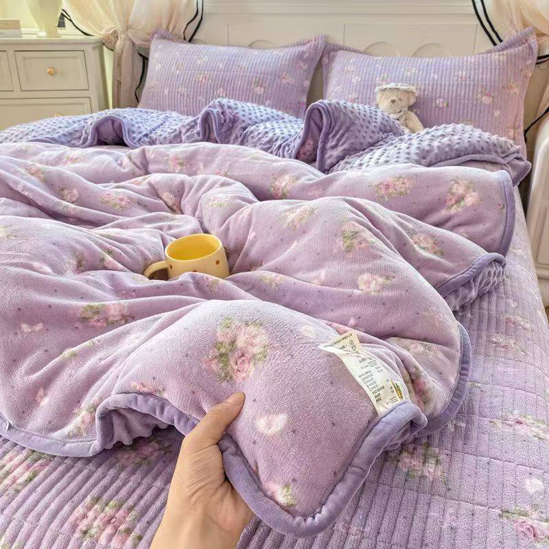 Milk Velvet Bed Cover Four-Piece Set, Bean Quilt Cover, Non-Running Bed Cover Four-Piece Set, Household Milk Velvet Bed Cover Four-Piece Set
