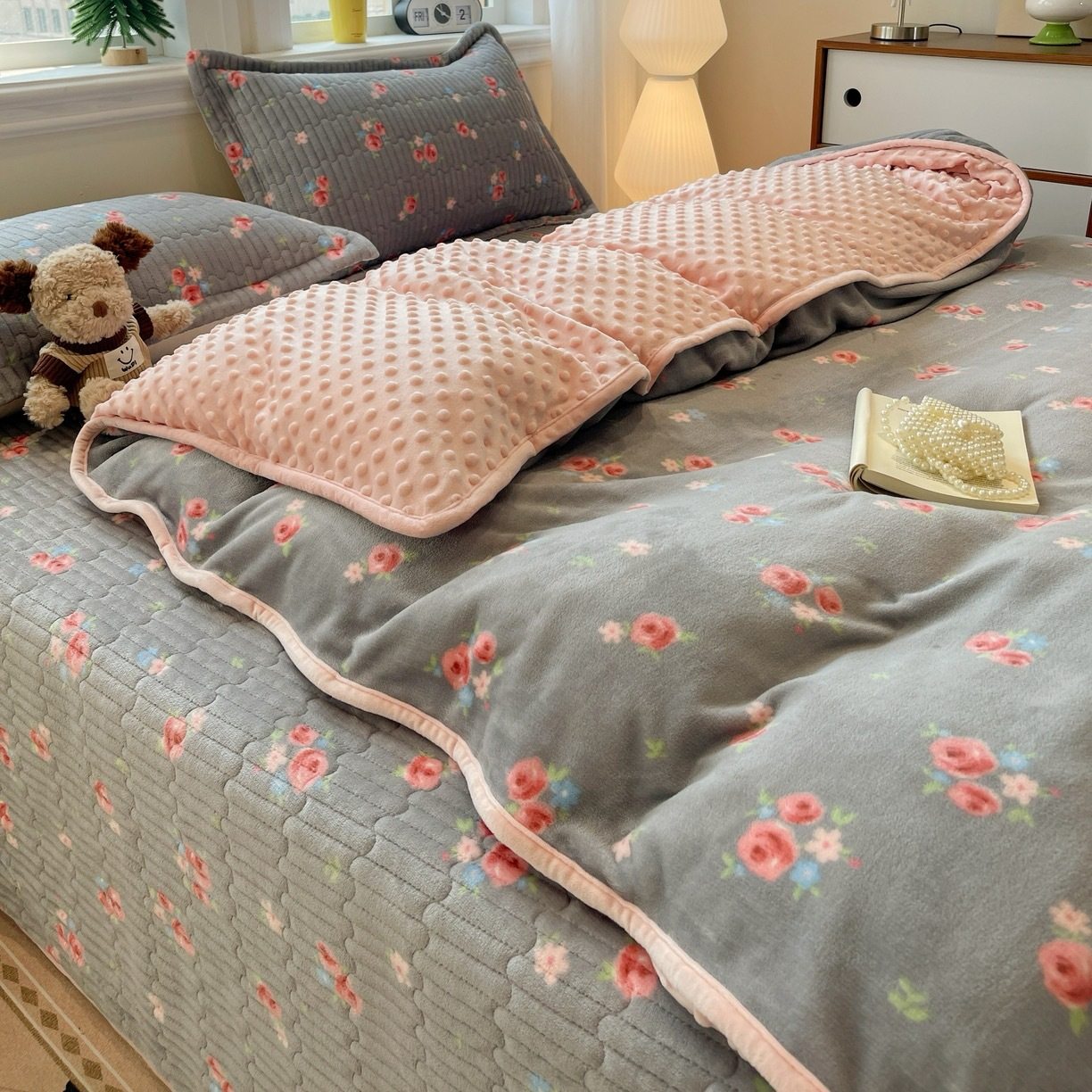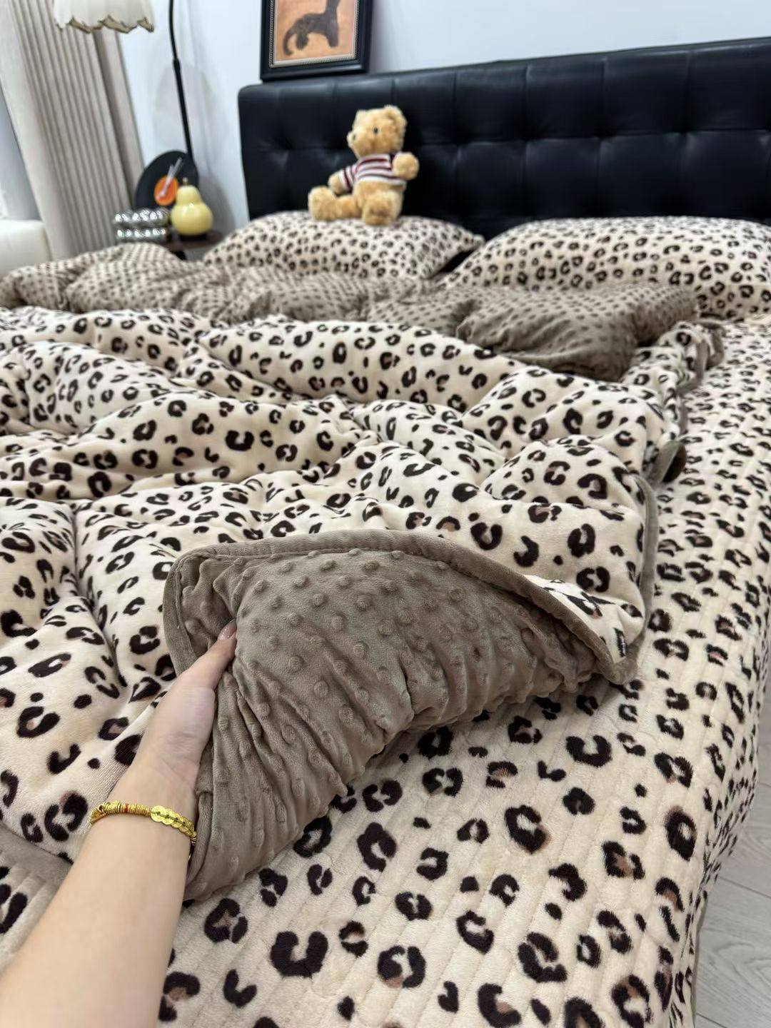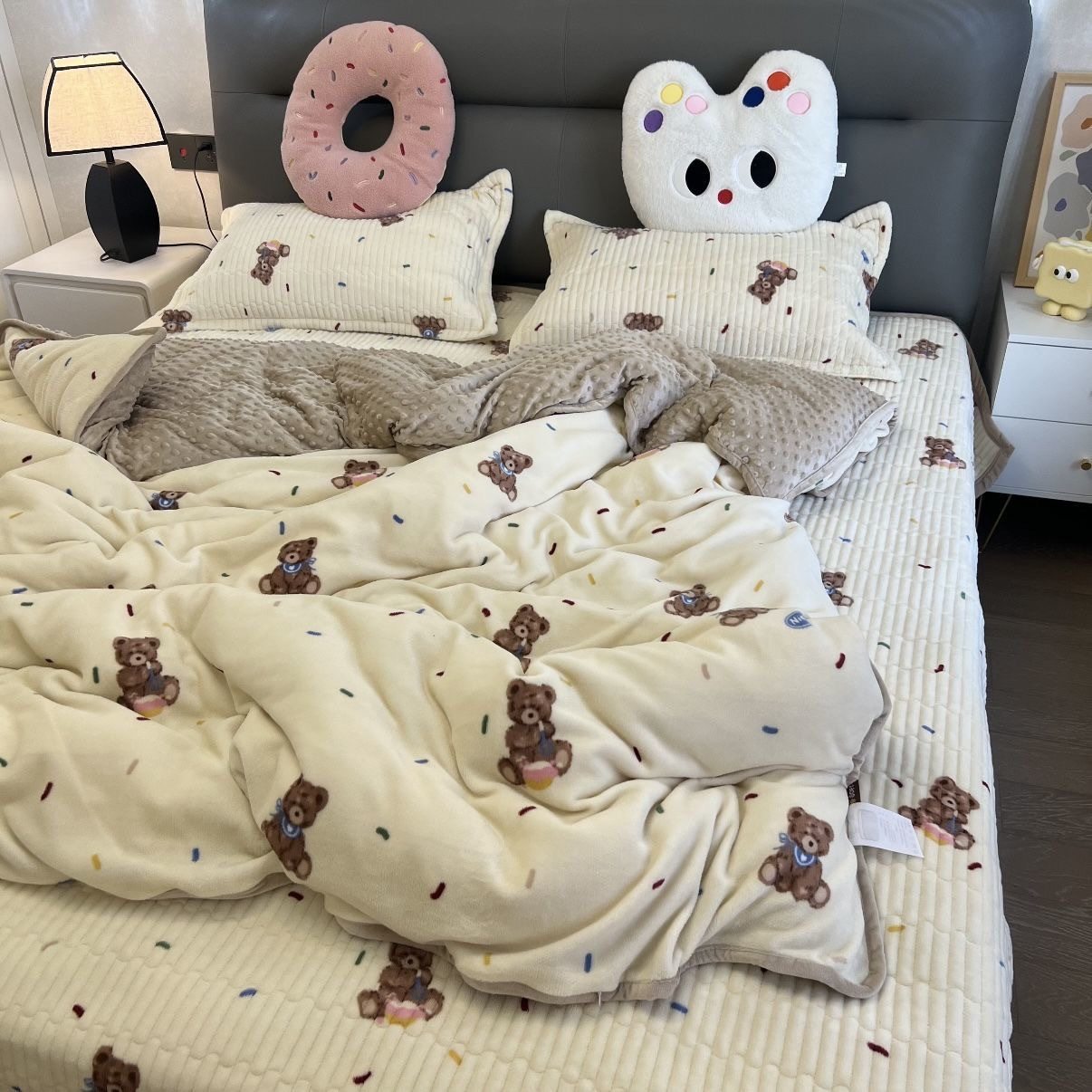 Milk Velvet Bed Cover Four-Piece Set, Bean Quilt Cover, Non-Running Bed Cover Four-Piece Set, Household Milk Velvet Bed Cover Four-Piece Set