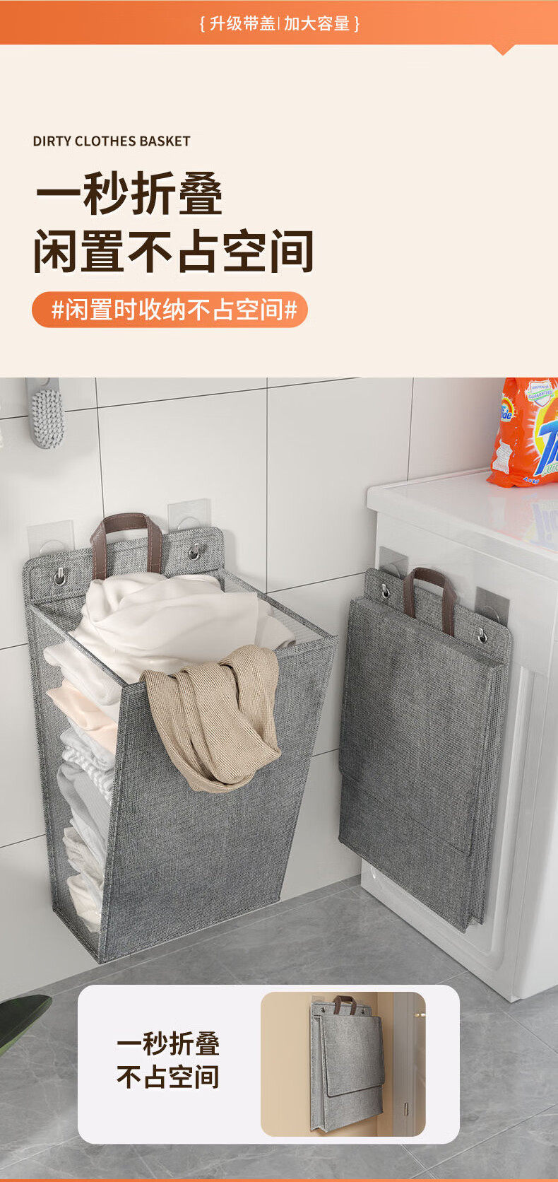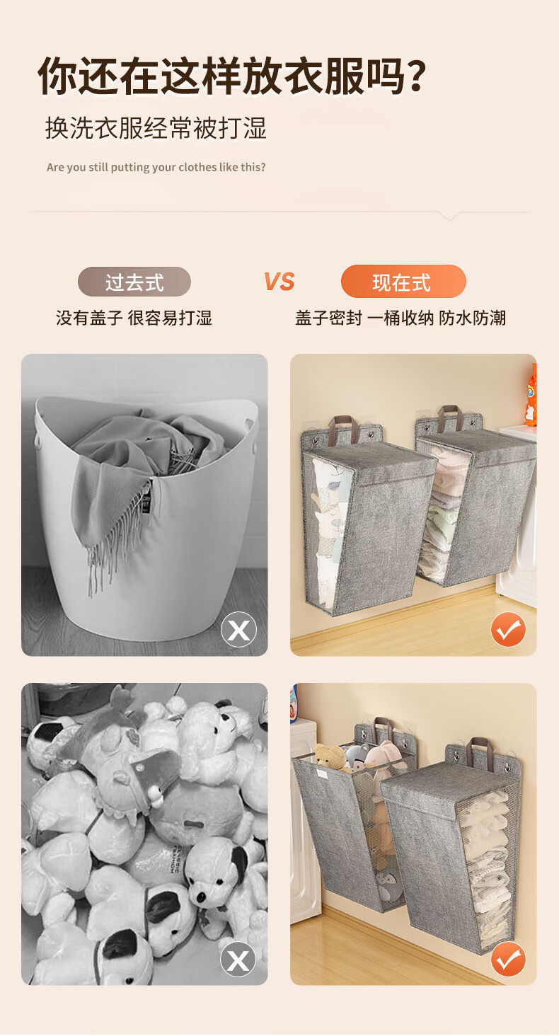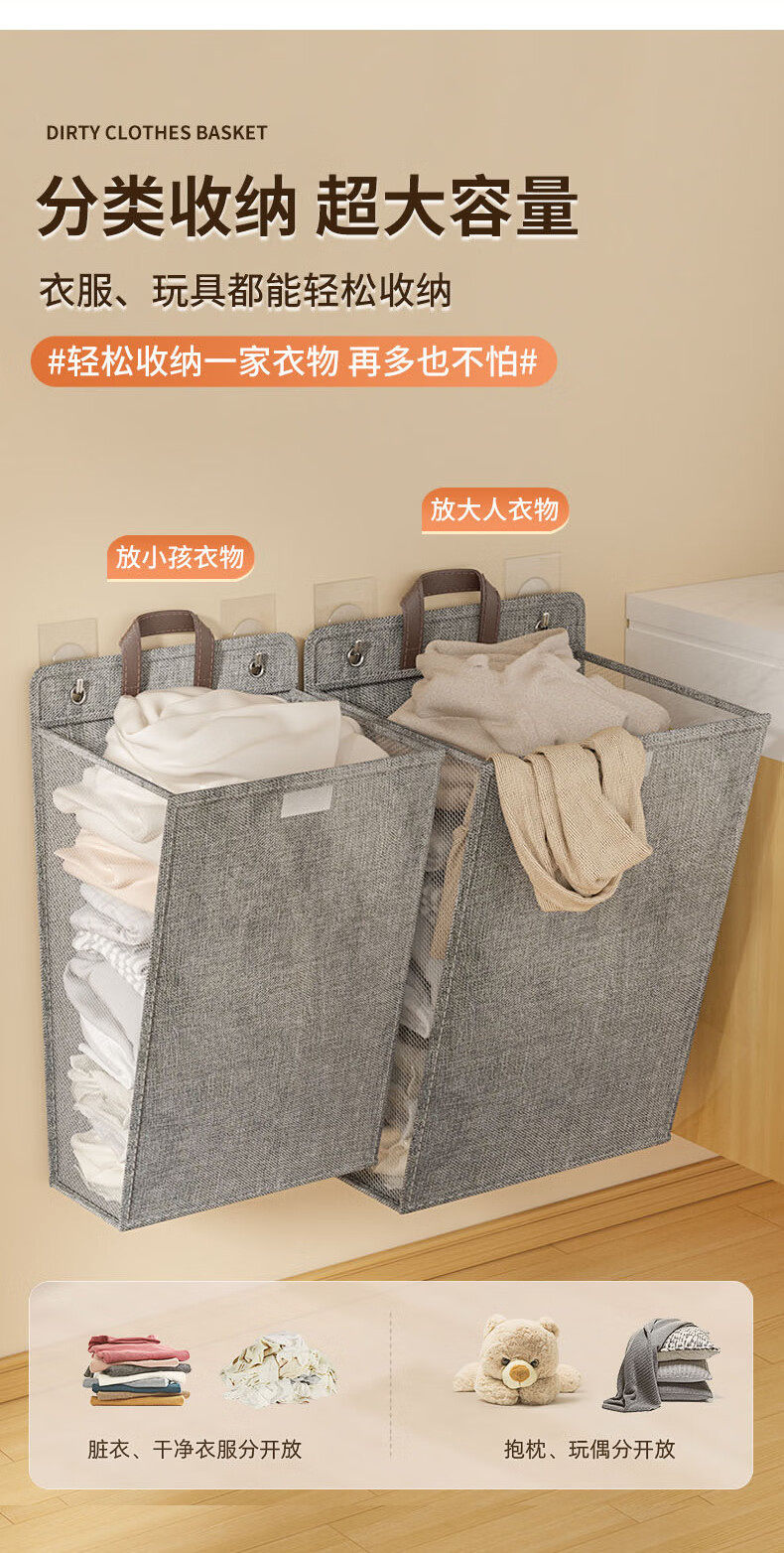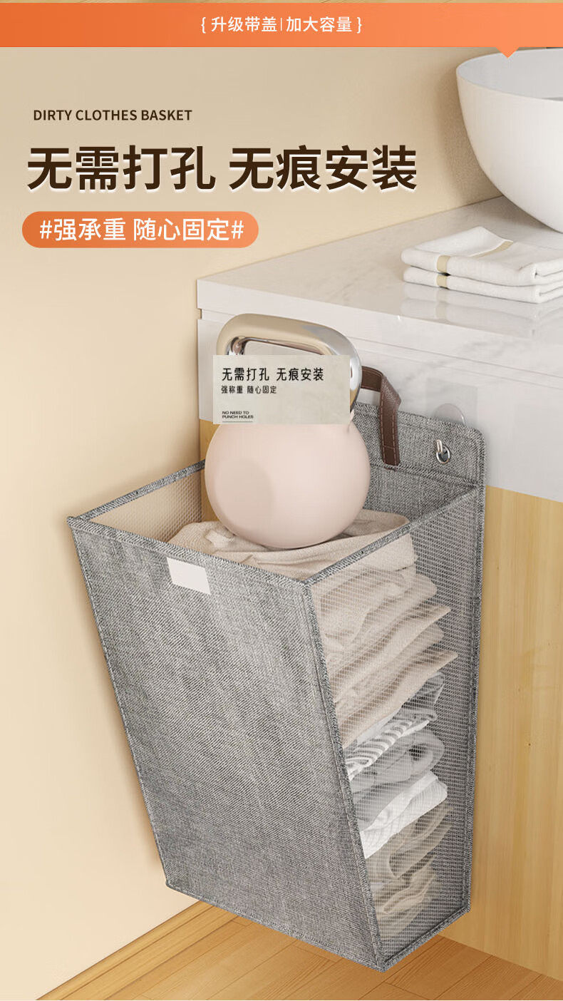 Bathroom Dirty Clothes Basket Foldableable Home Bedroom Dormitory Multi-Functional Storage Basket Hanging Behind the Door Wall Storage Basket