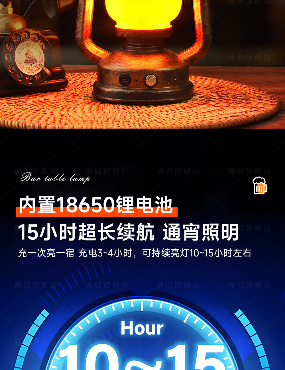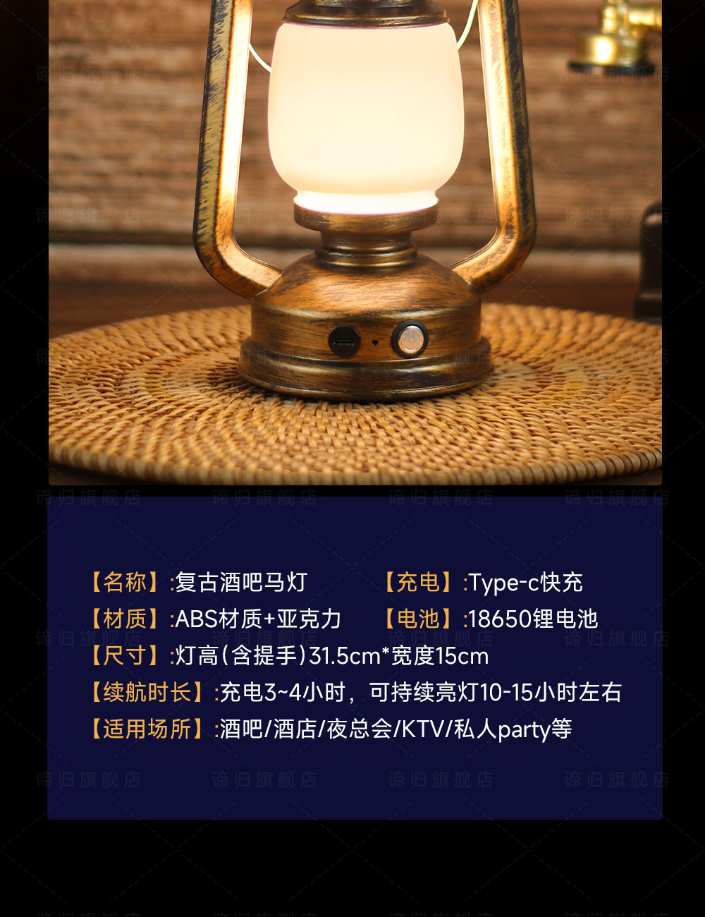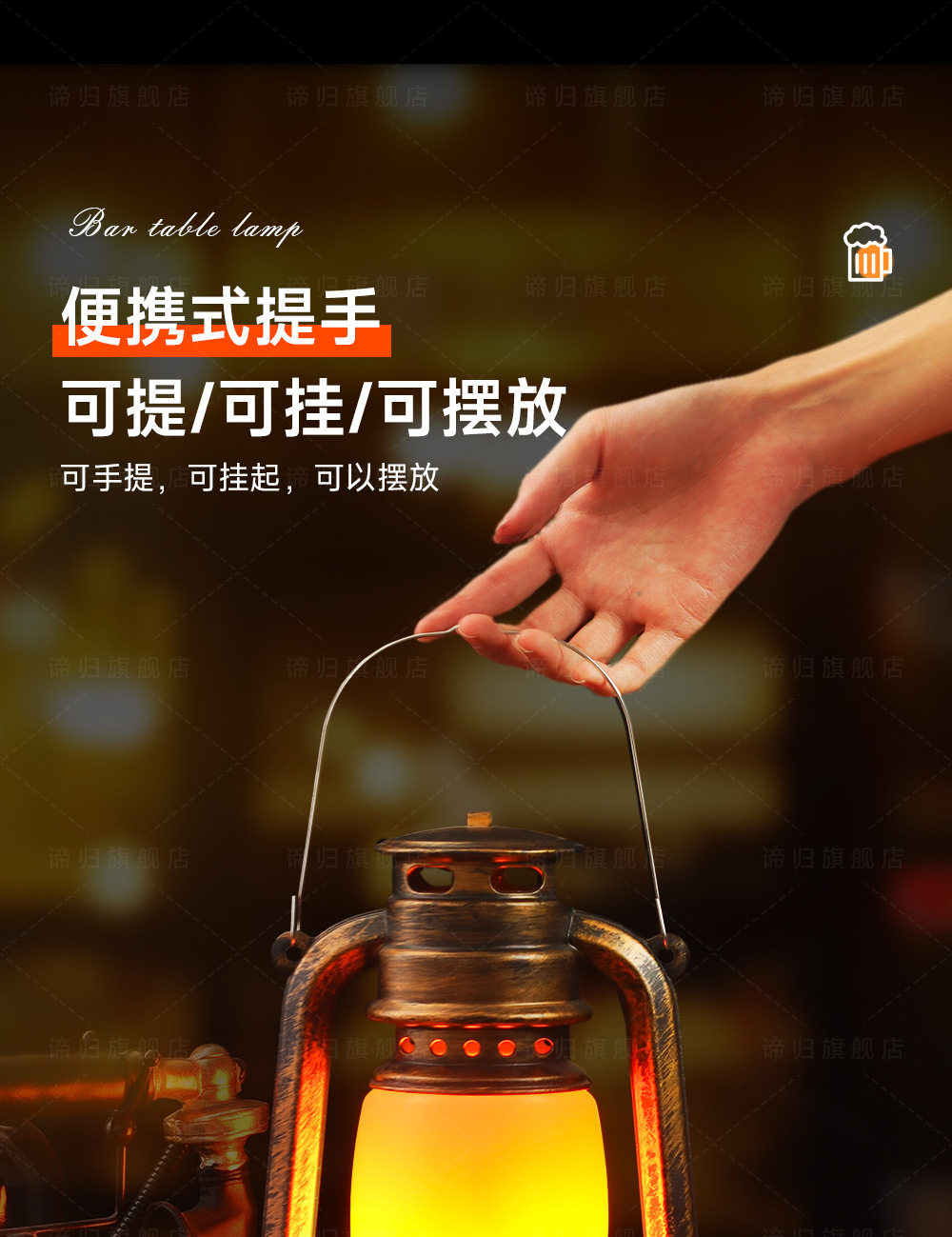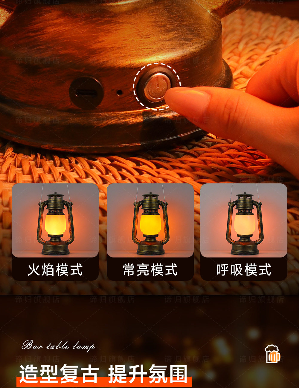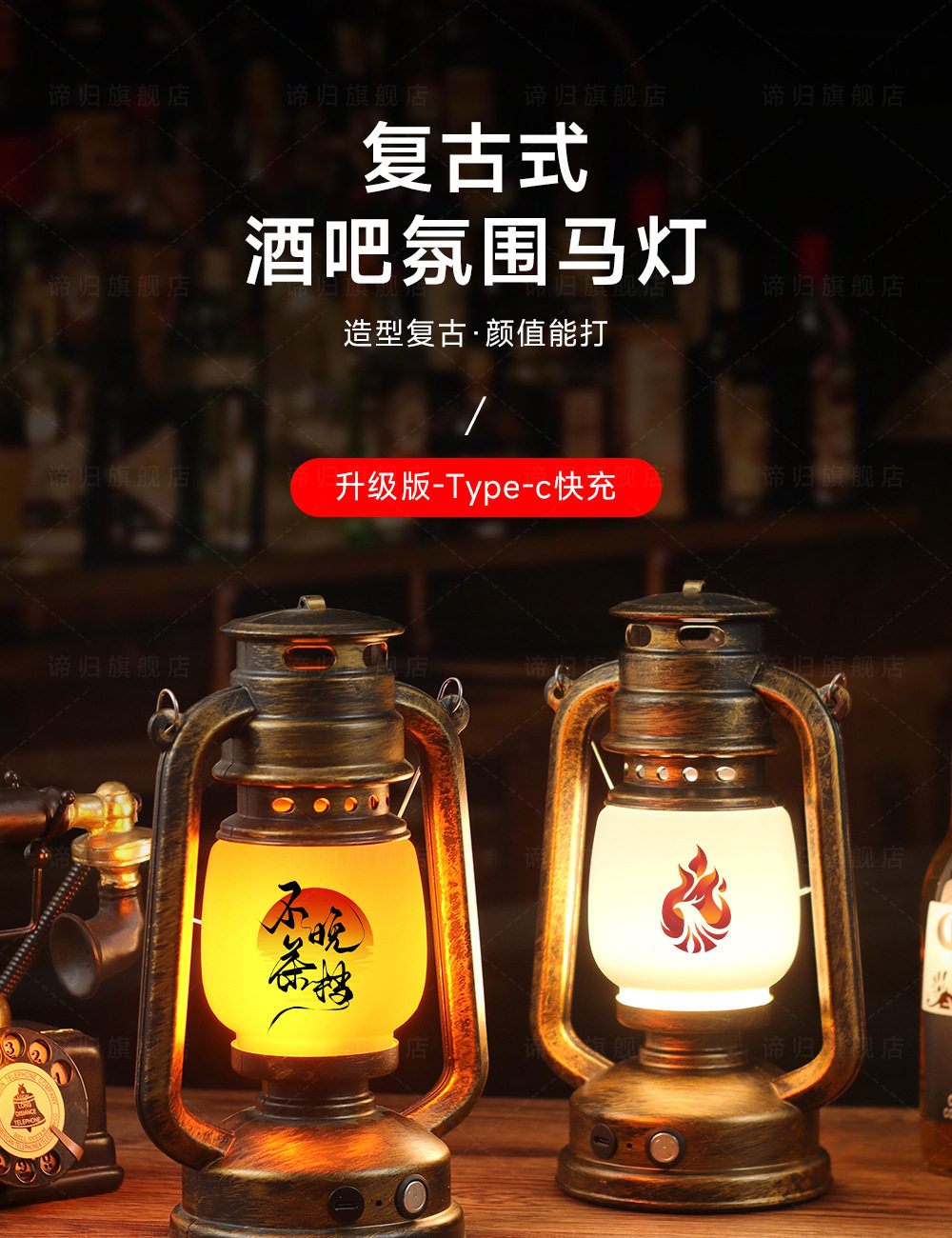 Rechargeable Bar Table Lamp, Bar Atmosphere Lamp, Creative Retro Horse Lantern, Outdoor Props, Camping Kerosene Lamp, Table Lamp, Lantern