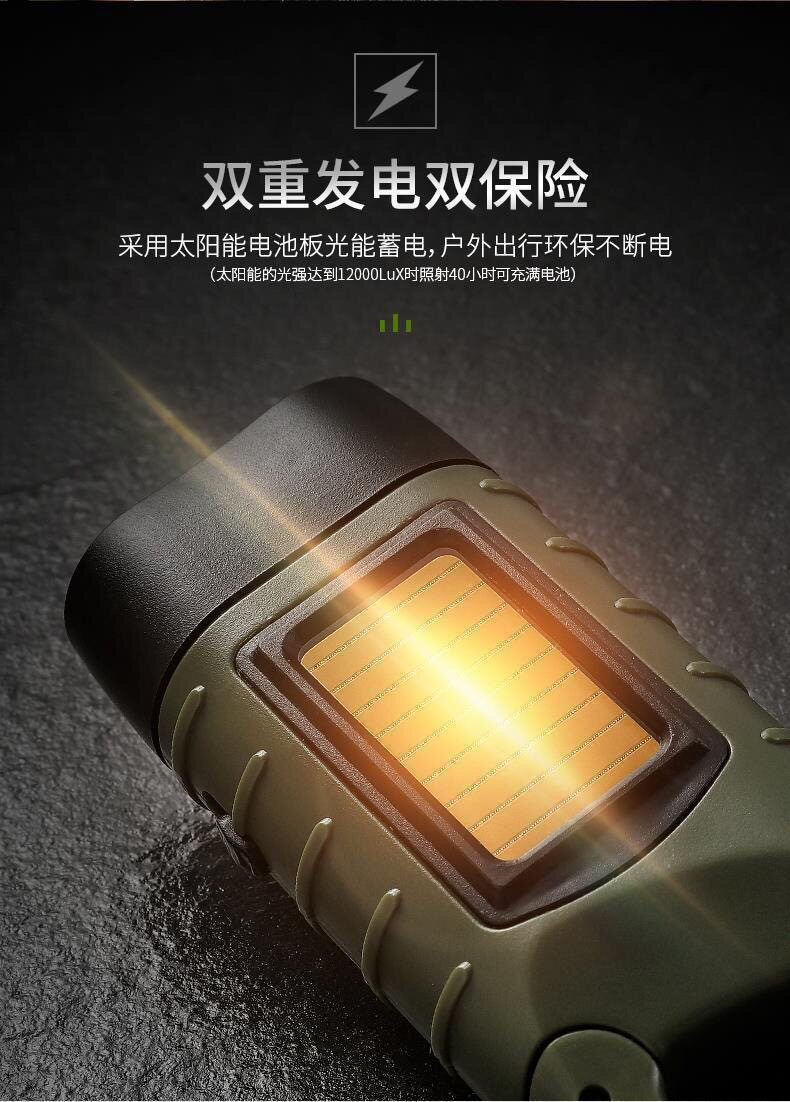 Solar-Powered Hand-Cranked Flashlight, Multi-Functional Camping Handheld Power Supply, Portable Emergency Led Light for Outdoor Use
