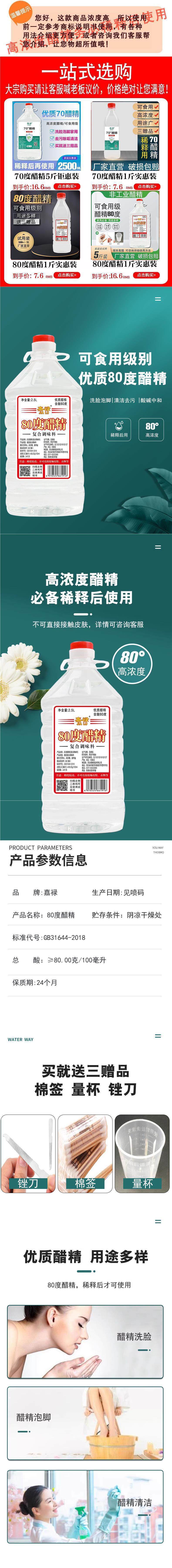 High Concentration Vinegar Essence: Edible White Vinegar 80 Degrees for Pickles and Sauerkraut, Diluted for Foot Soaks, Decontamination and Descaling, Value Pack of 2.5kg