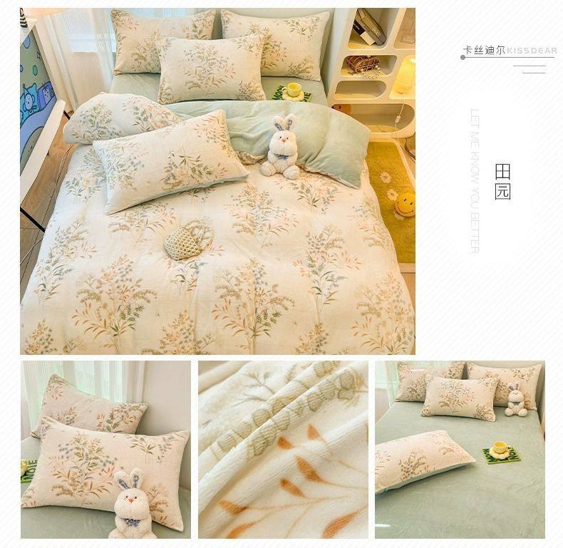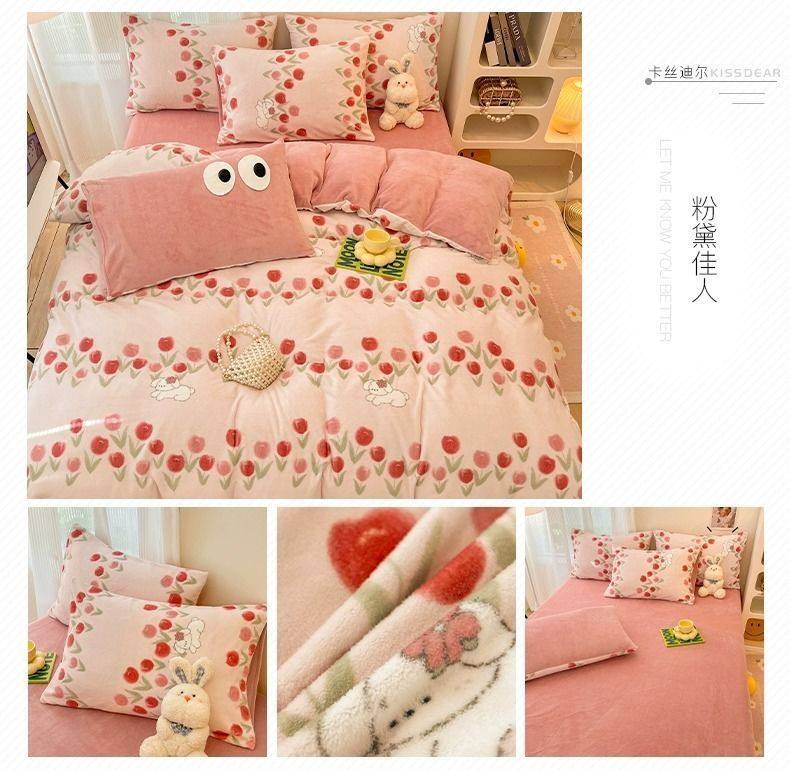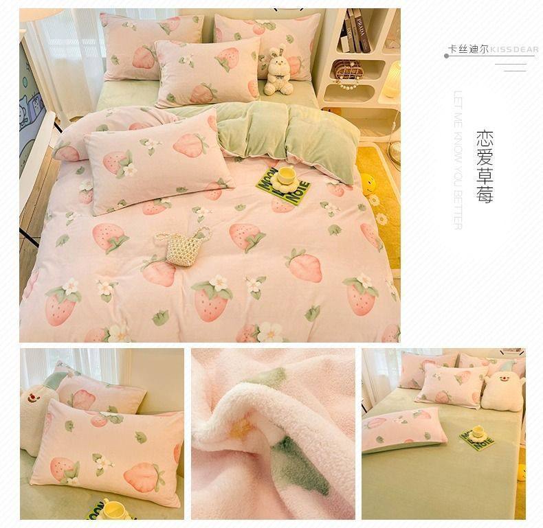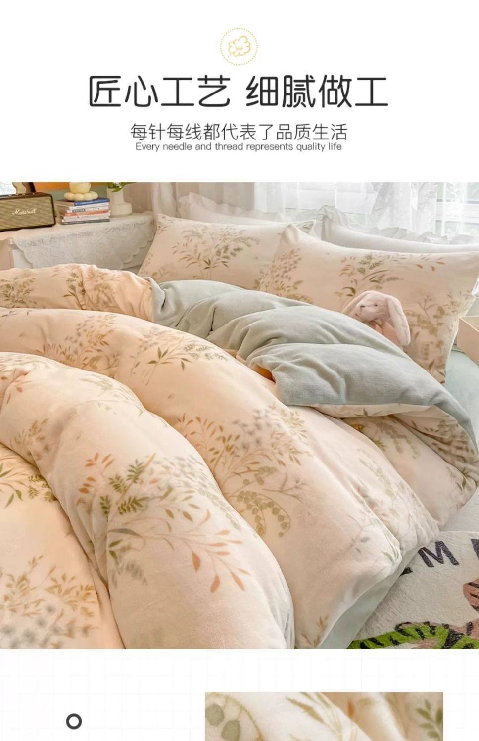 Category a Maternal and Infant Grade Bedding Milk Velvet Four-Piece Winter Accessible Luxury High-End Quilt Cover Coral Three-Piece Set