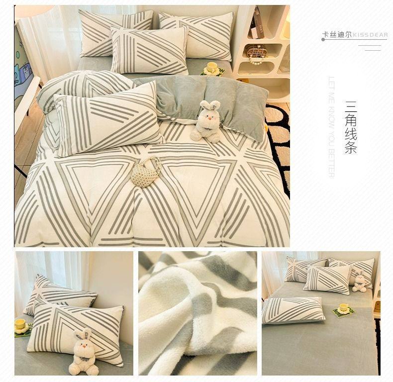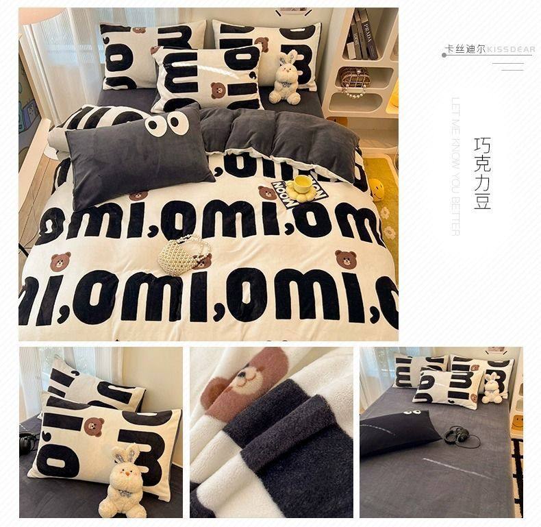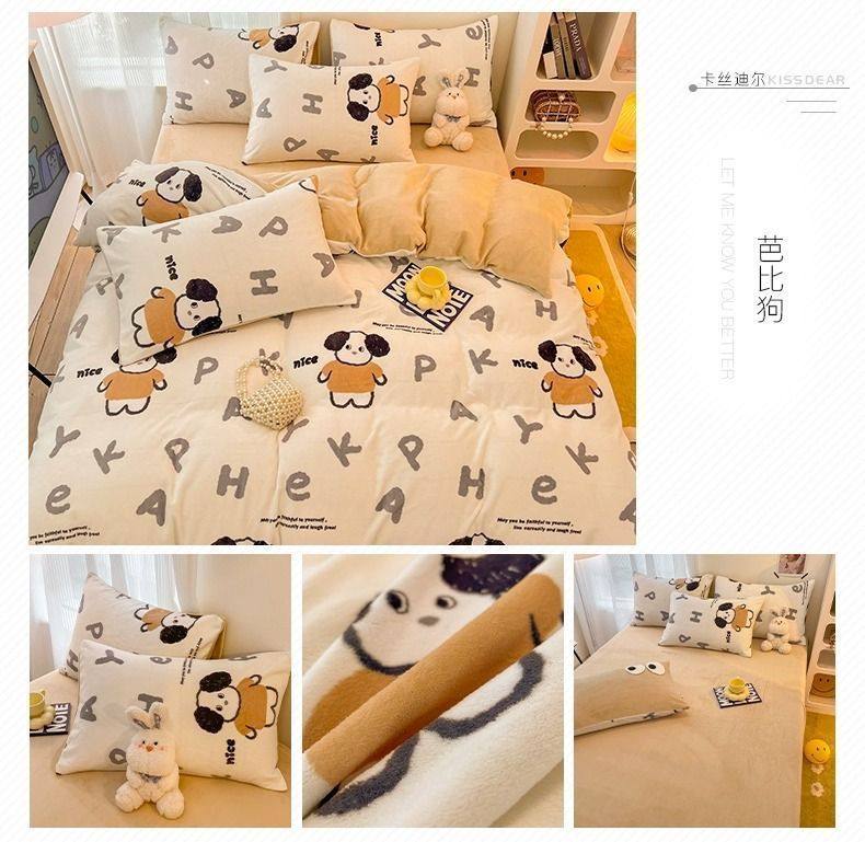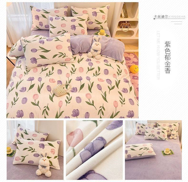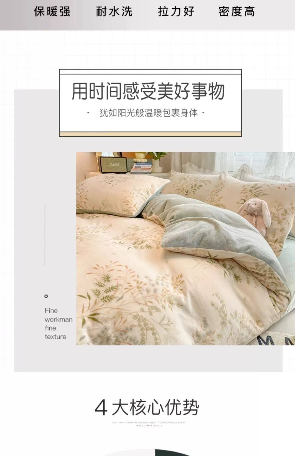 Category a Maternal and Infant Grade Bedding Milk Velvet Four-Piece Winter Accessible Luxury High-End Quilt Cover Coral Three-Piece Set