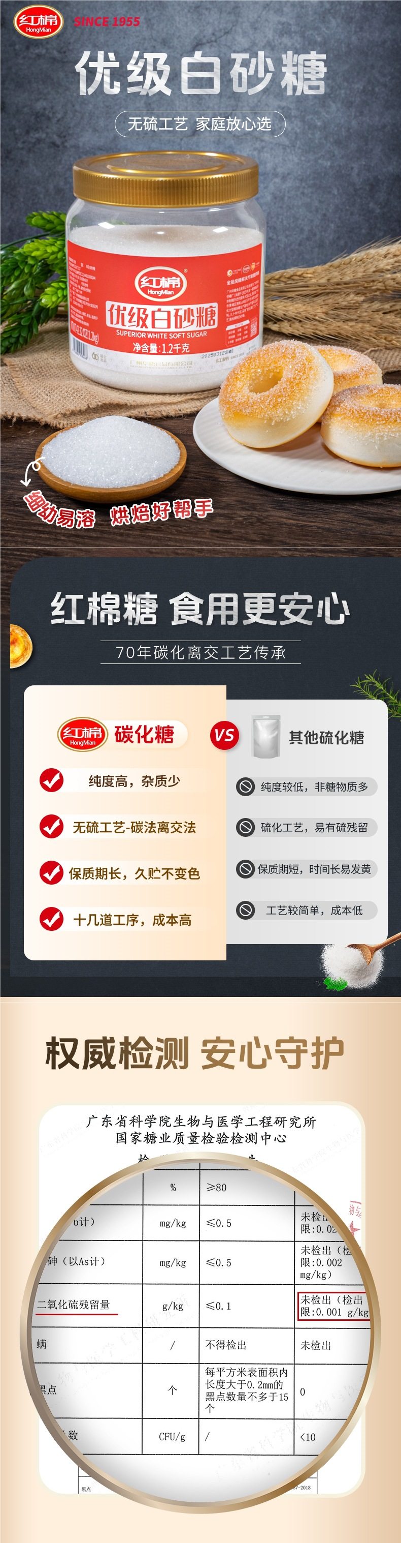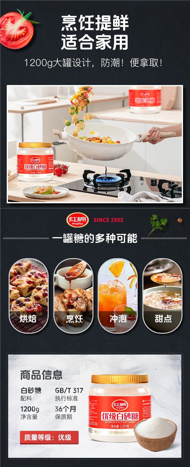 Red Cotton Premium White Sugar 1200g Official Sugar Cane White Sugar Household Sugar Wholesale Baking Fine Sugar