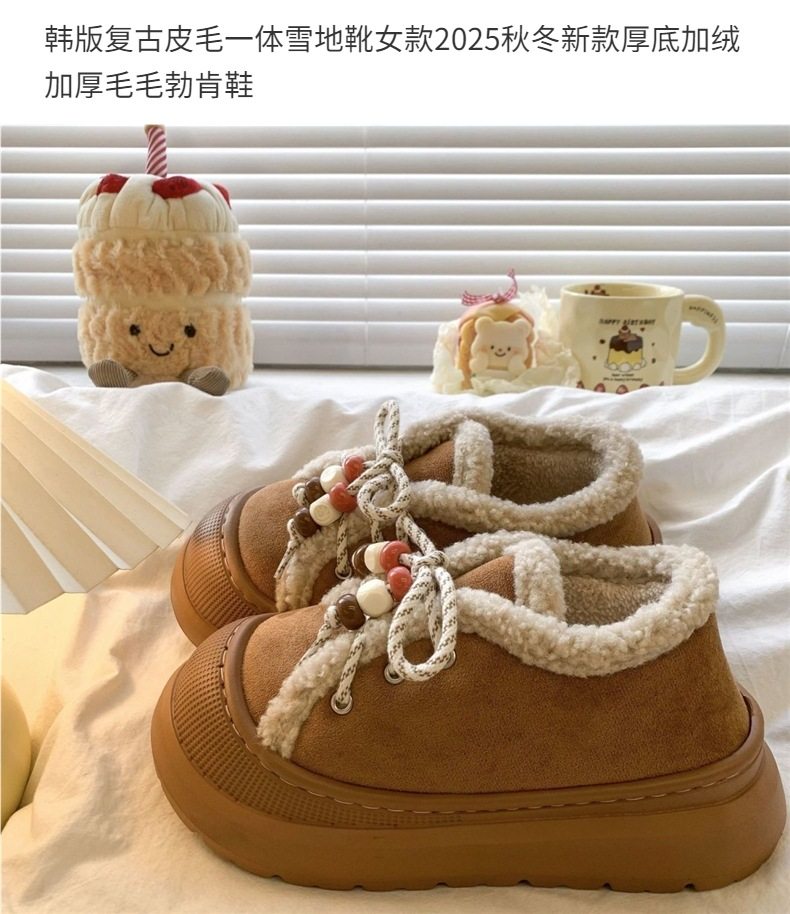 2025 New Autumn and Winter Thick-Soled Korean Style Retro Fur All-In-One Snow Boots for Women Fleece-Lined and Thickeneded Fur Birkenstocks