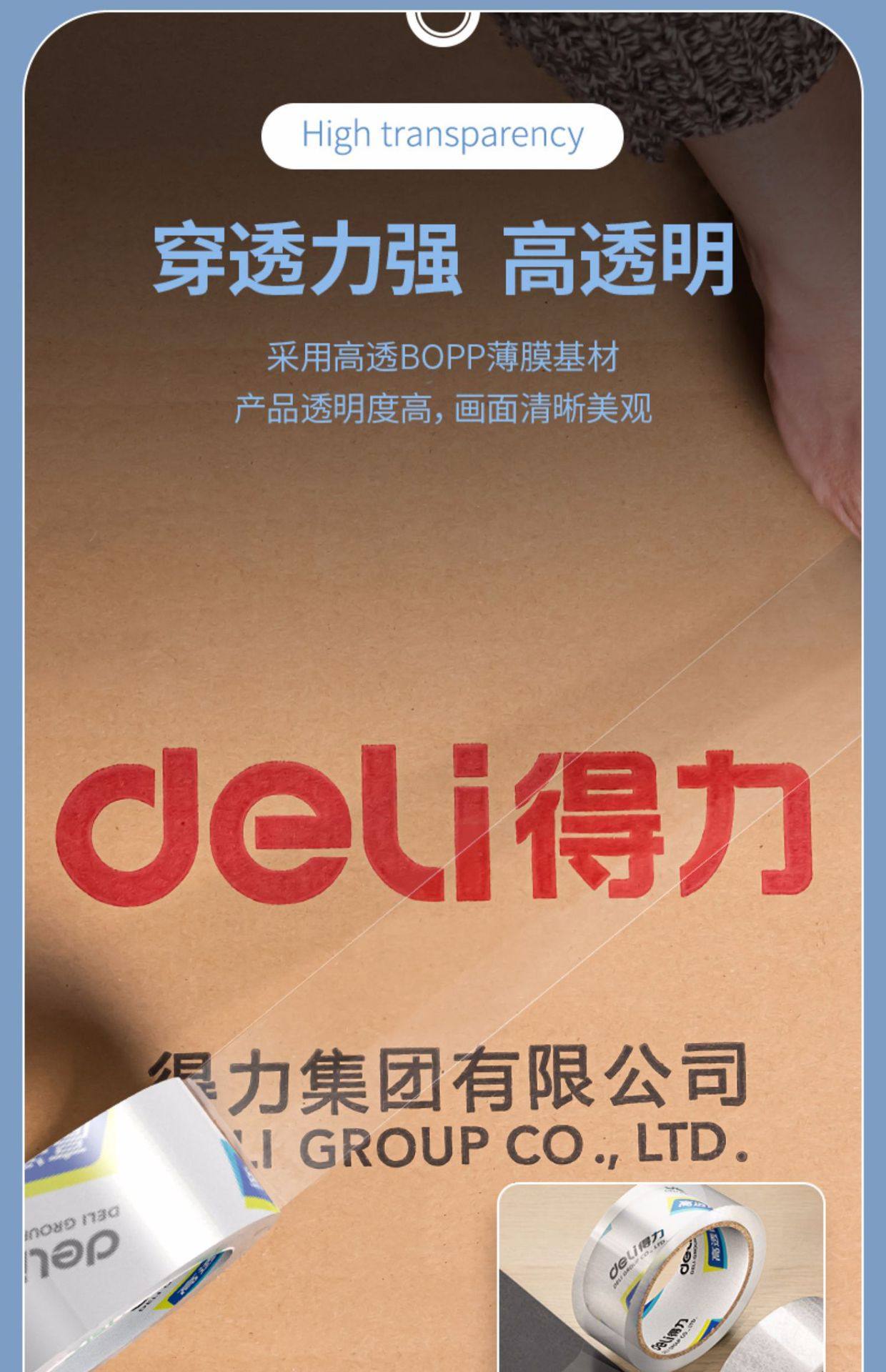 Deli Large Roll Sealing Transparent Tape Wholesale Large Wide Tape Sealing High Transparency Tape 6cm