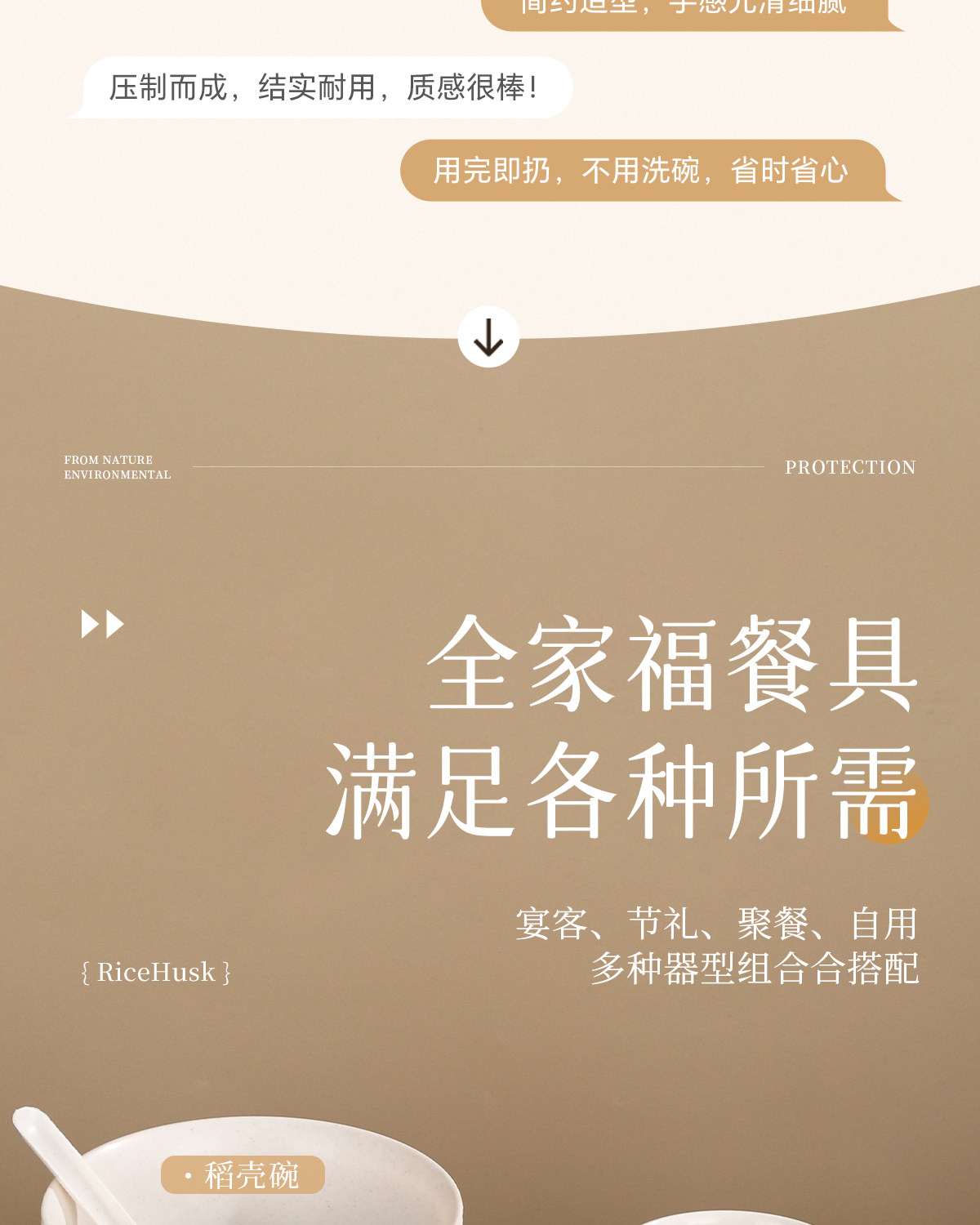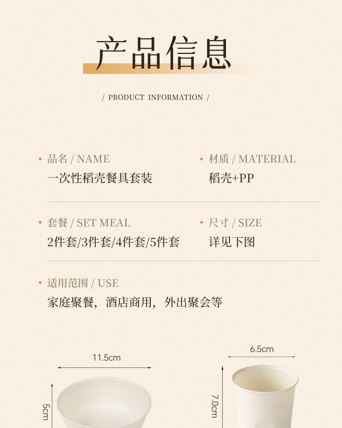| Color | [two-piece set] 350ml bowl + chopsticks: 20 sets,[two-piece set] 350ml bowl + chopsticks: 50 sets,[three-piece set] 350ml bowl + cup + chopsticks: 20 sets,[three-piece set] 350ml bowl + cup + chopsticks: 50 sets,[three-piece set] 350ml bowl + cup + spoon: 20 sets,[four-piece set] 350ml bowl + cup + saucer + chopsticks: 20 sets,[four-piece set] 350ml bowl + cup + spoon + chopsticks: 20 sets,[four-piece set] 350ml bowl + cup + saucer + spoon: 20 sets,[four-piece set] 350ml bowl + cup + spoon + saucer: 50 sets,[five-piece set] 350ml bowl + cup + saucer + spoon + chopsticks: 20 sets,[five-piece set] 350ml bowl + cup + saucer + spoon + chopsticks: 50 sets,350ml small bowl [25 pieces],350ml small bowl [50 pieces],500ml bowl [25 pieces],500ml bowl [50 pieces],800ml soup bowl [10 pieces],800ml soup bowl [50 pieces],1250ml rice husk bowl [10 pieces],7inch square plate-[20 pieces],7inch square plate-[50 pieces],8inch square plate-[20 pieces],8inch square plate-[50 pieces],9inch square plate-[20 pieces],9inch square plate-[50 pieces],8inch lace disc-[20 pieces],8inch lace disc-[50 pieces],9inch lace disc-[20 pieces],9inch lace disc-[50 pieces],15.5cm bone dish-[20 pieces],7cm oil and vinegar dish-[20 pieces],170ml rice husk cup [50 pieces],13cm rice husk spoon [20 pieces],24cm carbonized chopsticks [50 pairs],21cm rice husk chopsticks [50 pairs] |