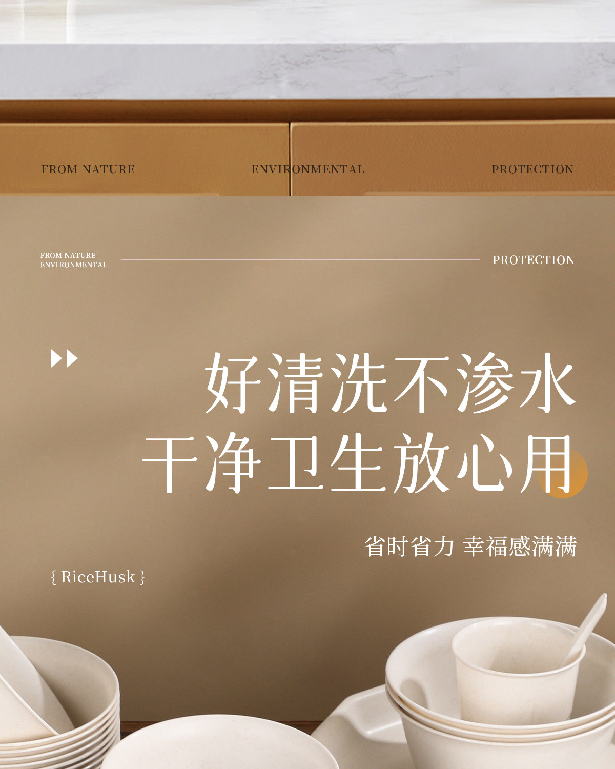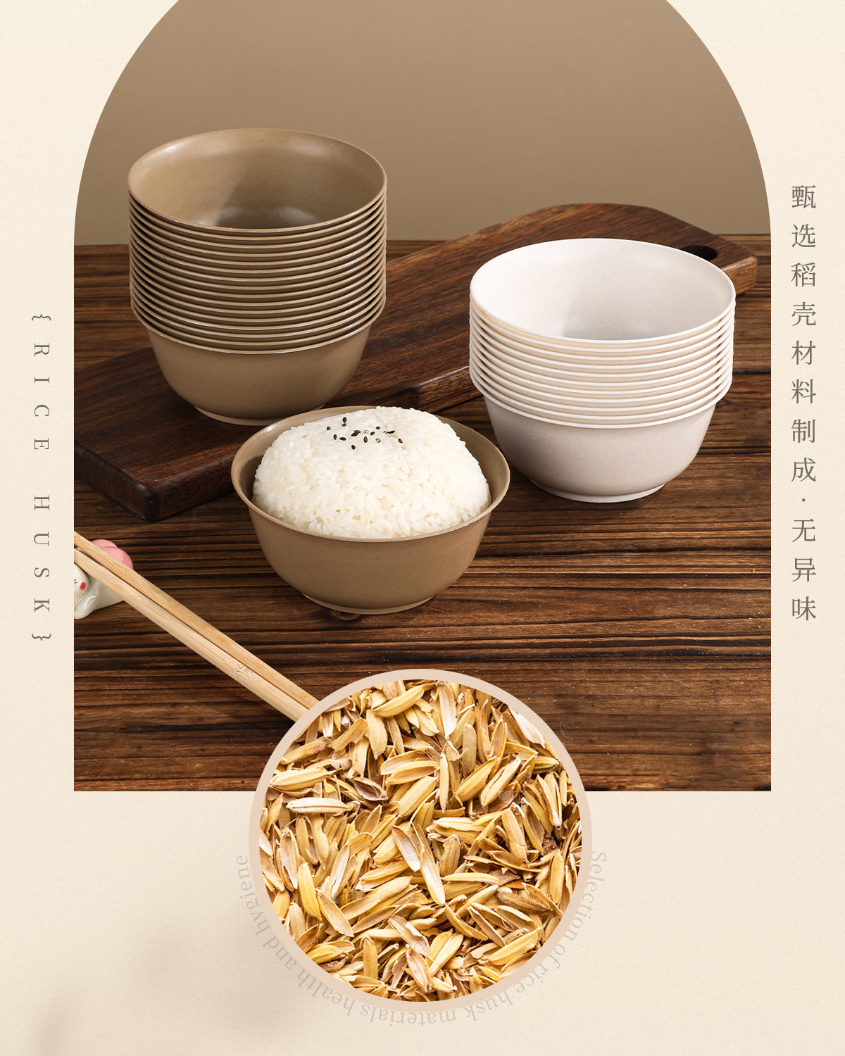 Rice Husk Tableware Three-Piece Set Disposable Rice Bowls, Chopsticks, Cups and Saucers Household Food Grade High Temperature Resistant Dining Four-Piece Set
