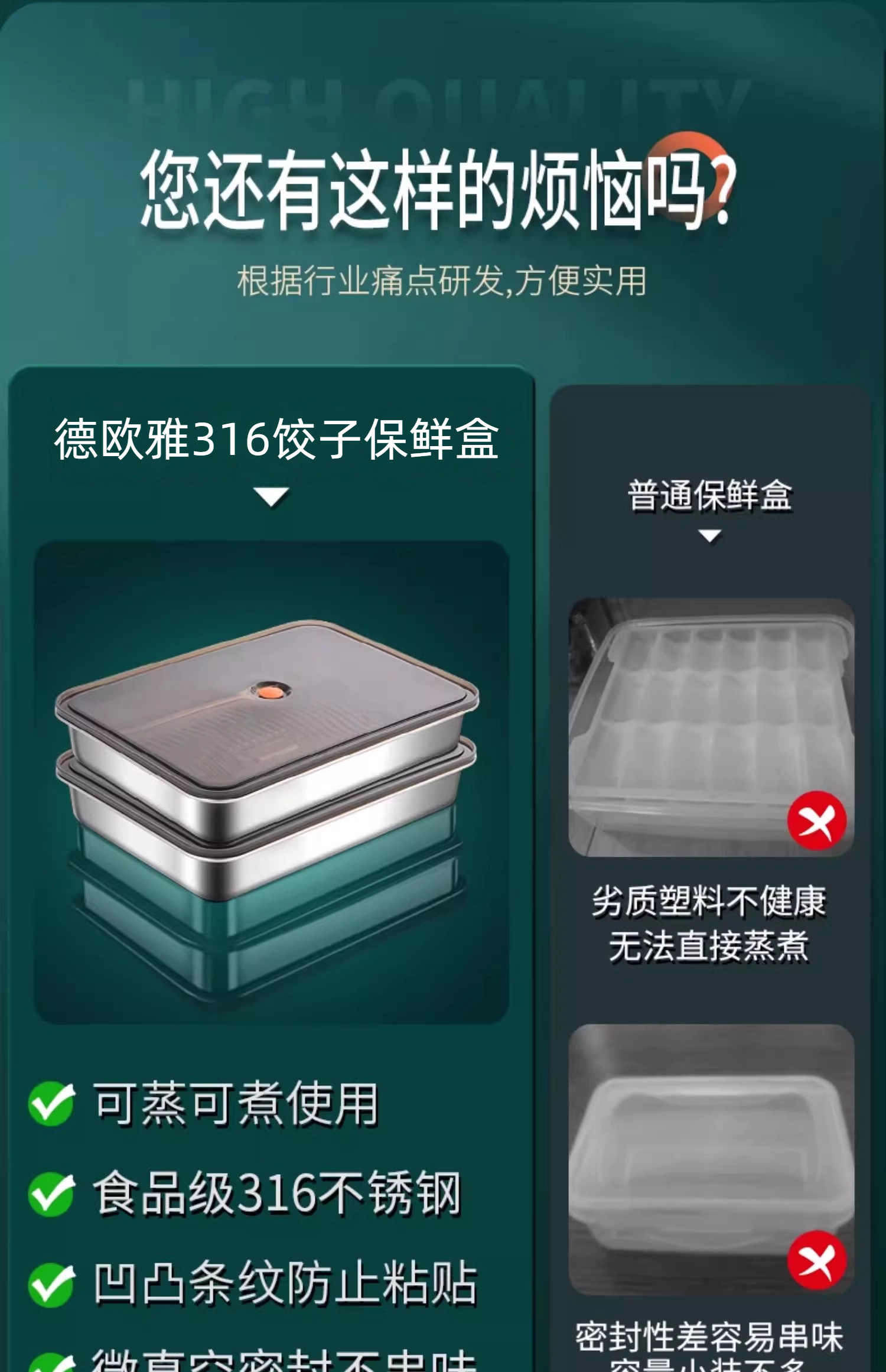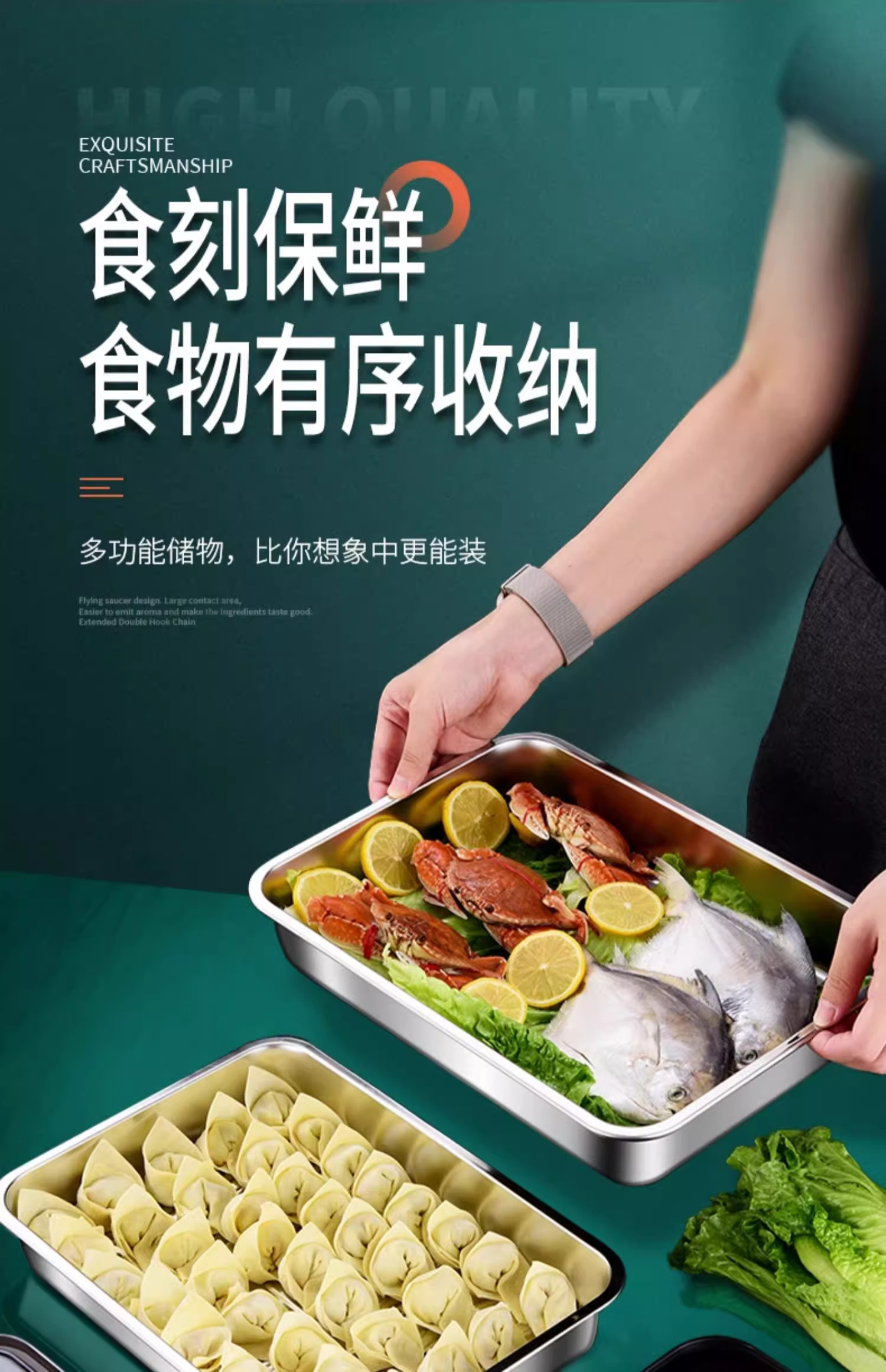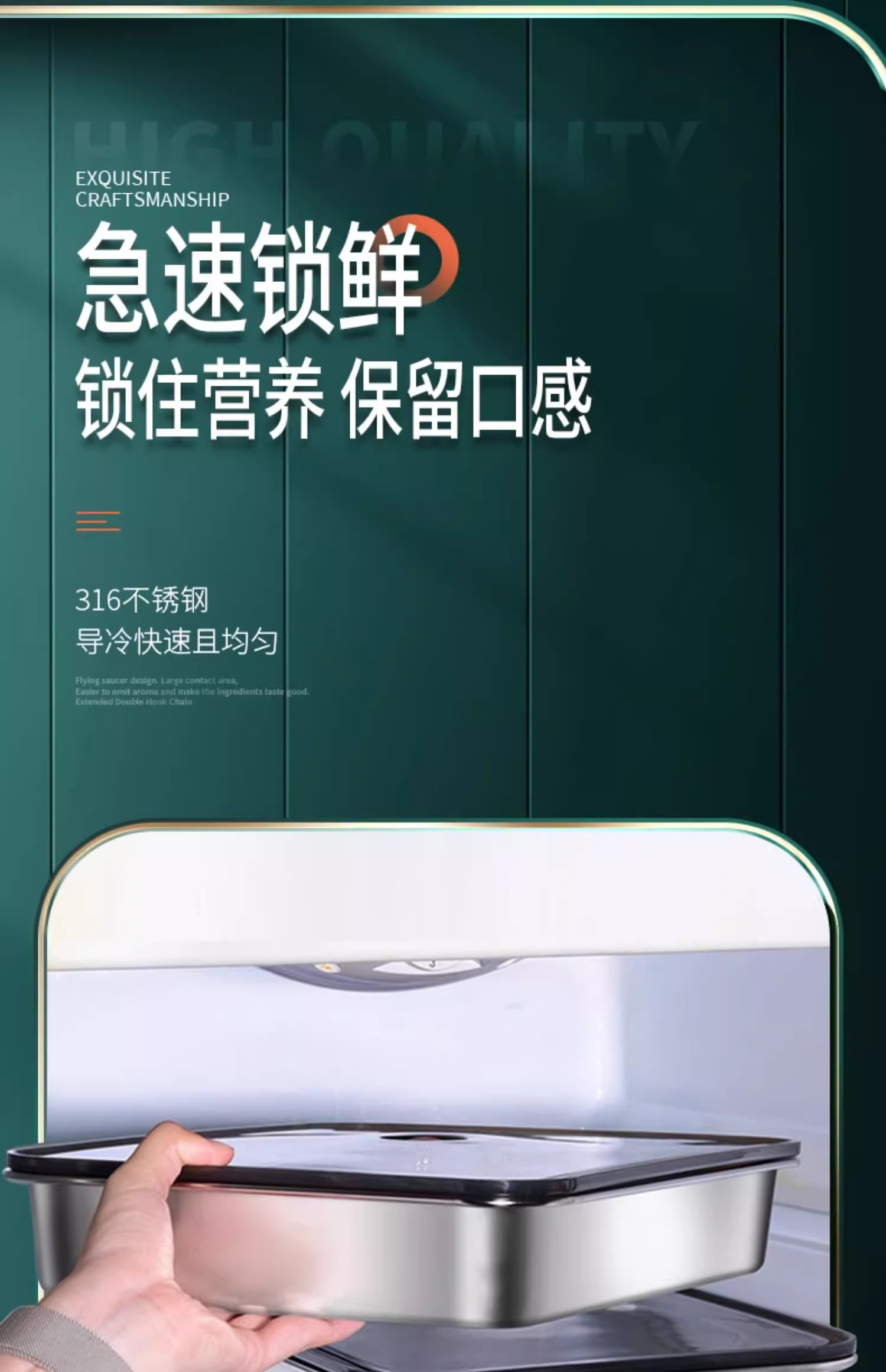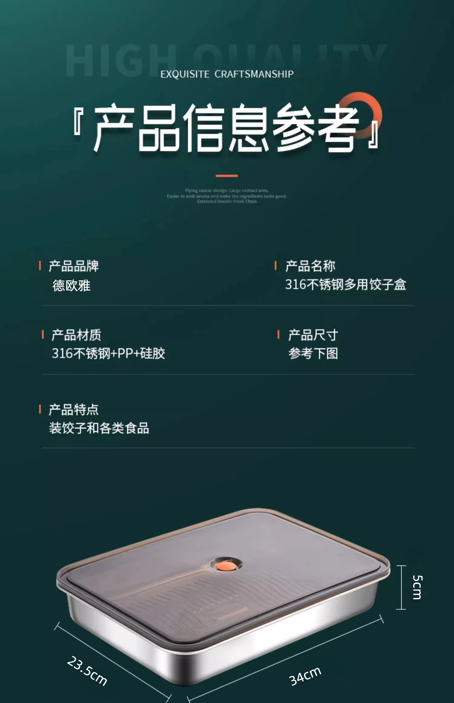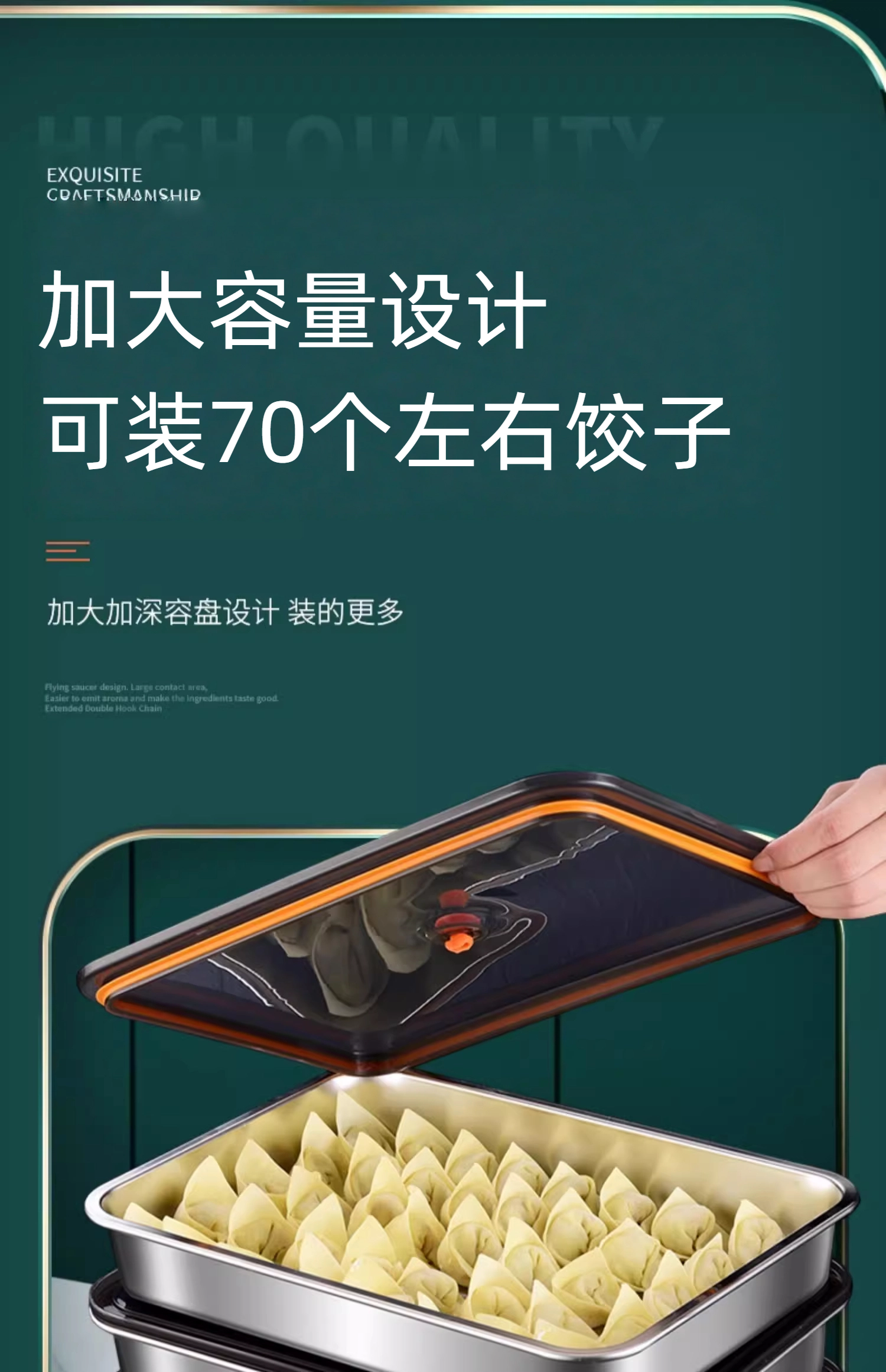 316 Stainless Steel Dumpling Freezing Box Food Grade Wonton Dumpling Quick Freezing Box Refrigerator Special Fresh-Keeping Storage Box