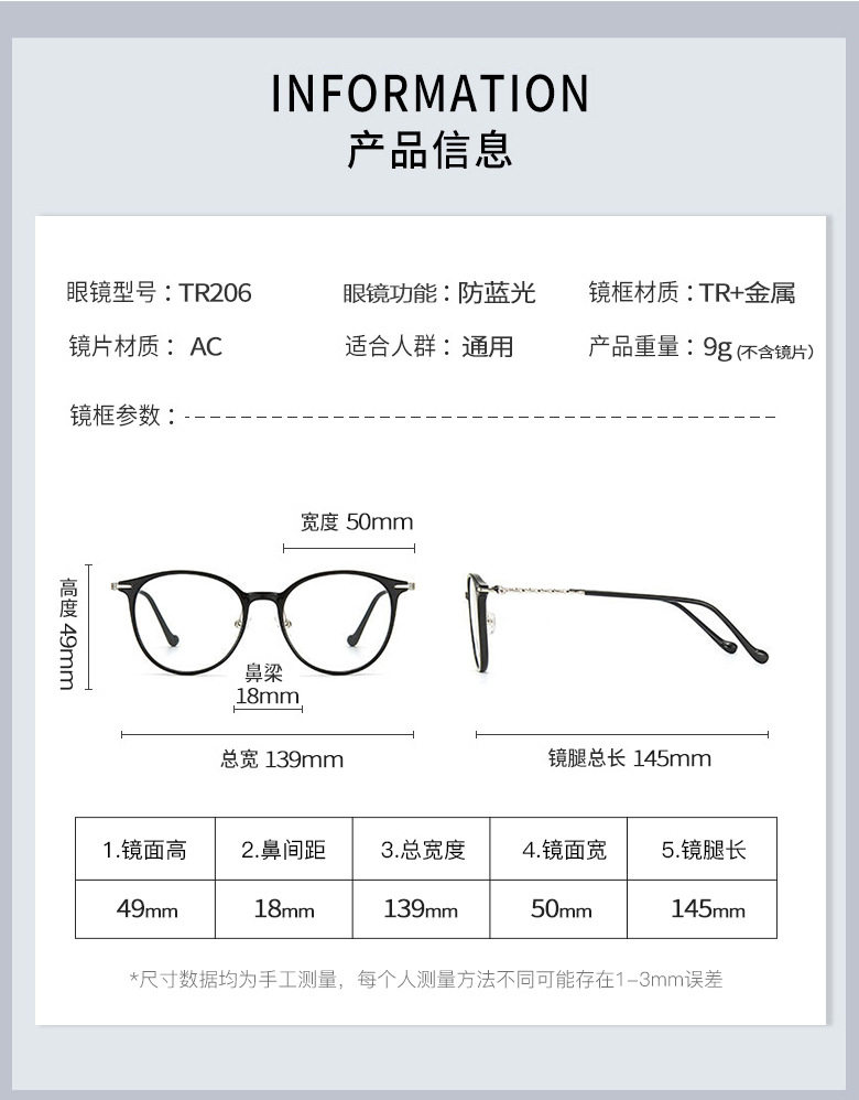 | Frame color | Bright black frame,Transparent tea frame,Tortoiseshell frame,Wine red frame,Transparent gray frame,Gradient green frame |