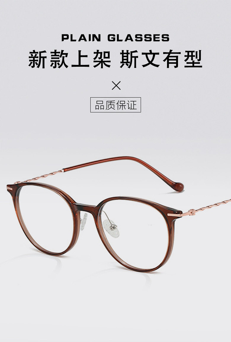 206 New Tr90 Retro Round Frame Glasses for Women with Myopia Can Be Equipped with Plain Whitening Cold Brown Glasses Frames