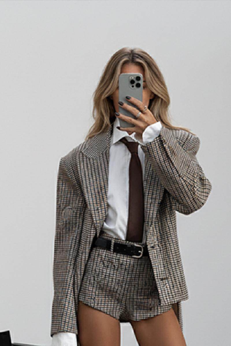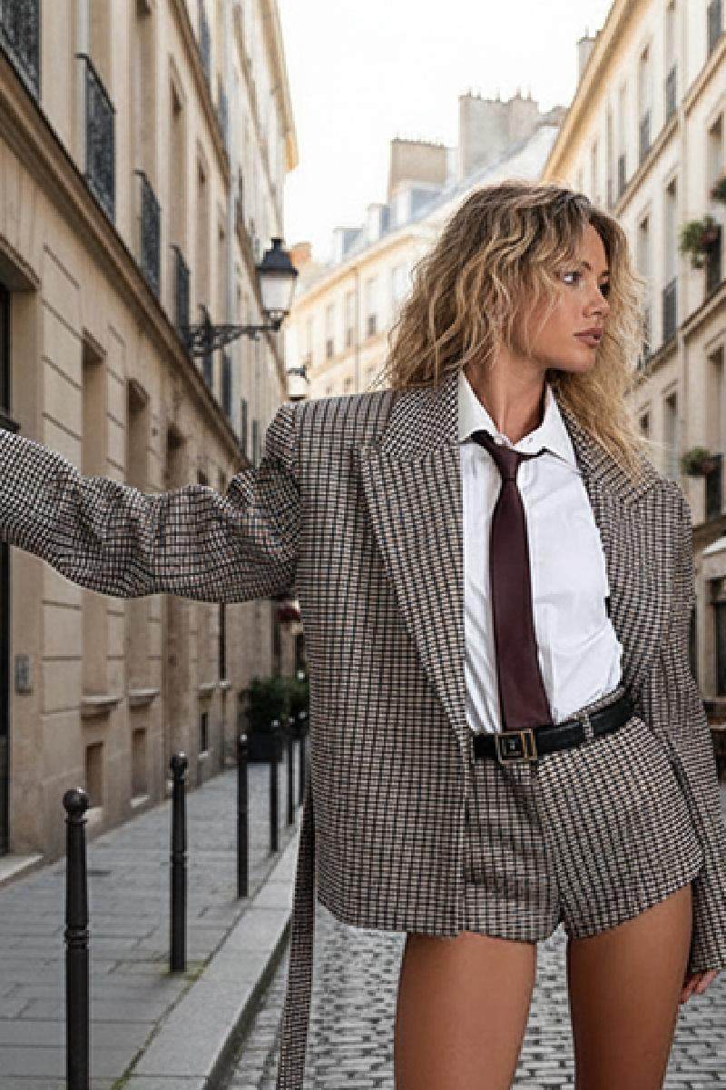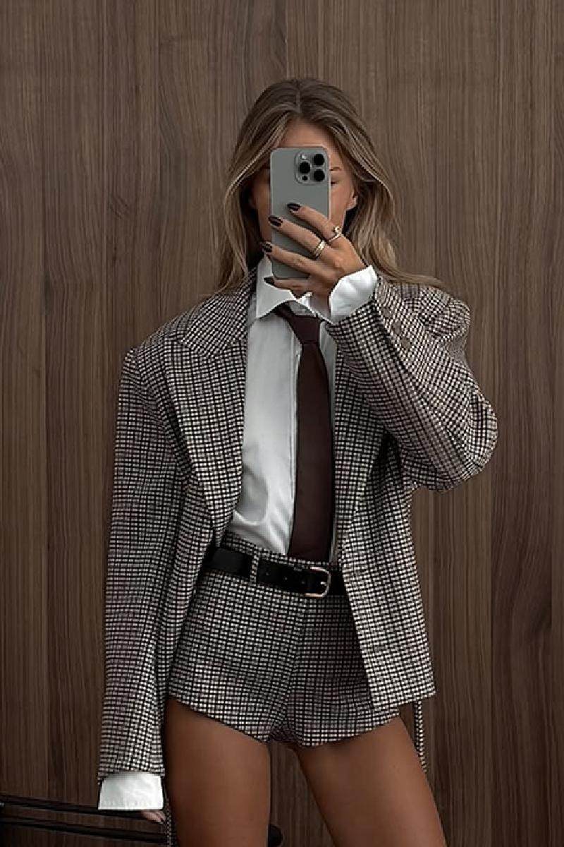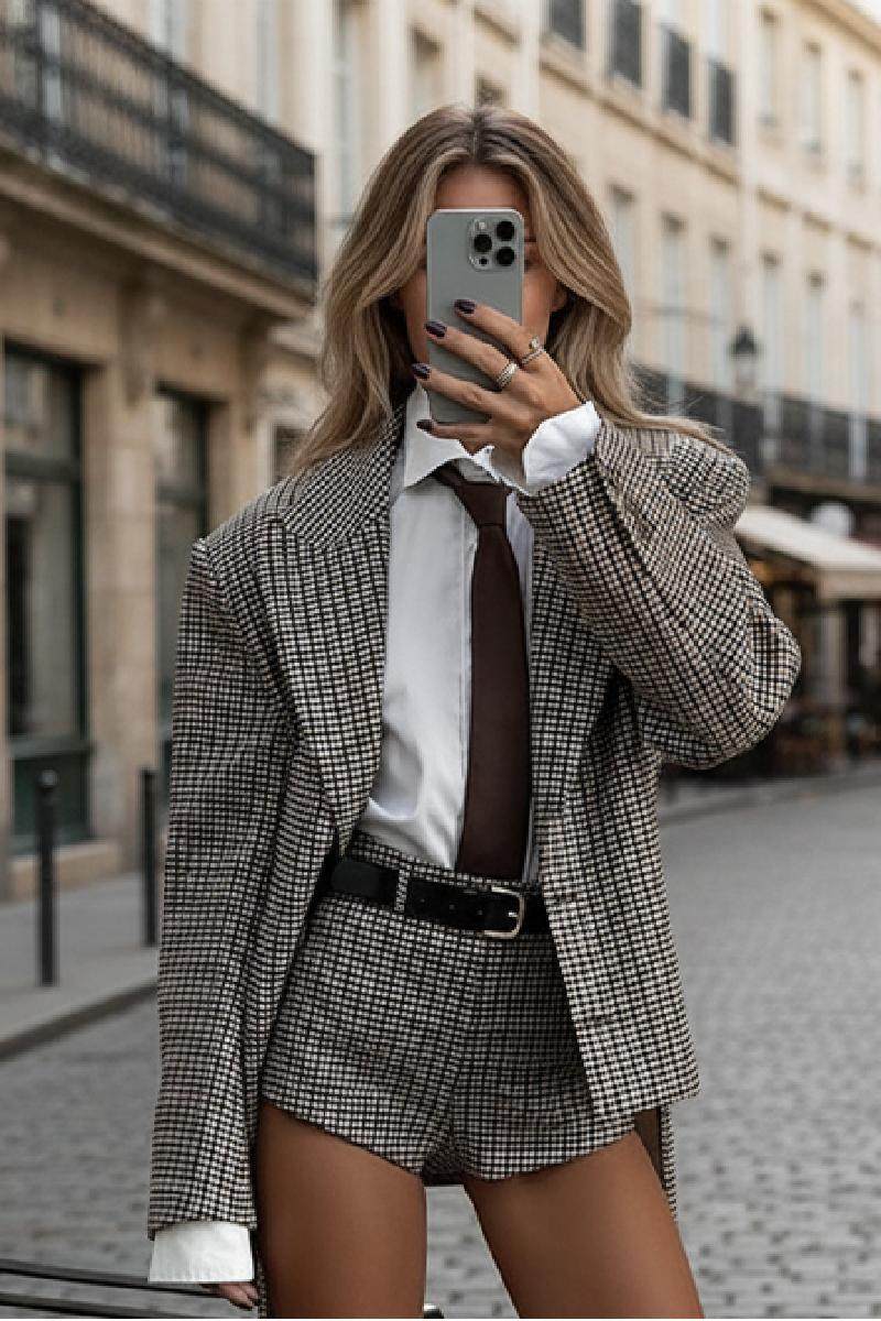 European and American Cross-Border 2025 Autumn and Winter Fashionable Slimming Plaid Suit Shorts Two-Piece Suit