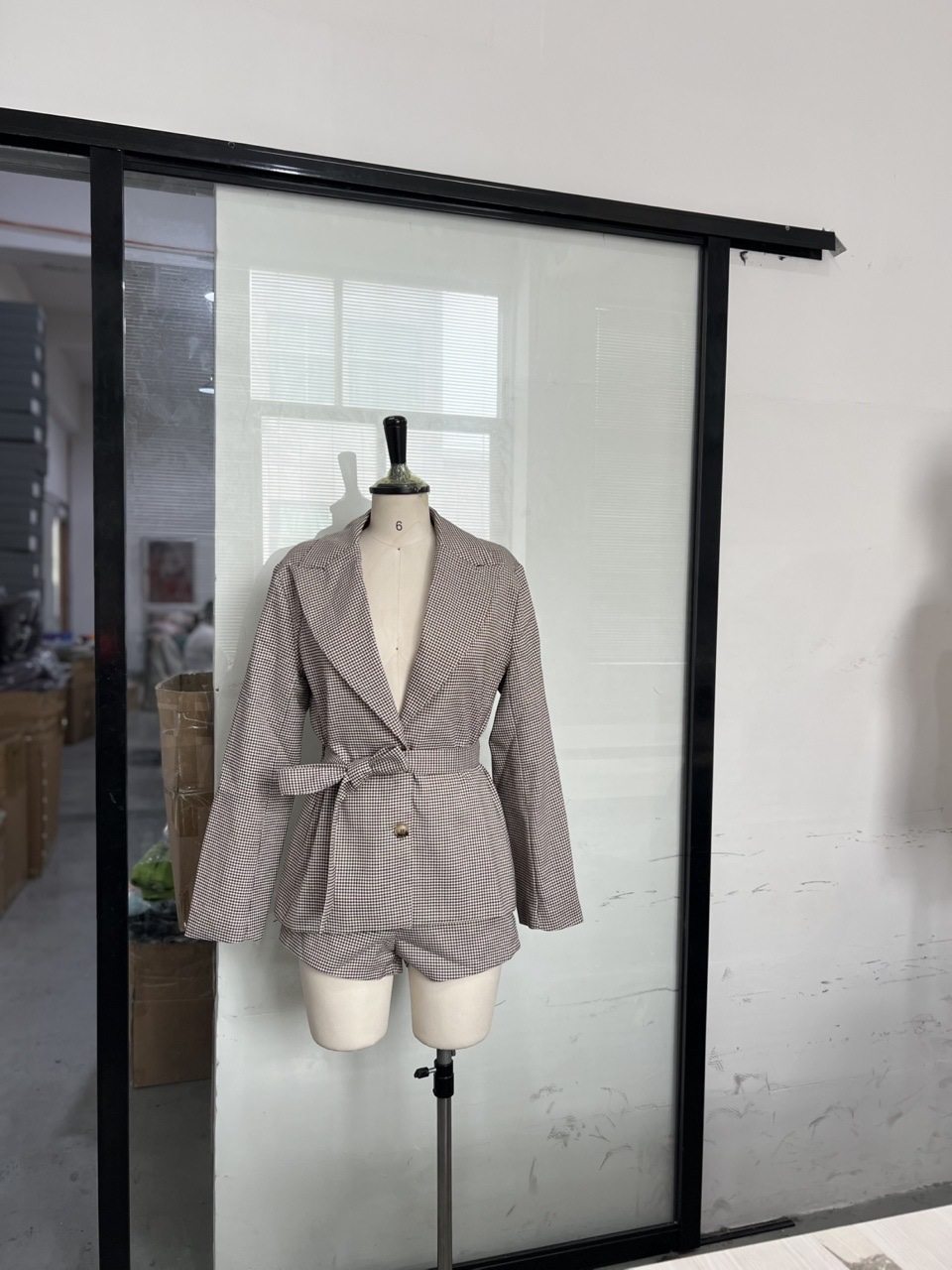 | Color | Houndstooth suit shorts two-piece set - plaid suit |