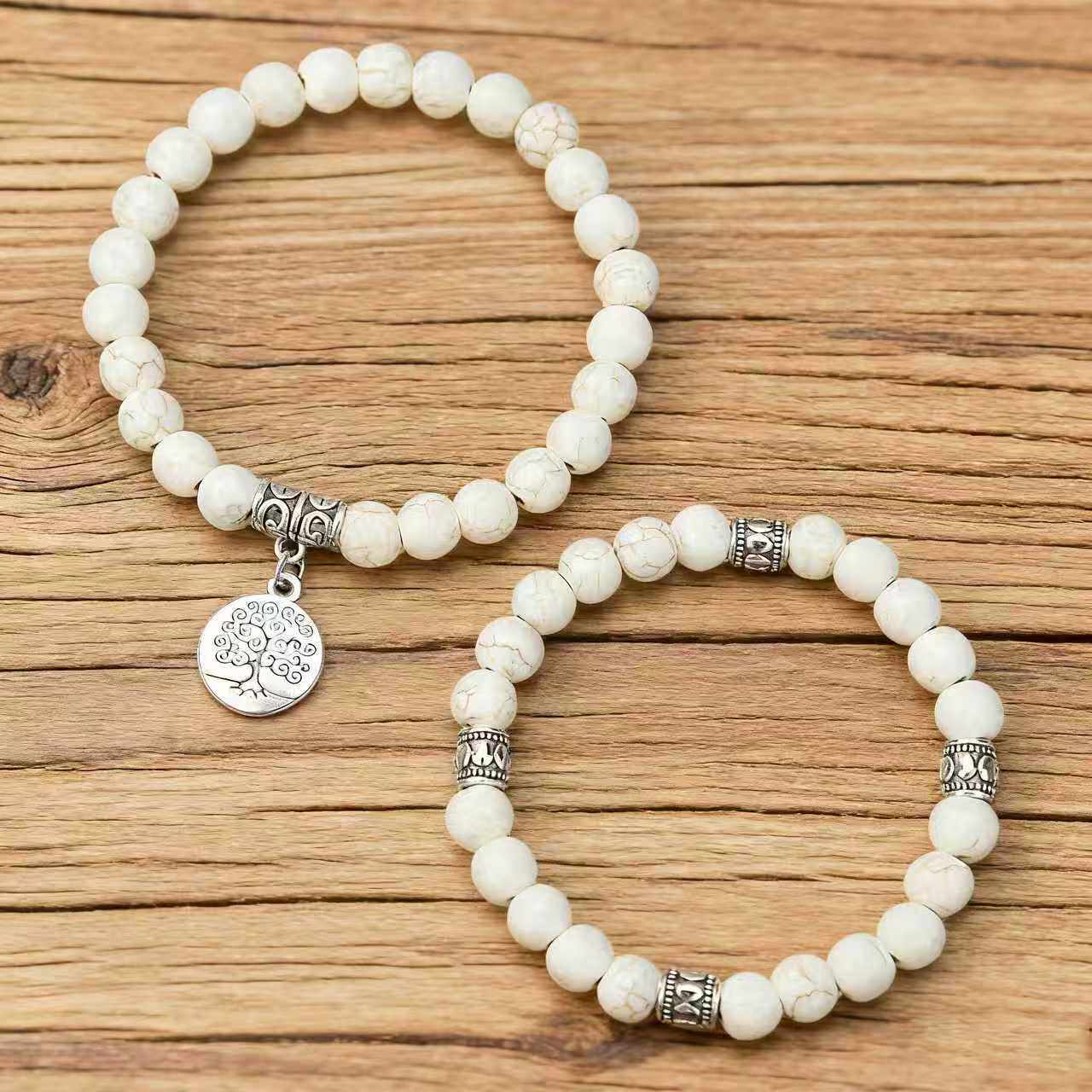 Cross-Border New Product Bohemian Style Tree of Life Zinc Alloy Multi-Layer Elastic Thread Beaded DIY 2-Piece Couple Bracelet
