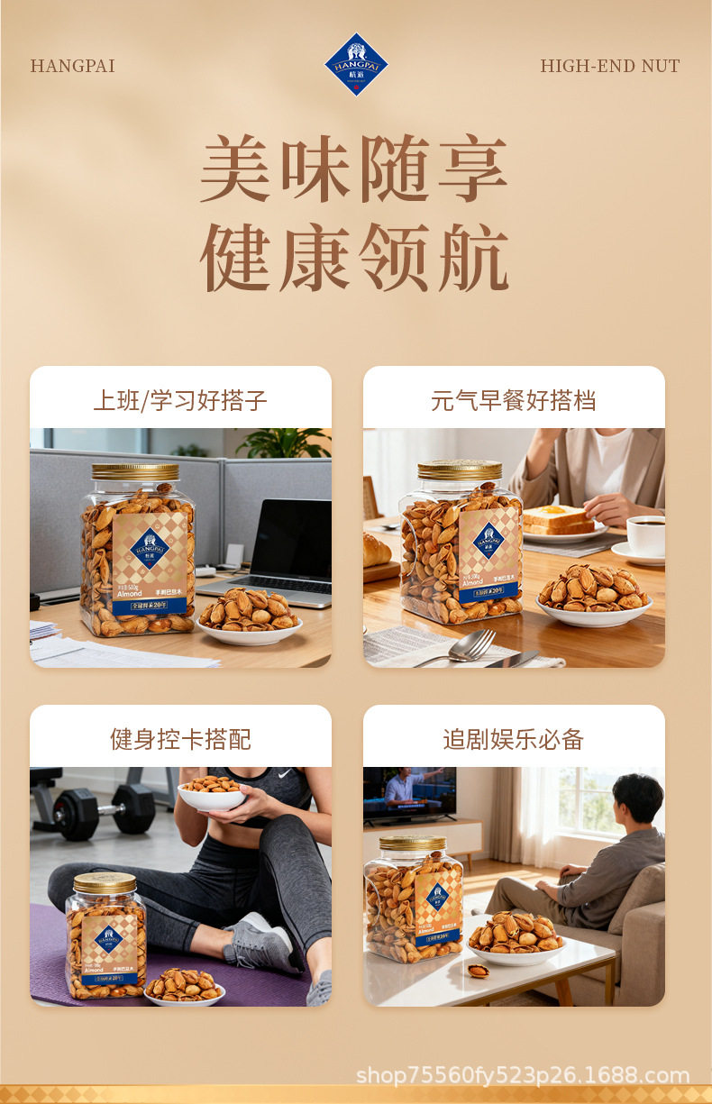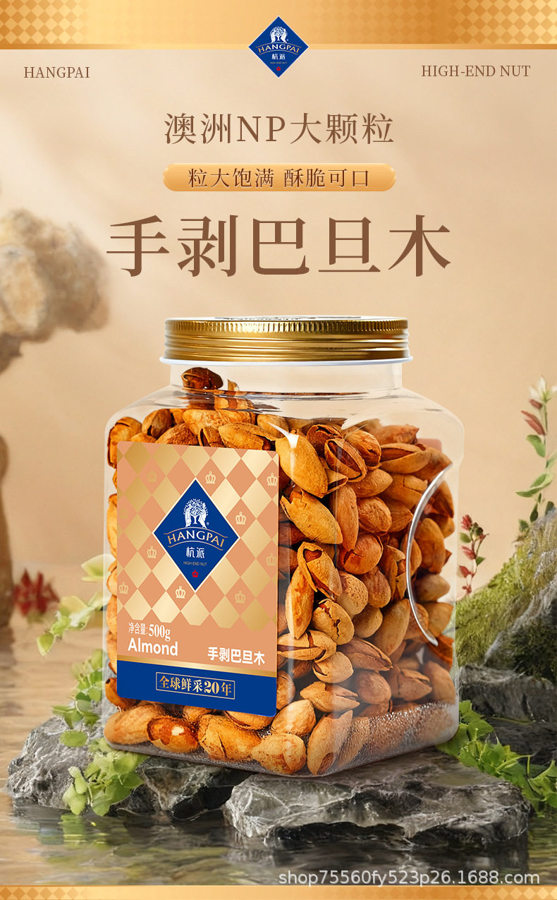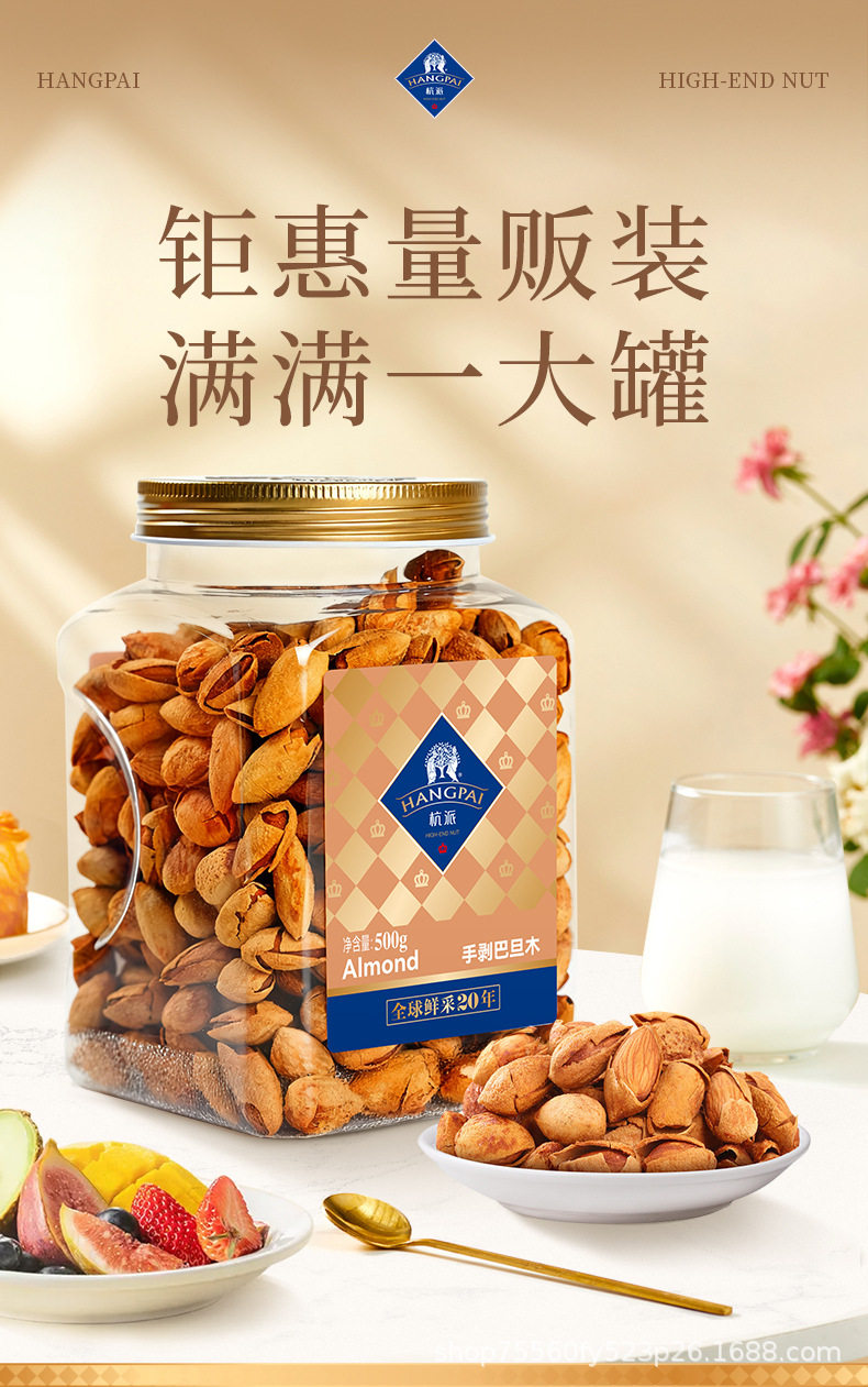 Hangzhou Hand-Peeled Almonds Np-Grade Nuts 500g Canned Thin-Shell Large Almonds 2025 New Snacks