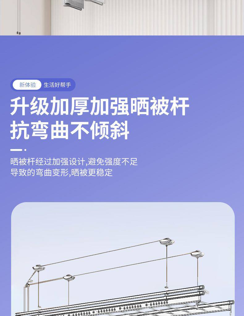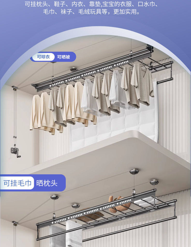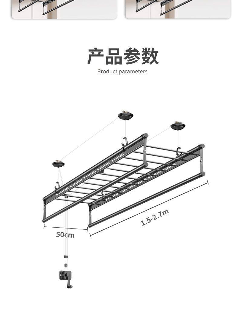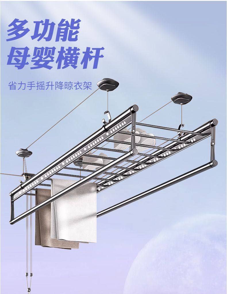 Adjustable Clothes Drying Rack for Balcony, Manual Double-Rod Clothes Drying Rod, Indoor Household Automatic Folding Quilt Drying Rack, Manual Clothes Hanger