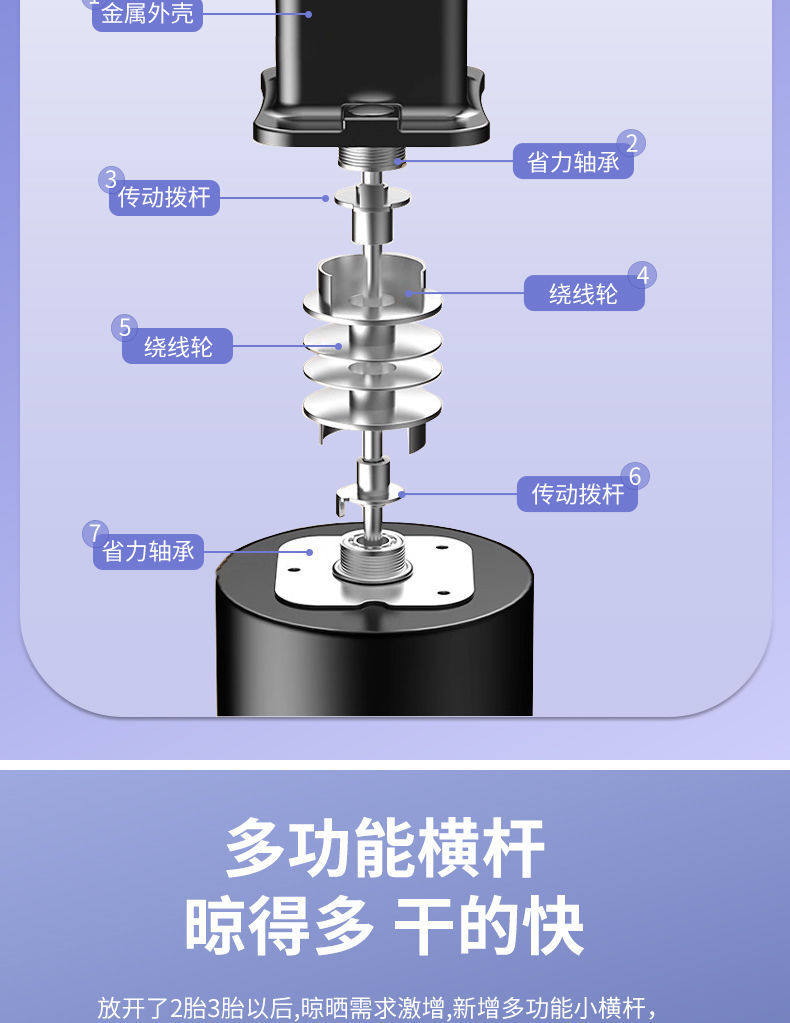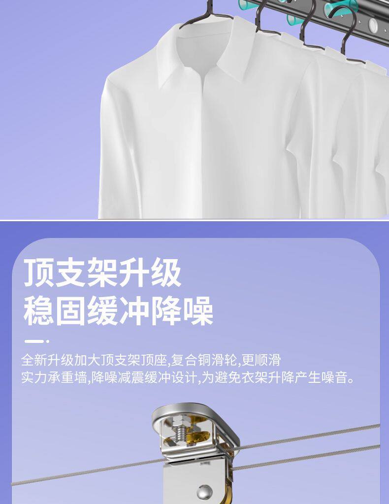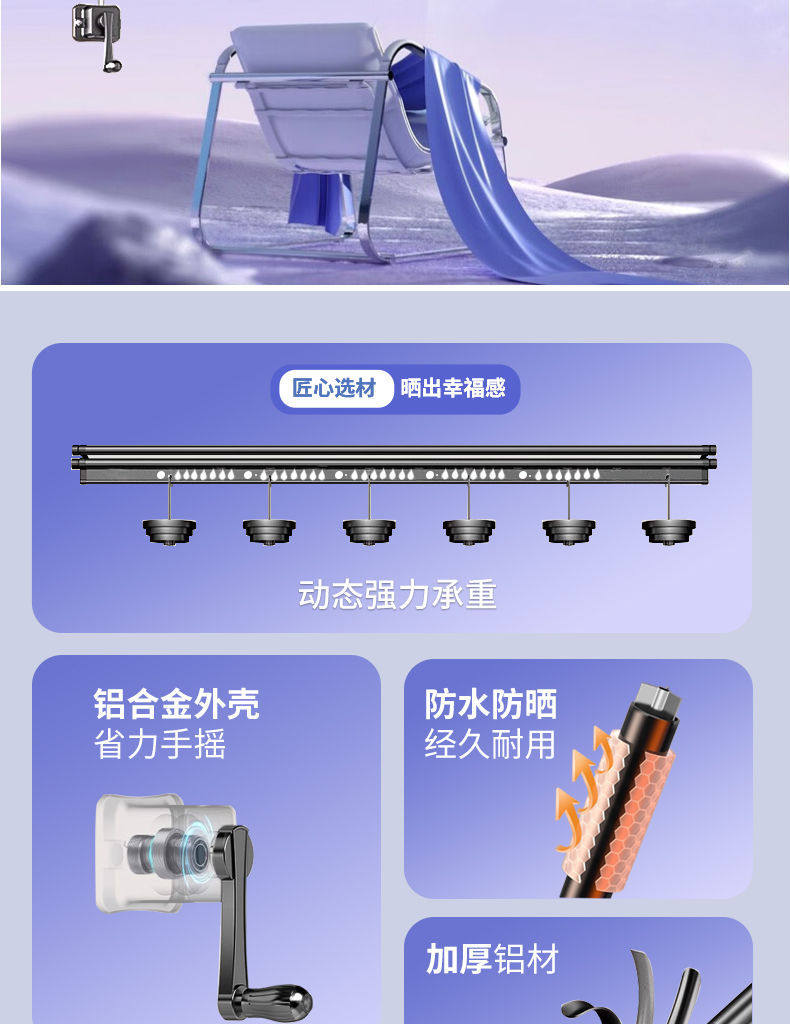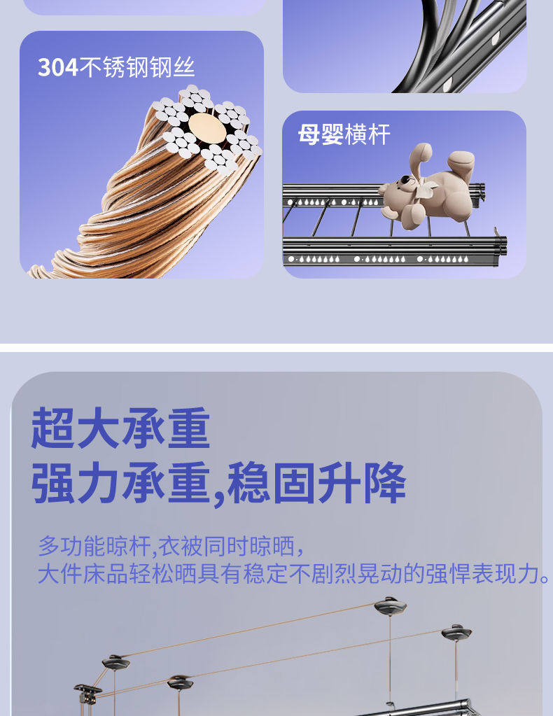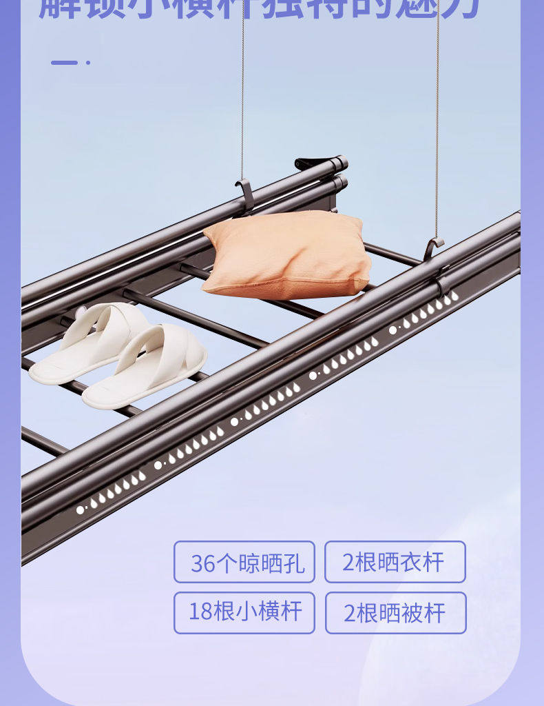 Adjustable Clothes Drying Rack for Balcony, Manual Double-Rod Clothes Drying Rod, Indoor Household Automatic Folding Quilt Drying Rack, Manual Clothes Hanger