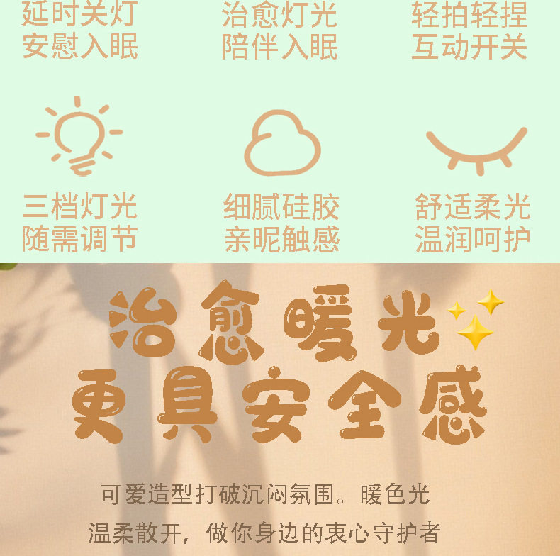 | Additional features | Desk lamp,Pat the lamp,Colorful,Timing,Night light,Sensor light,Glow and change color,Rechargeable,Ambient light,Brightness adjustment |