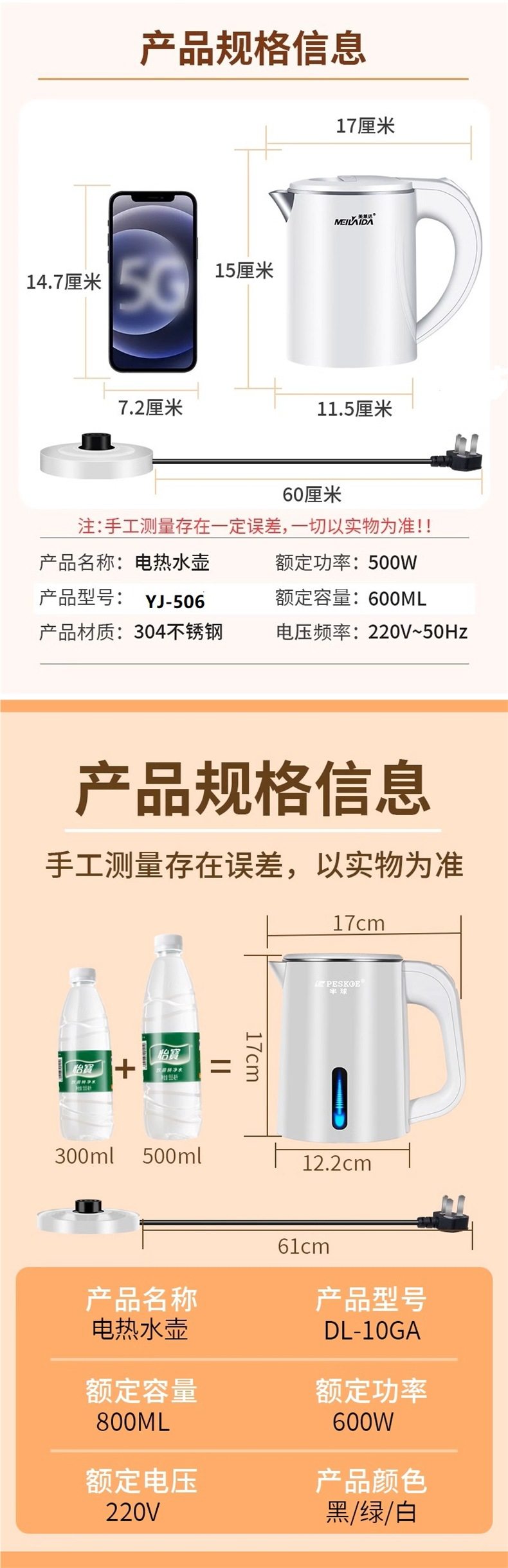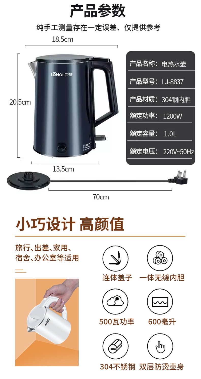 | Color | Hemisphere 0.8l black 600w304 steel split lid,[white] 0.6l 500w304 stainless steel seamless liner,[pink] 0.6l 500w304 stainless steel seamless liner,Hemisphere 0.8l white 600w304 steel split lid,Hemisphere 0.8l black thermal insulation 600w thermal insulation model 304 steel split lid,Hemisphere 0.8l white thermal insulation 600w thermal insulation model 304 steel split lid,0.8l folding kettle 304 steel seamless liner off-white,0.8l folding kettle 316 steel seamless liner off-white,Longji 1 liter 304 steel 1200 watt mysterious blue 304 stainless steel seamless liner,Longji 1 liter 304 steel 1200 watt cirrus white 304 stainless steel seamless liner |