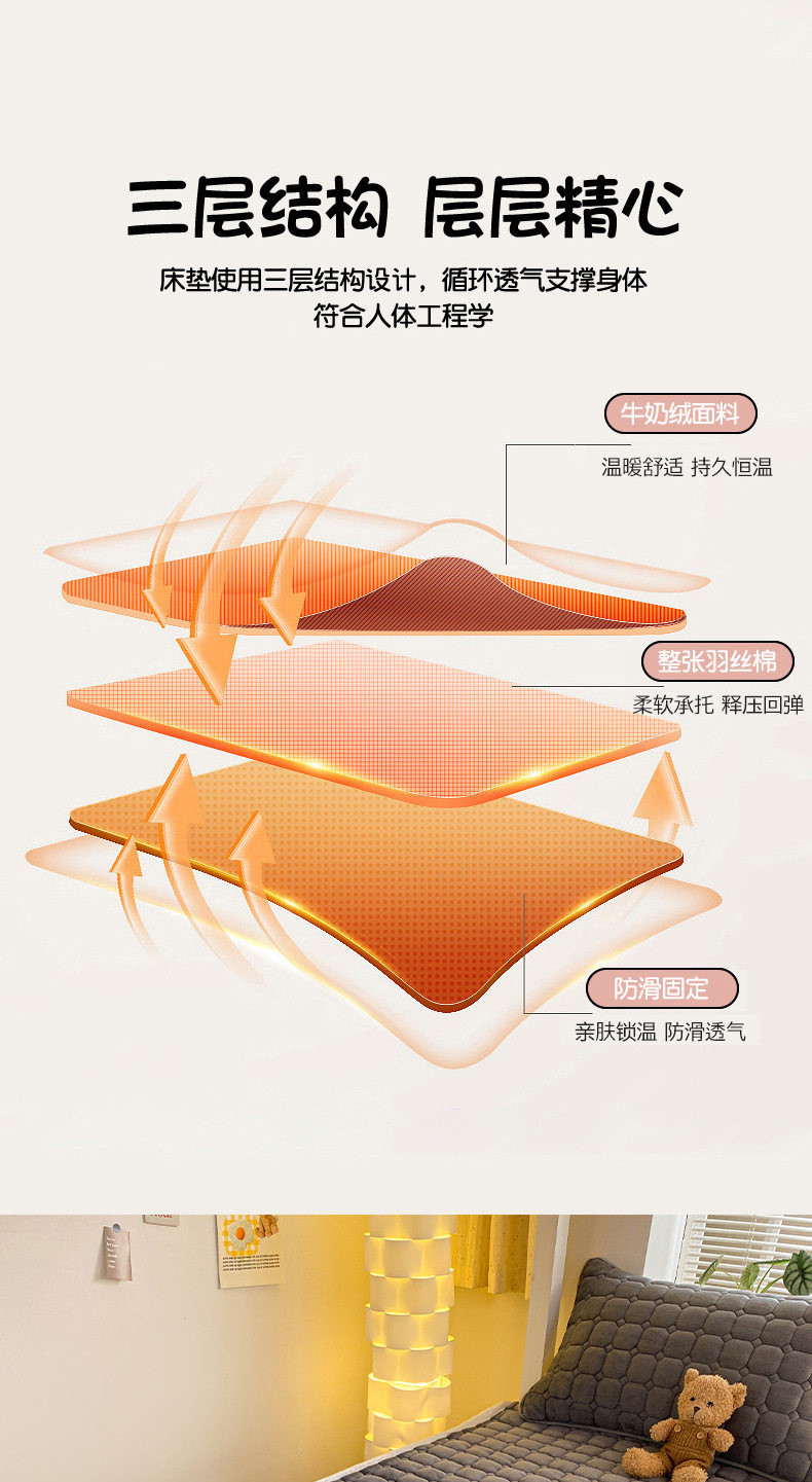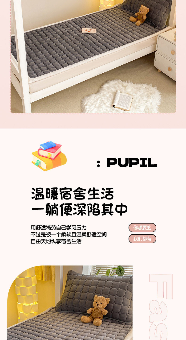 Milk Velvet Mattress, Winter Fleece-Lined Mattress, Household Velvet Blanket, Soft Cushion Mattress, Quilt, Dormitory Student Single Mat