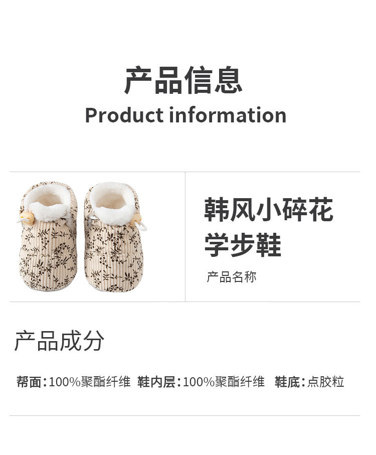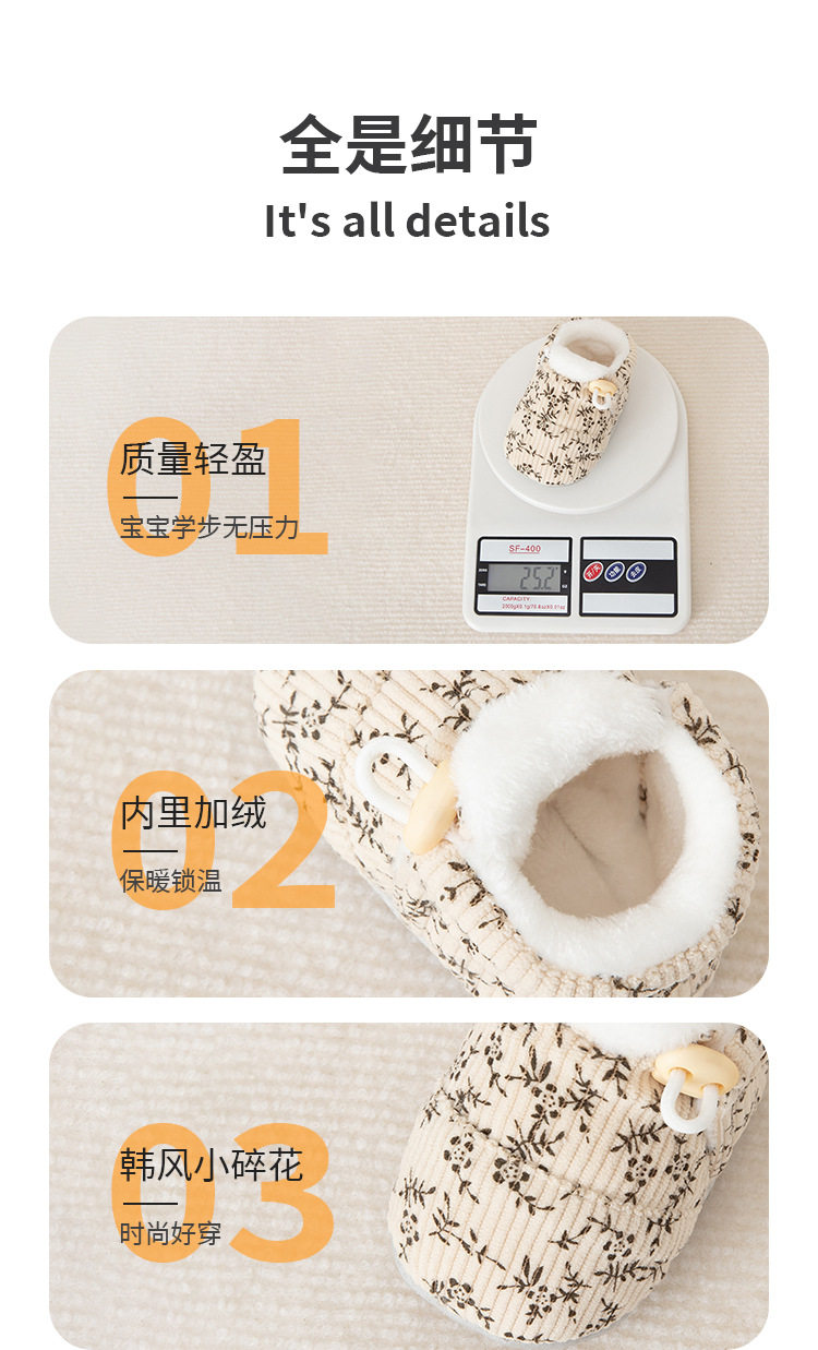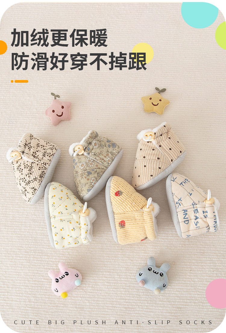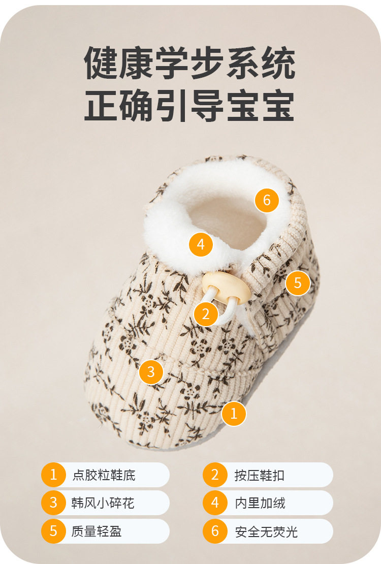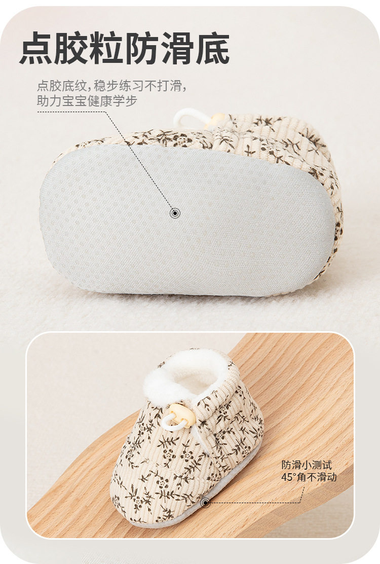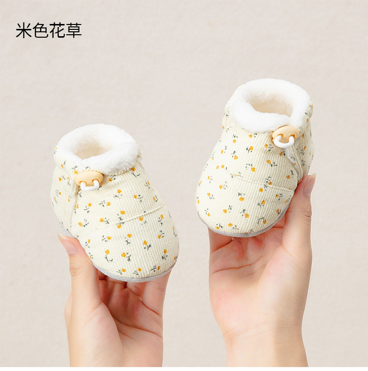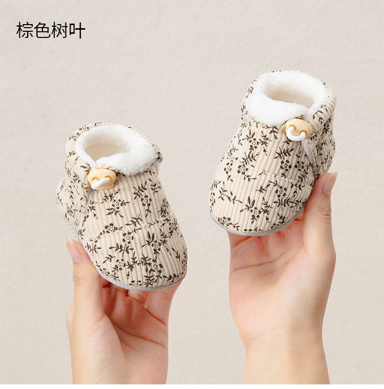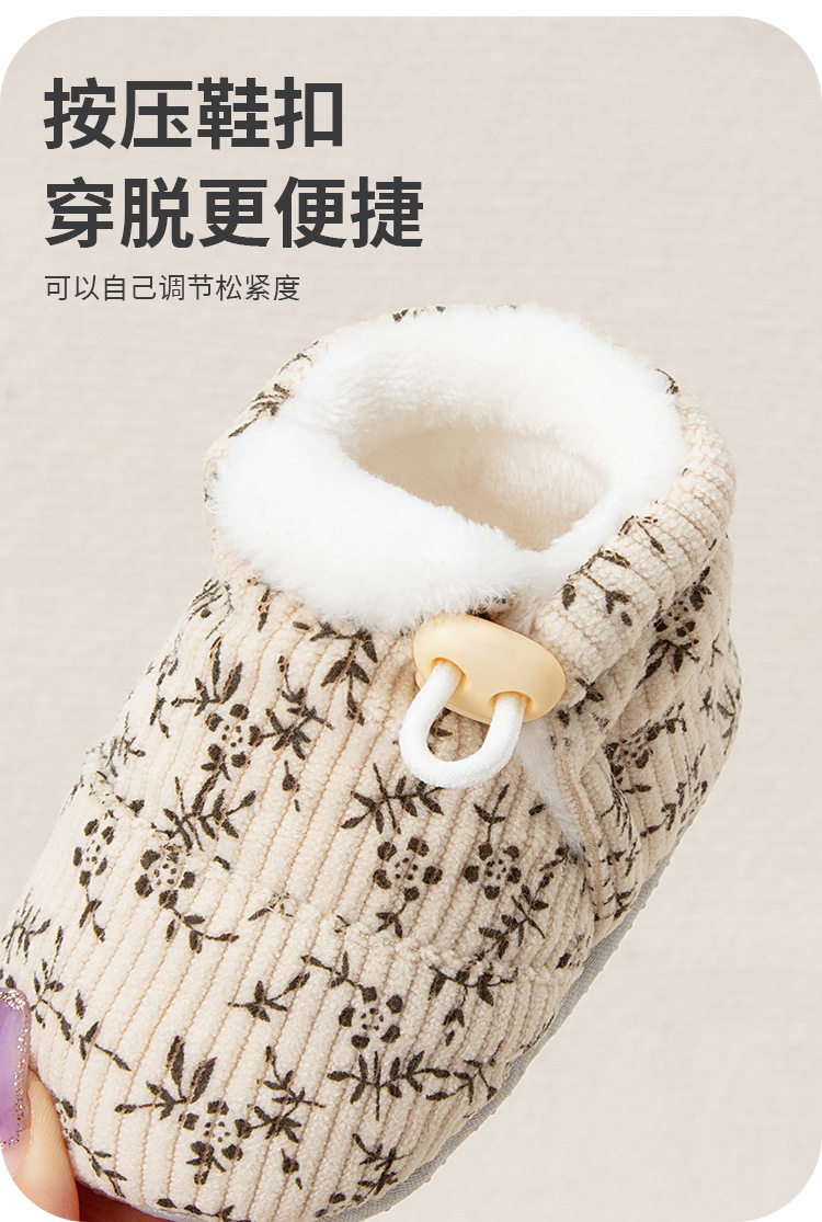 Jingqi Baby Shoes 6 to 12 Months Pre-Step Shoes Autumn and Winter Fleece-Lined Thickeneded Warm Soft-Soled Shoes for Male and Female Babies