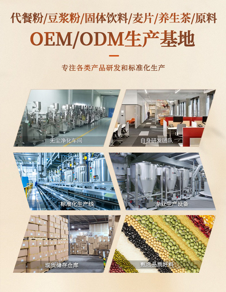 | Raw materials and ingredients | Five white grains instant oatmeal |