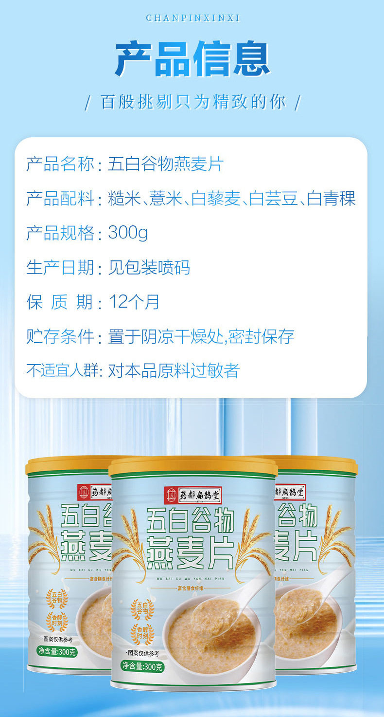 | Item number | Yaodu bianqutang five white grain instant oatmeal 300g |