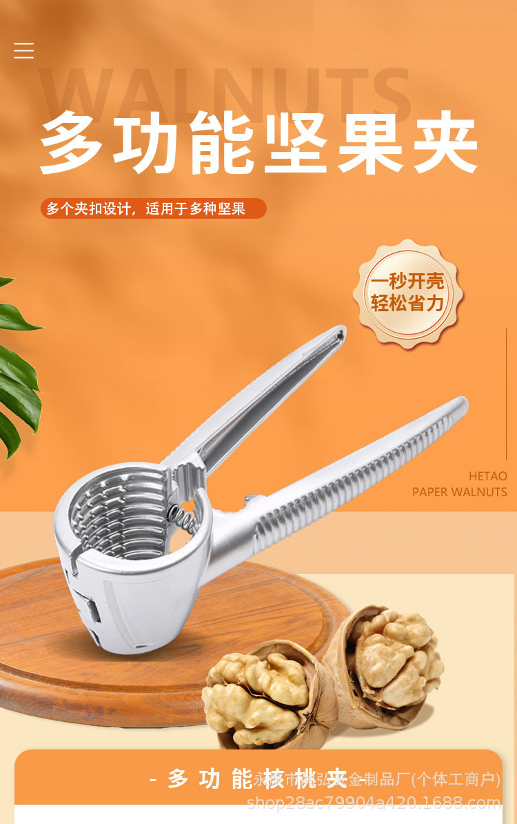 Factory Direct Supply Aluminum Alloy Walnut Clip Sheller Walnut Tool for Peeling Walnuts and Hazelnuts Multifunctional