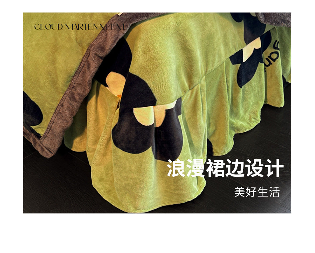 | Flower type | Spotted cow [high weight milk velvet] exquisite bed skirt style,Retro green flower [high weight milk velvet] exquisite bed skirt,Milk coffee bear [high weight milk velvet] exquisite bed skirt style,Wind blue feather [high weight milk velvet] exquisite bed skirt,Pink tulip [high weight milk velvet] exquisite bed skirt,Flower shadow butterfly [high weight milk velvet] exquisite bed skirt,Coffee bottom round flower [high weight milk velvet] exquisite bed skirt style |