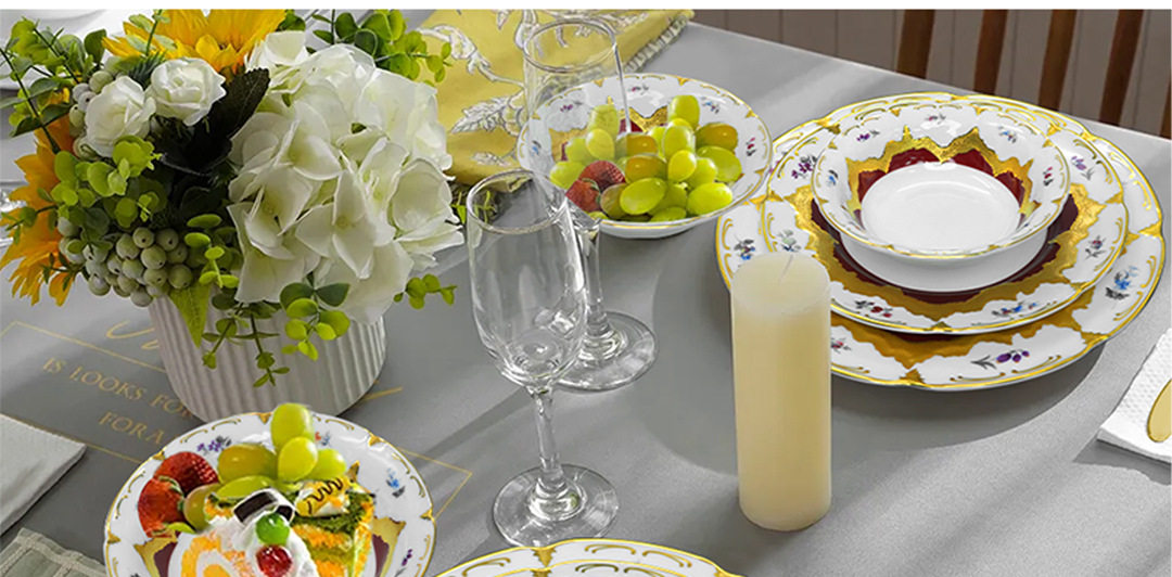 2025 New European Style Dishware Set for Home Use, Light Luxury High-End Bone China Embossed Gold Tableware Set for Housewarming