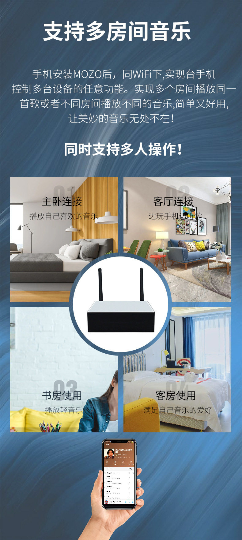 | Receiving method | Wifi, wired network, bluetooth, aux |