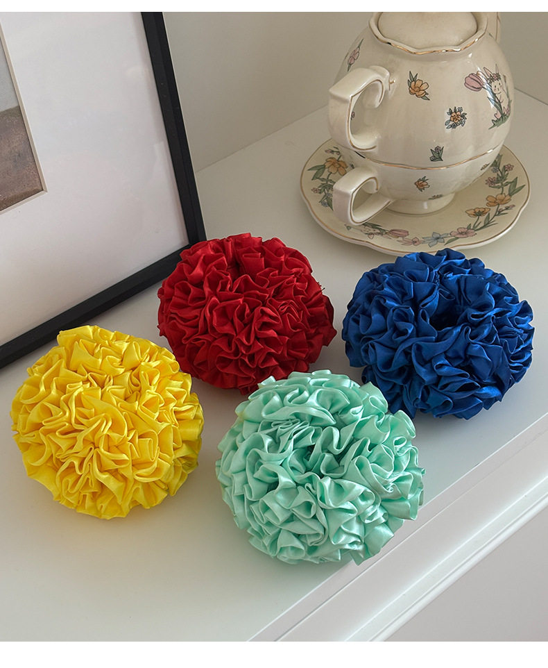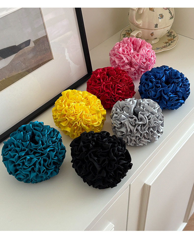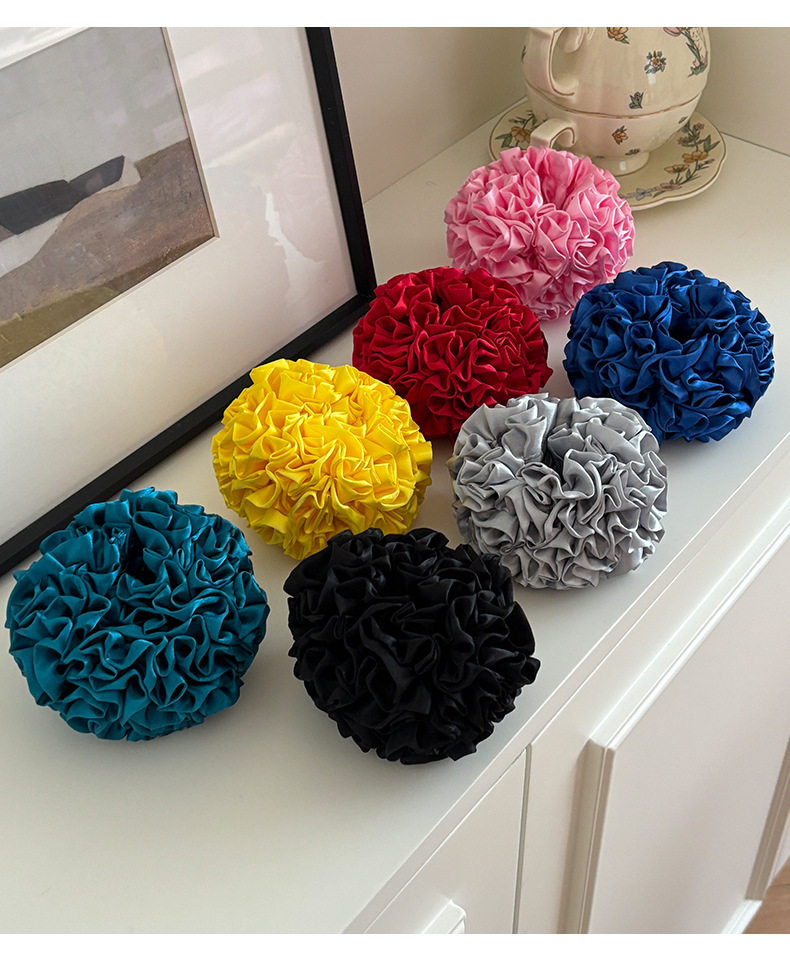 Mona's Same Style Head Flower Hydrangea Red Hair Tie Elegant Satin Intestine Ring Pleated Lace Hair Accessories Bun Headdress