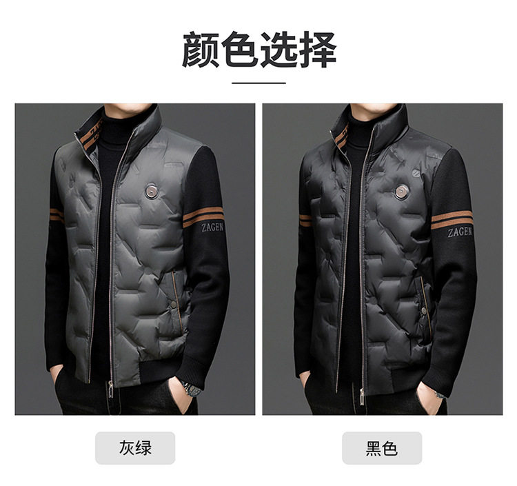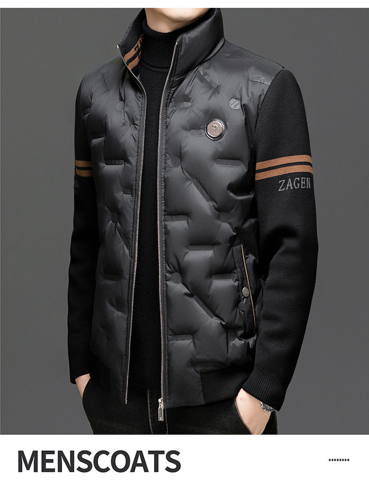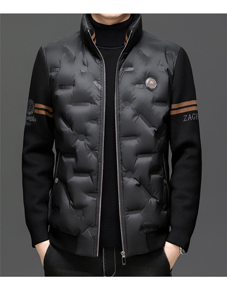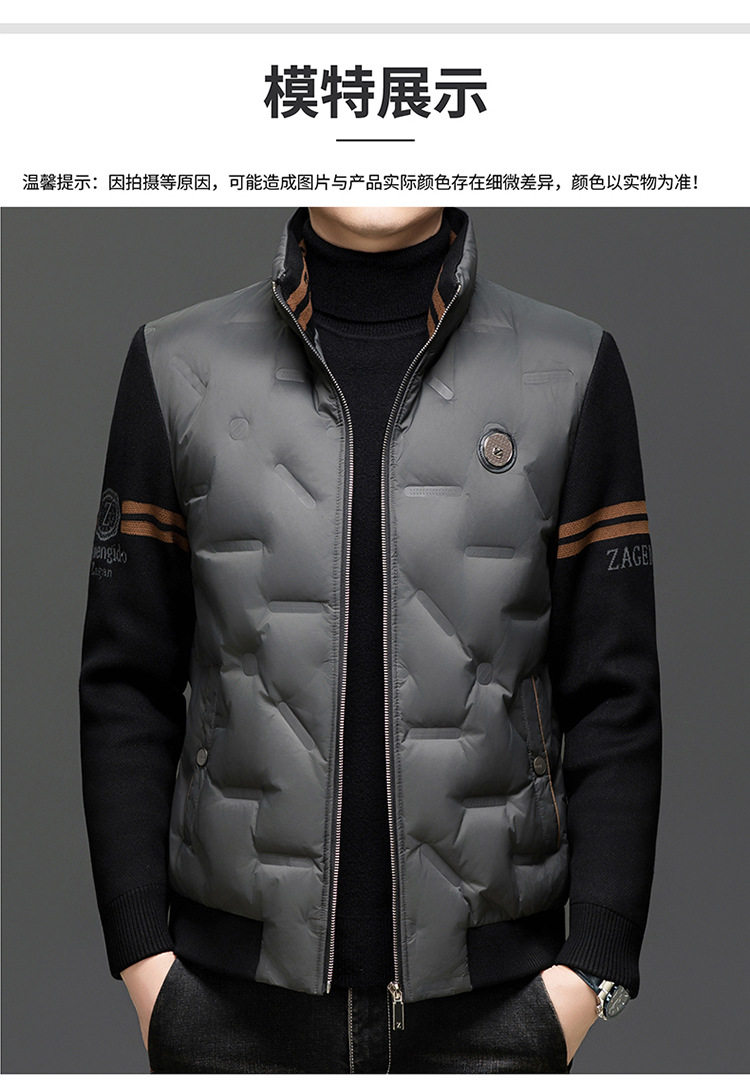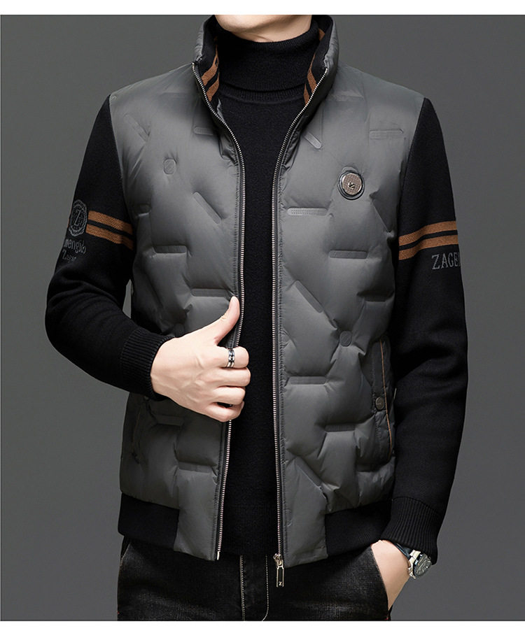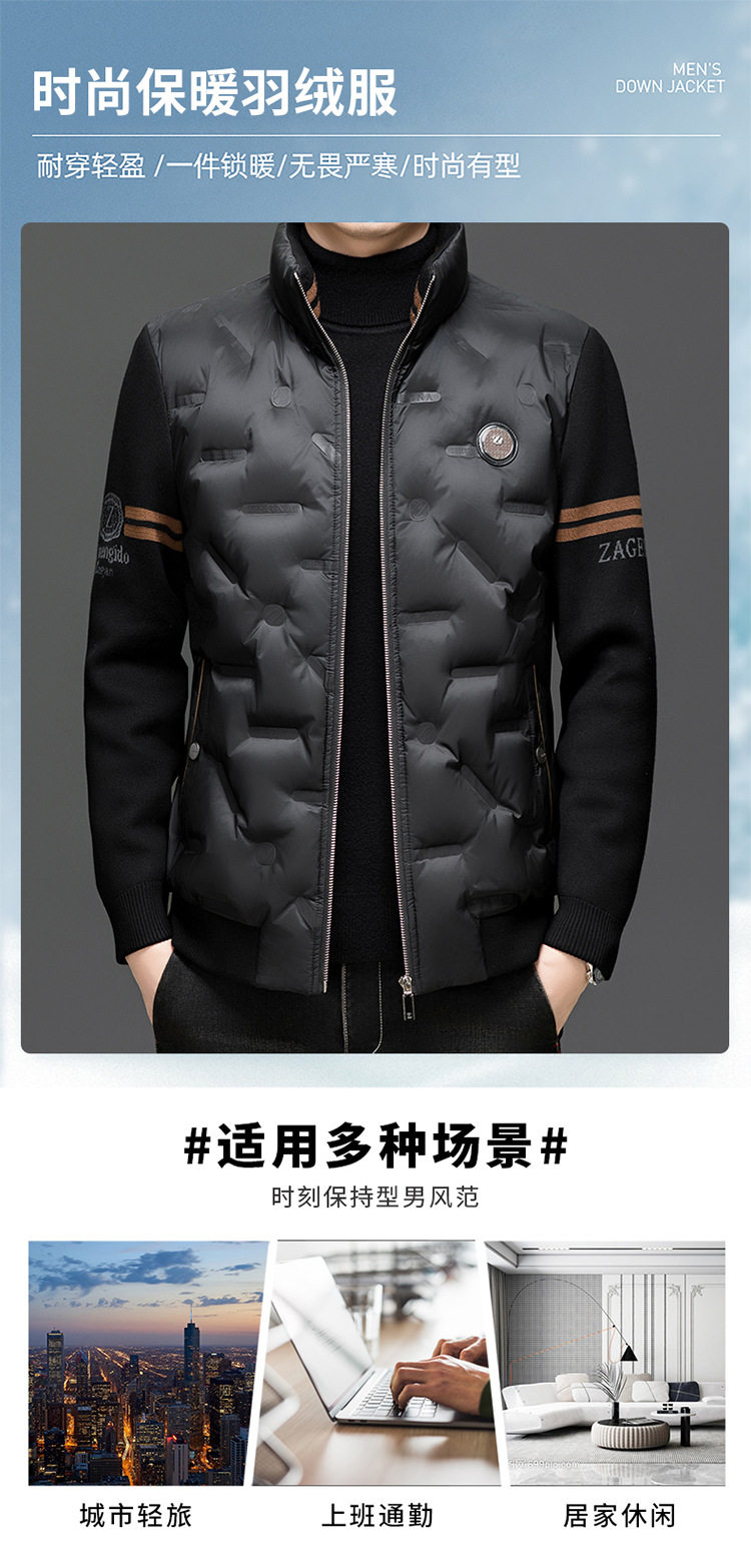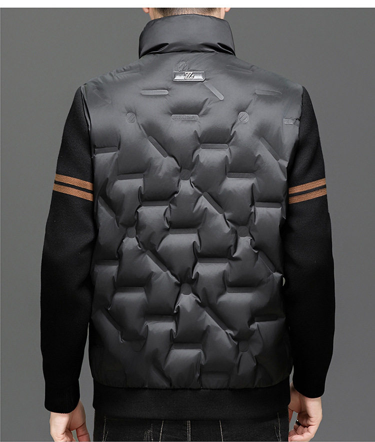 Men's New Stand Collar Casual Business Fashion Simple Knitted Thread Removable Sleeve down Jacket Jacket