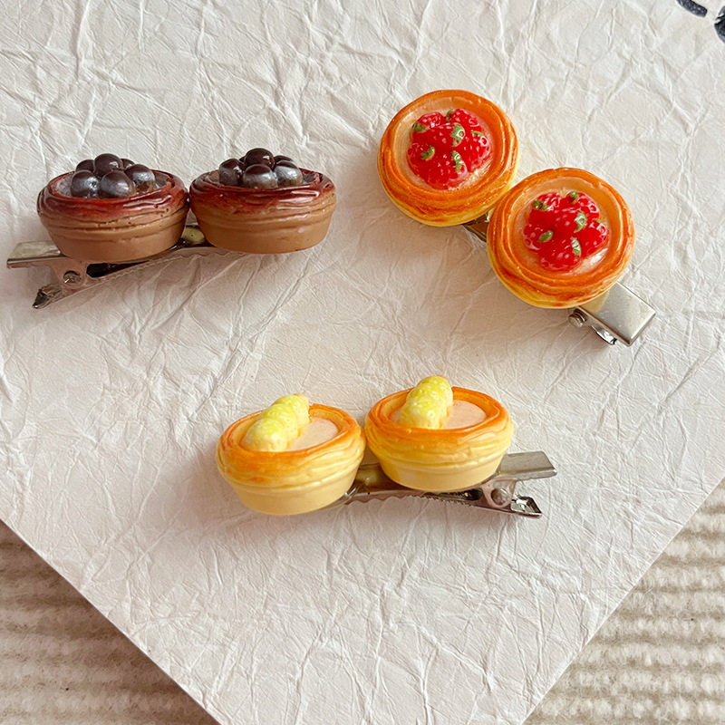Creative and Interesting Simulated Egg Tart Hairpin, Cute Girl Dessert Cake Hair Accessory, Food Side Clip, Popular Personalized Hairpin
