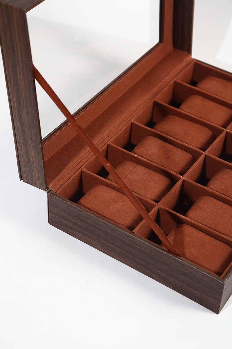 Light Bundle Wood Grain Watch Leather Box 12-Position Window Mechanical Watch Gift Box Leather Jewelry Box Bracelet Bracelet Box