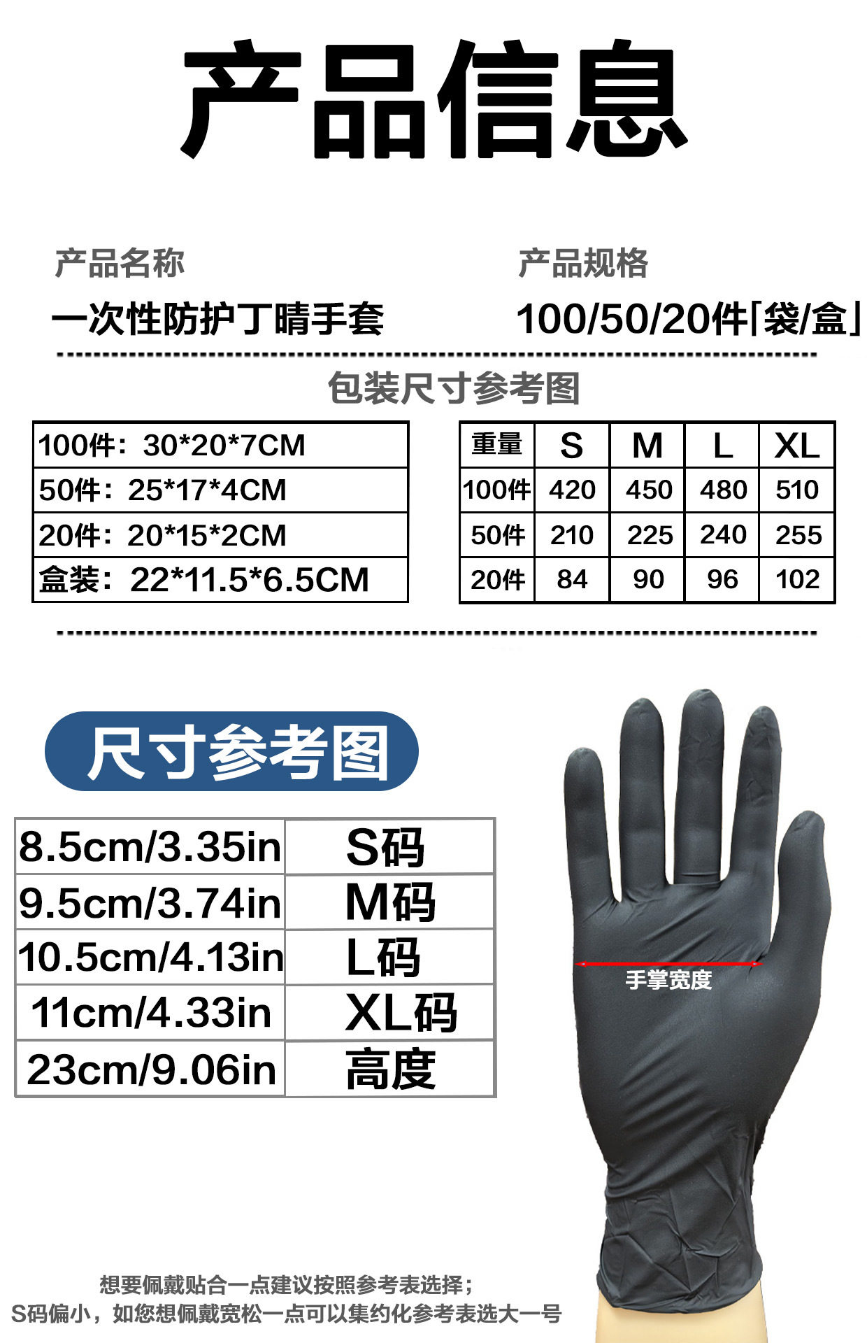 | Specifications and models | Chinese blue composite nitrile thickened version-s,Chinese blue composite nitrile thickened version-m,Chinese blue composite nitrile thickened version-l,Chinese blue composite nitrile thickened version-xl,English black composite nitrile thickened version-s,English black composite nitrile thickened version-m,English black composite nitrile thickened version-l,English black composite nitrile thickened version-xl,Chinese blue pure nitrile comfortable and durable model-s,Chinese blue pure nitrile comfortable and durable model-m,Chinese blue pure nitrile comfortable and durable model-l,Chinese blue pure nitrile comfortable and durable model-xl,English black pure nitrile comfortable and durable model-s,English black pure nitrile comfortable and durable model-m,English black pure nitrile comfortable and durable model-l,English black pure nitrile comfortable and durable model-xl,Chinese ice blue pure nitrile standard model-s,Chinese ice blue pure nitrile standard style-m,Chinese ice blue pure nitrile standard style-l,Chinese ice blue pure nitrile standard style-xl,Chinese cobalt blue pure nitrile comfortable and durable model-s,Chinese cobalt blue pure nitrile comfortable and durable model-m,Chinese cobalt blue pure nitrile comfortable and durable model-l,Chinese cobalt blue pure nitrile comfortable and durable model-xl,Chinese cobalt blue pure nitrile thickened version-s,Chinese cobalt blue pure nitrile thickened version-m,Chinese cobalt blue pure nitrile thickened version-l,Chinese cobalt blue pure nitrile thickened version-xl,Chinese blue pure nitrile thickened version-s,Chinese blue pure nitrile thickened version-m,Chinese blue pure nitrile thickened version-l,Chinese blue pure nitrile thickened version-xl,Chinese black pure nitrile thickened version-s,Chinese black pure nitrile thickened version-m,Chinese black pure nitrile thickened version-l,Chinese black pure nitrile thickened version-xl,Chinese white pure nitrile thickened version-s,Chinese white pure nitrile thickened version-m,Chinese white pure nitrile thickened version-l,Chinese white pure nitrile thickened version-xl,Chinese blue pure nitrile extra thick-s,Chinese blue pure nitrile extra thick section-m,Chinese blue pure nitrile extra thick type-l,Chinese blue pure nitrile extra thick section-xl,Chinese black pure nitrile extra thick-s,Chinese black pure nitrile extra thick section-m,Chinese black pure nitrile extra thick section-l,Chinese black pure nitrile extra thick-xl |