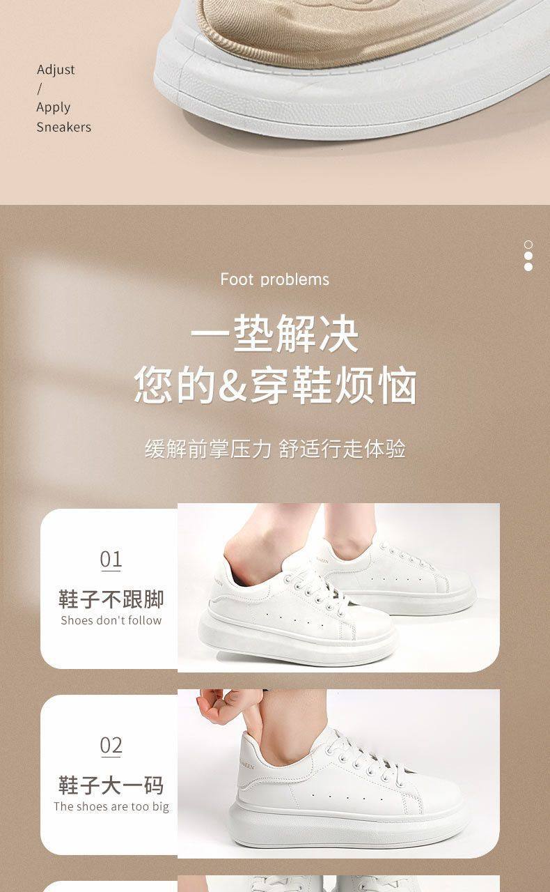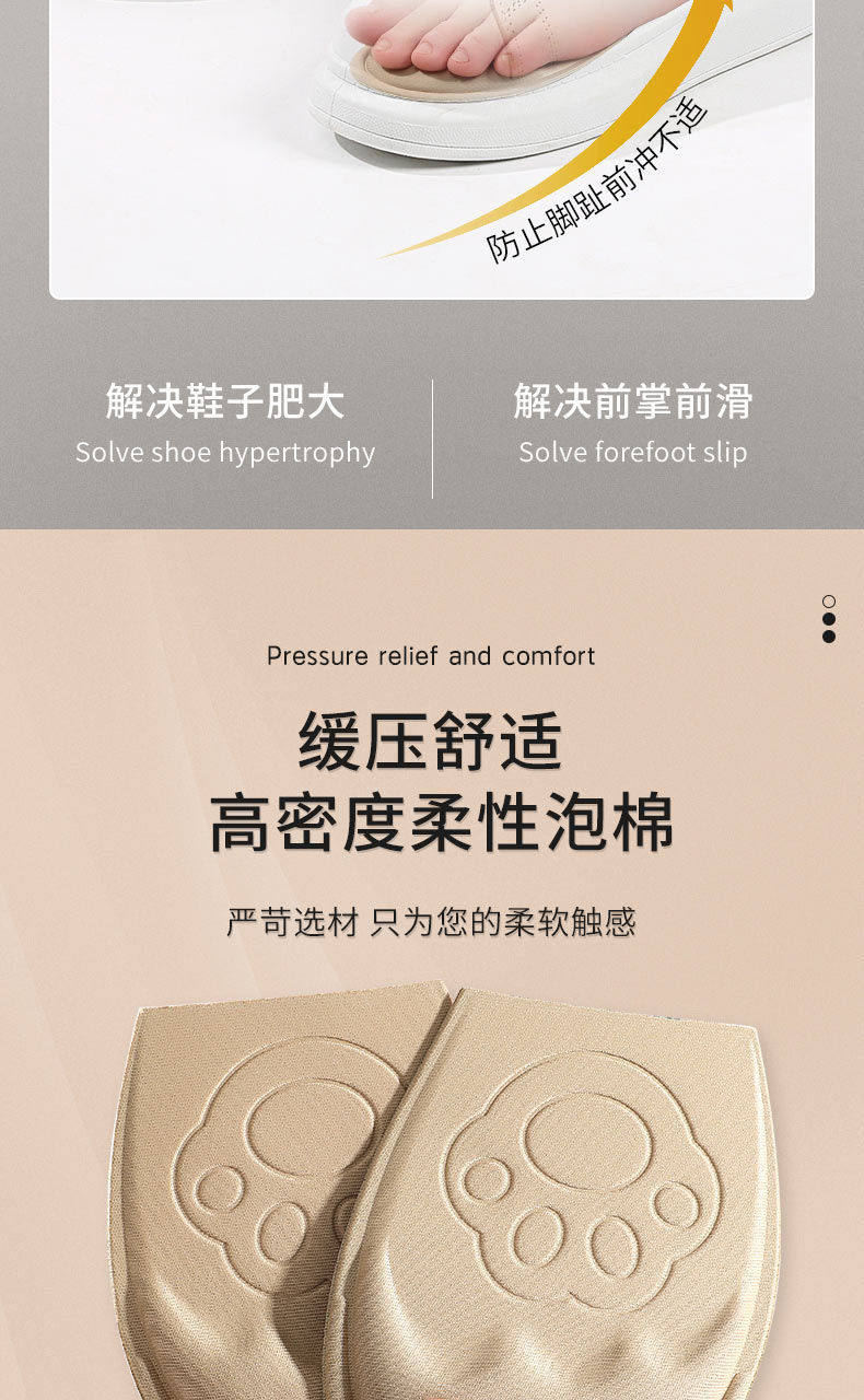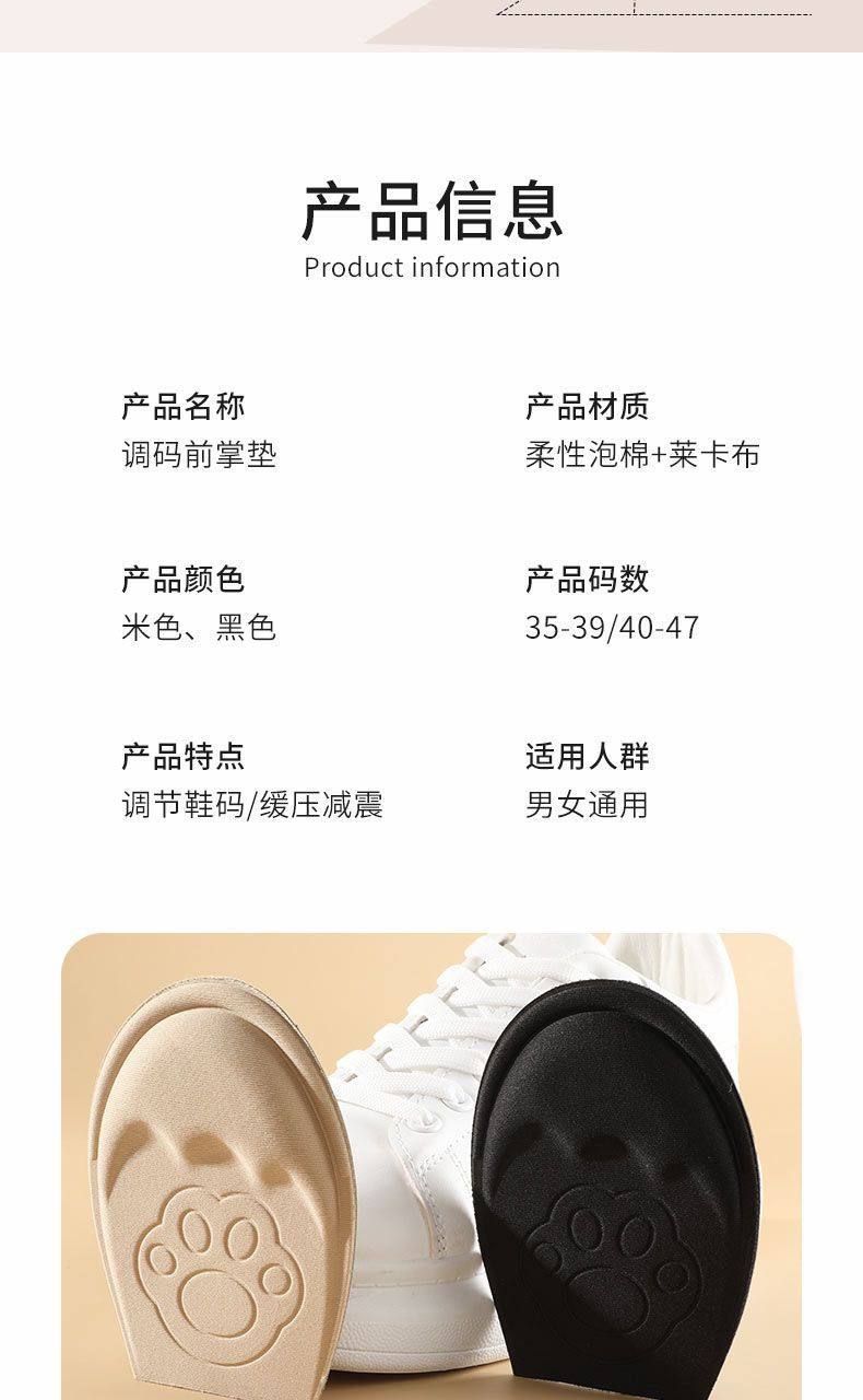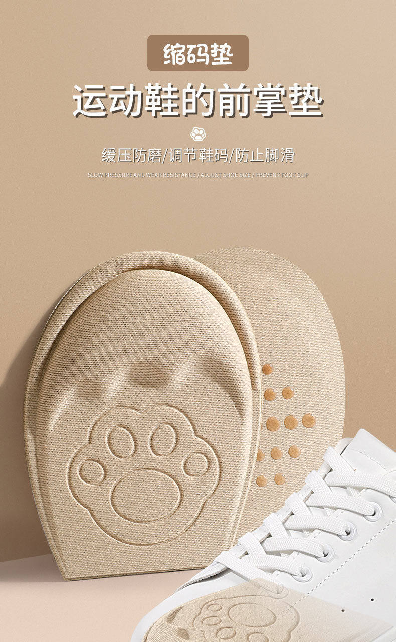 Half-Size Insoles for Men and Women, Forefoot Pads for Sports Shoes, Heel Stickers for Shoes, One Size Larger High Heels, Adjustment to Smaller Size
