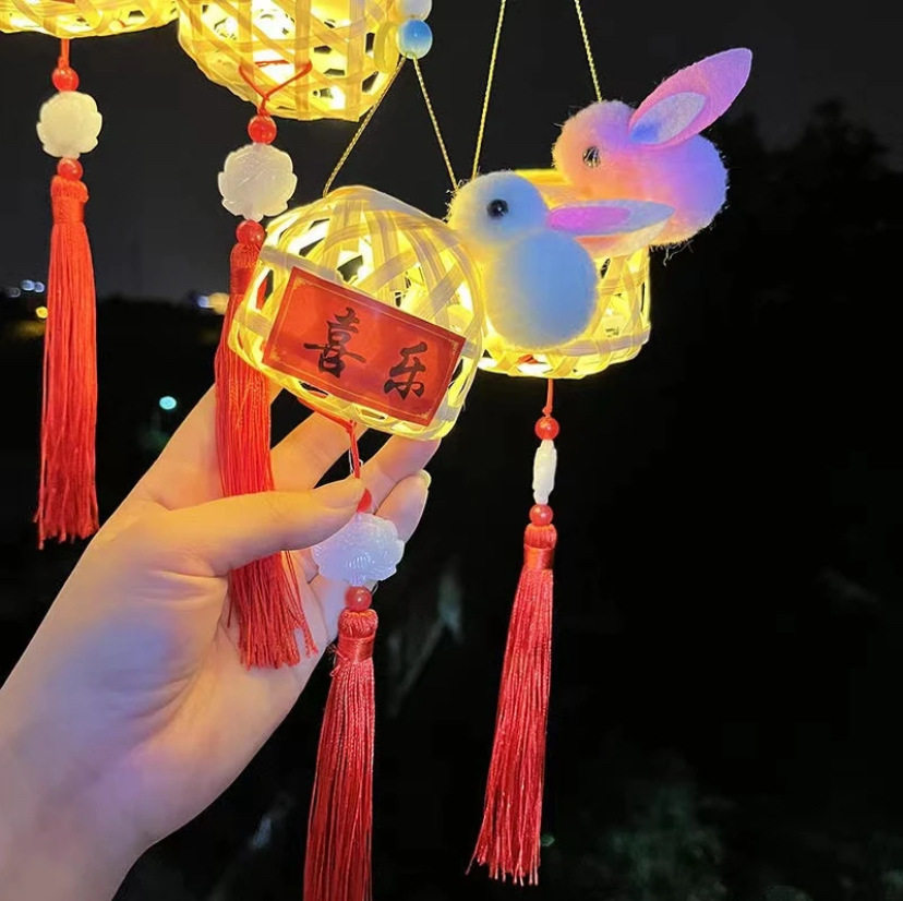 Trendy Bamboo Rabbit Lanterns Chinese Style Glowing Handheld Lanterns Wholesale Trendy Brand Children's DIY Jade Rabbit Bamboo Small Lanterns