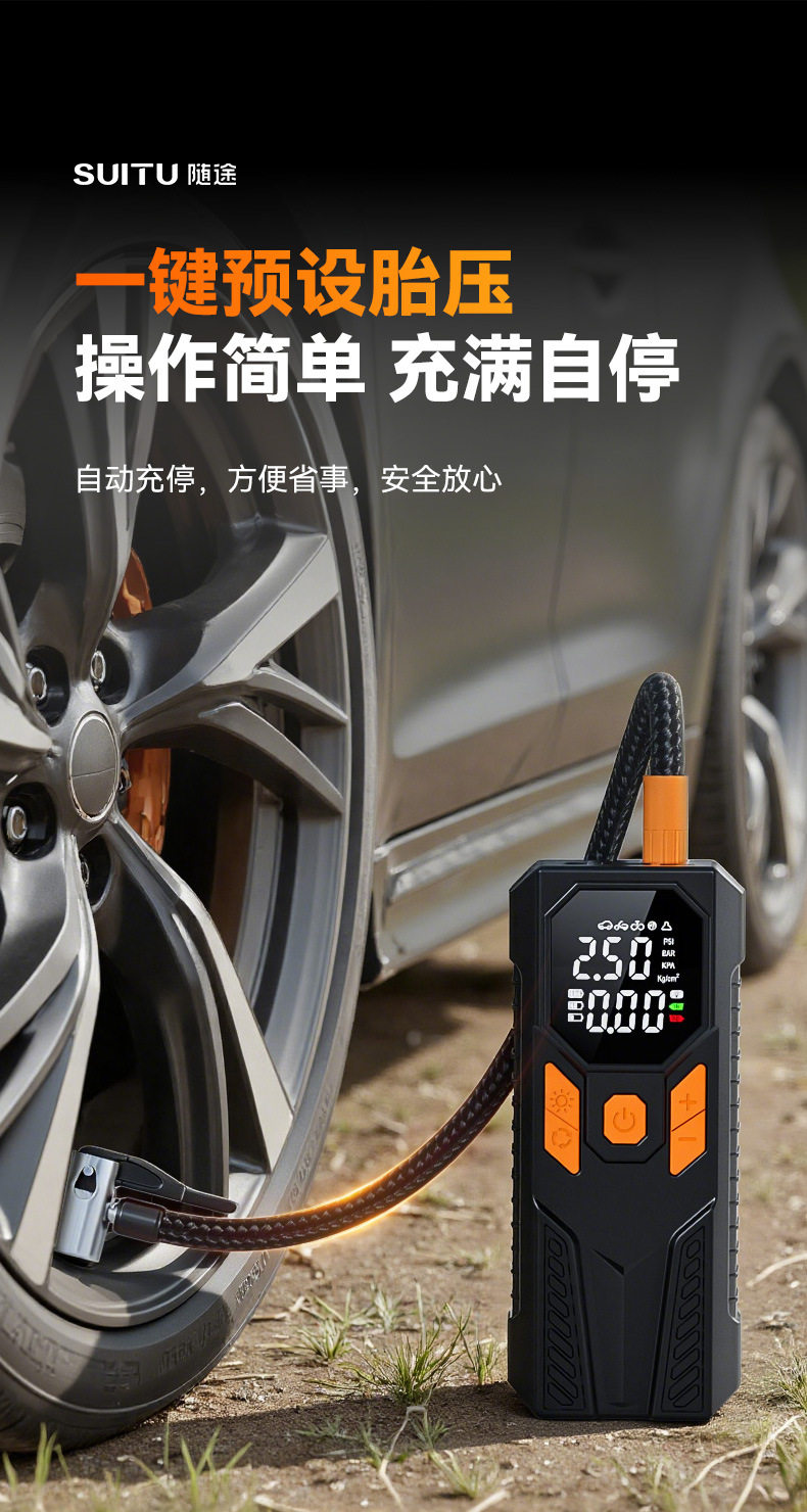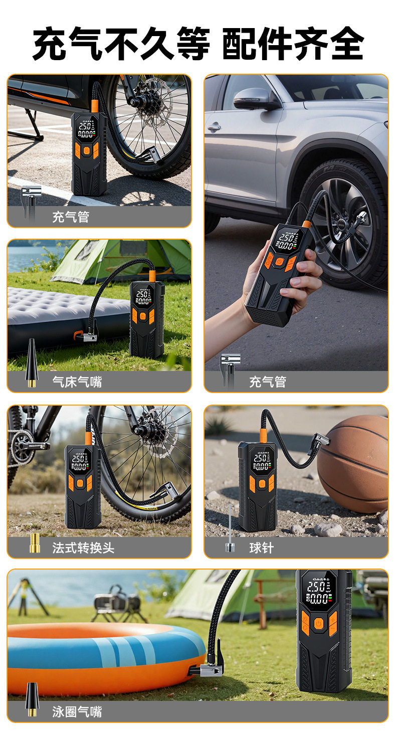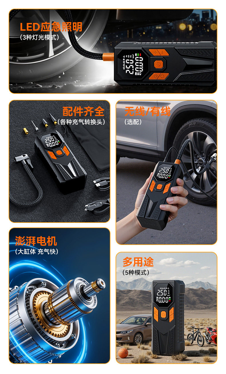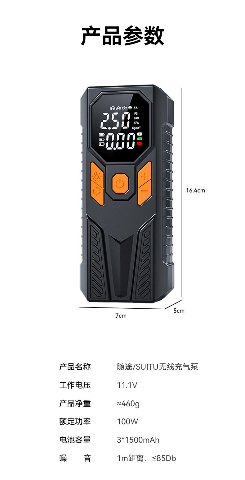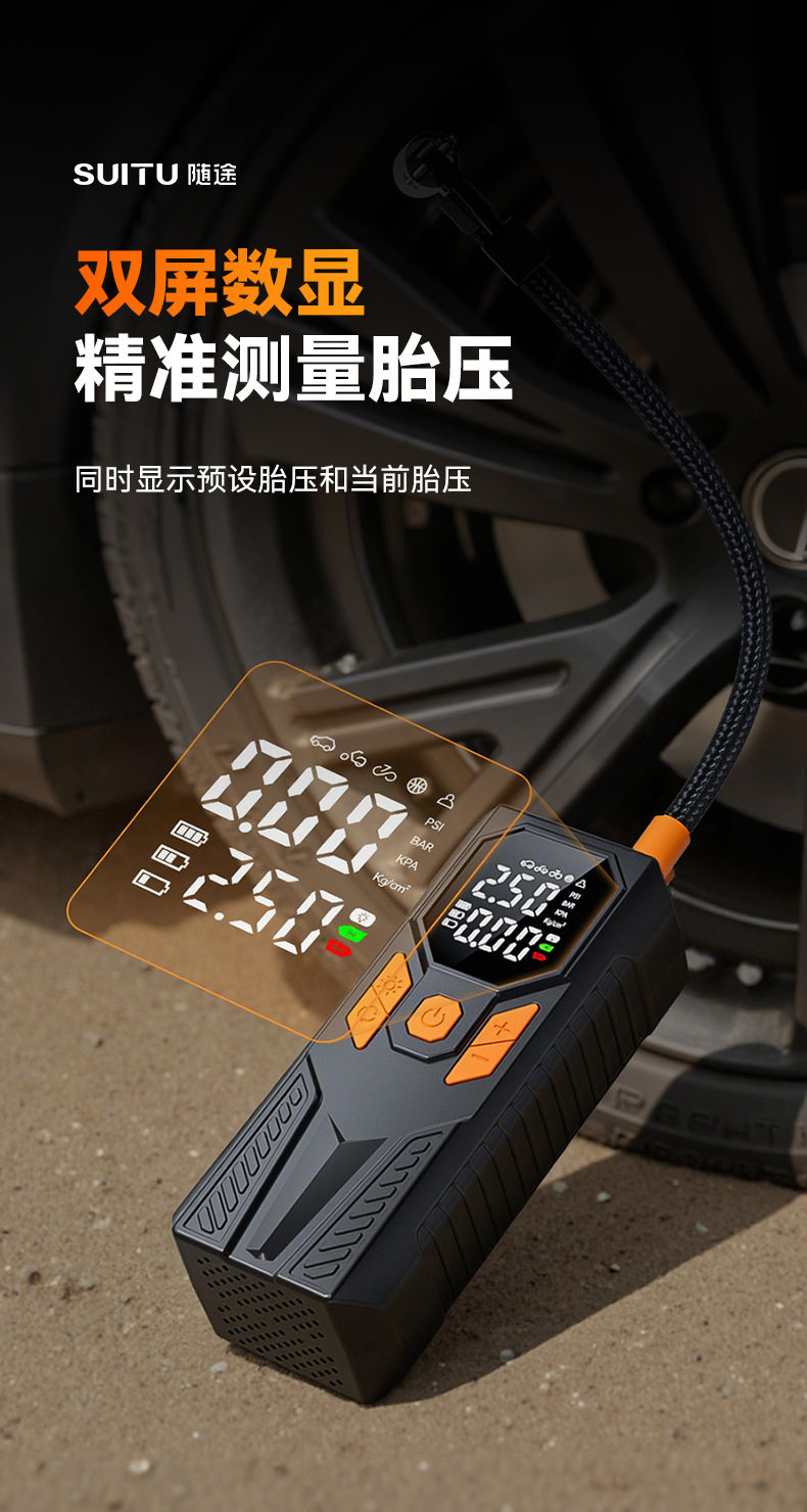 Car Air Pump Wireless Portable High-Pressure Electric Air Pump Car Air Pump Tire Pressure Measurement Dual Screen