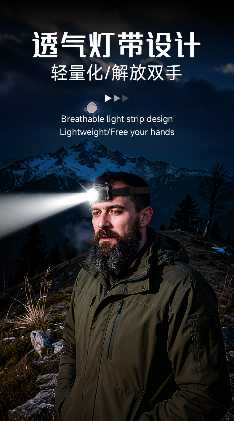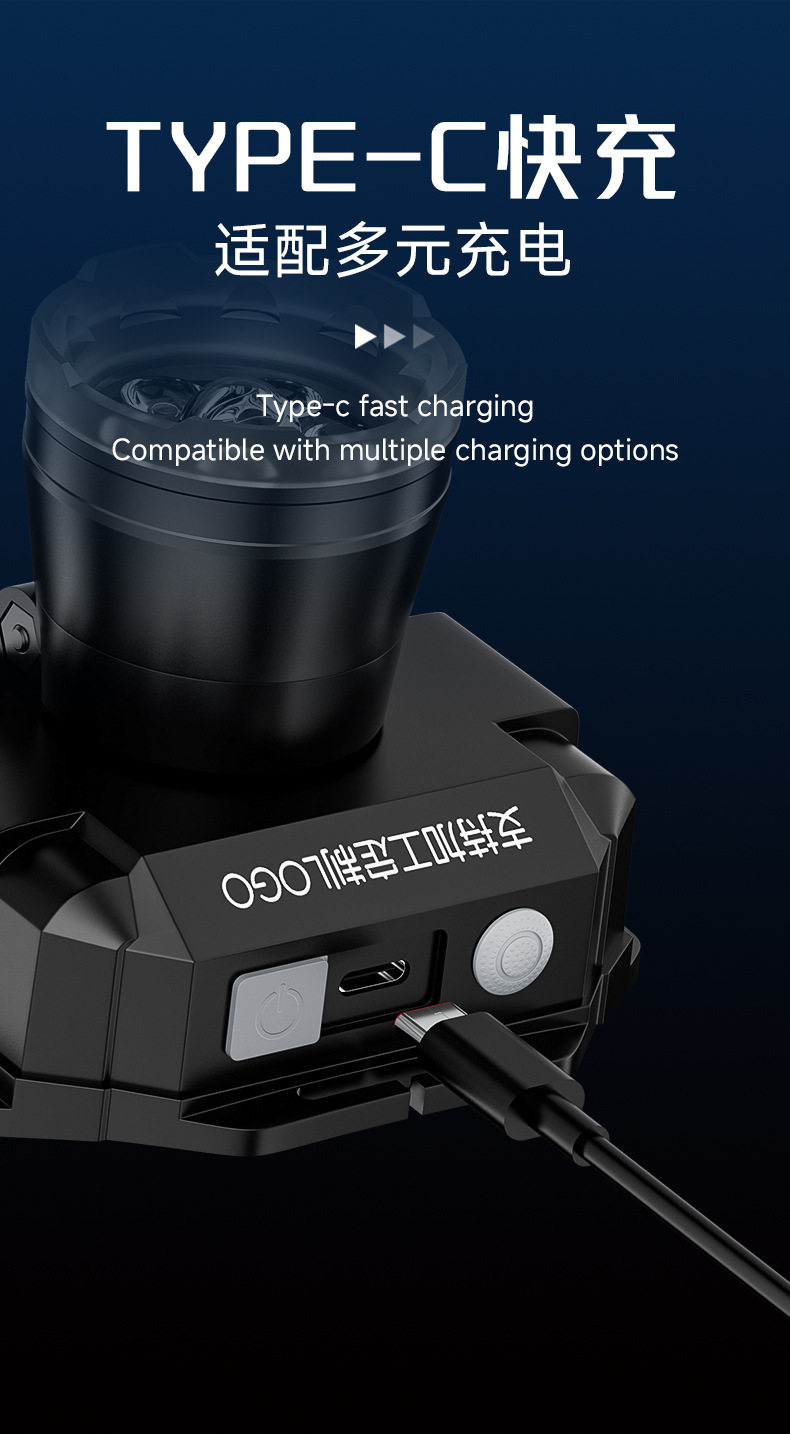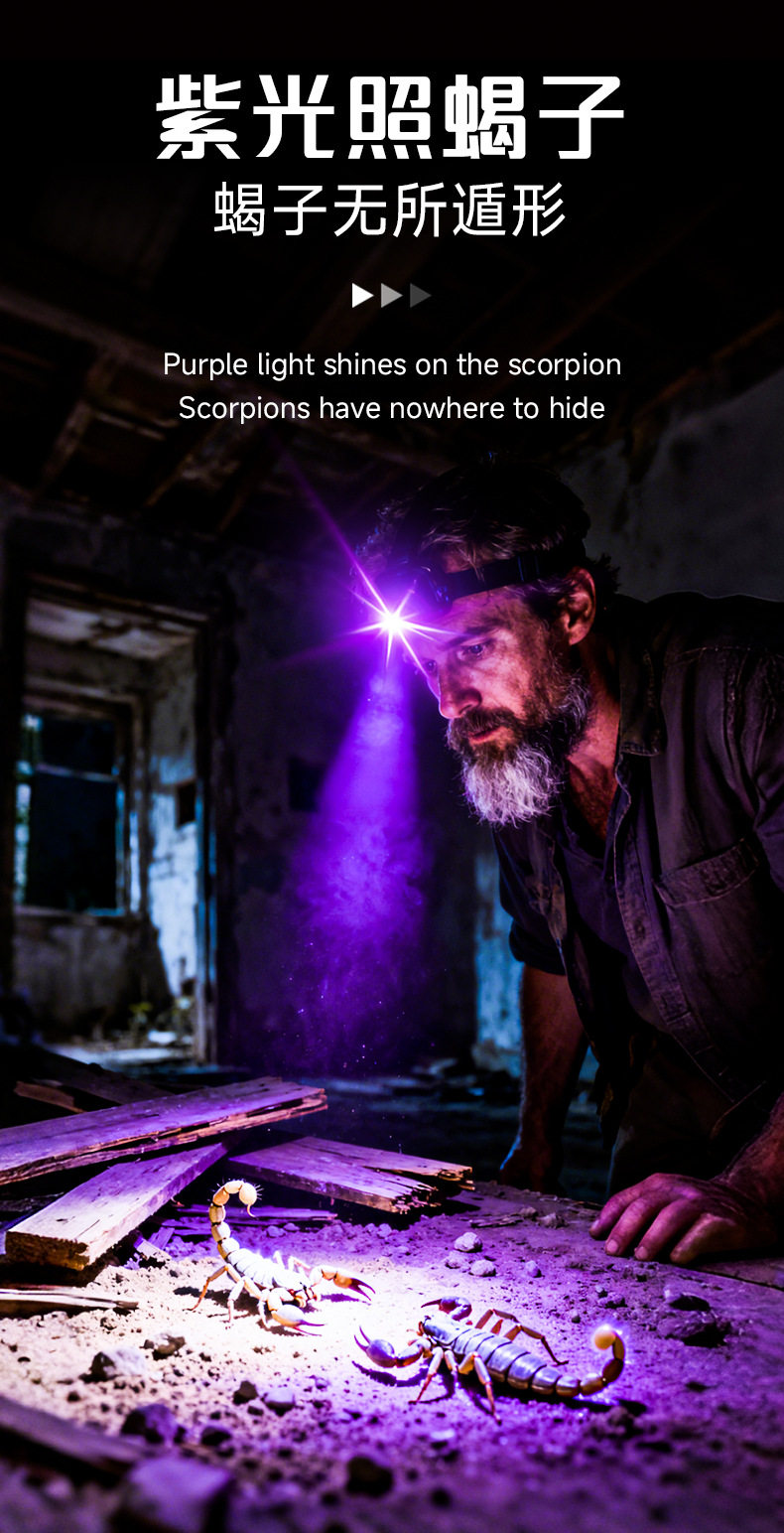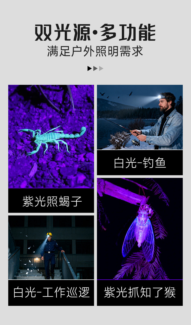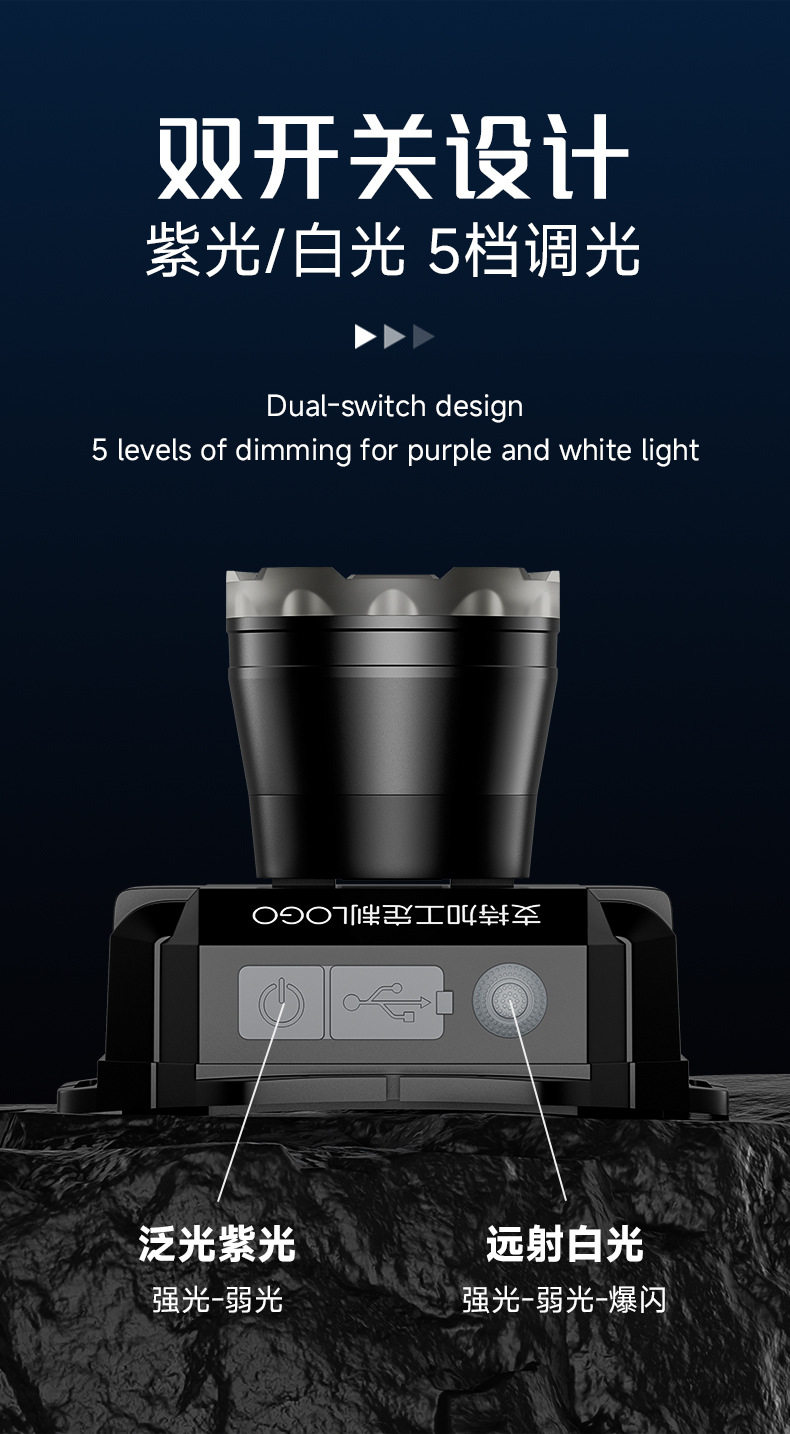 New Strong Light Head-Mounted Headlight Dual Light Source Purple Light Portable Home Emergency High Beam Bright Outdoor Headlight